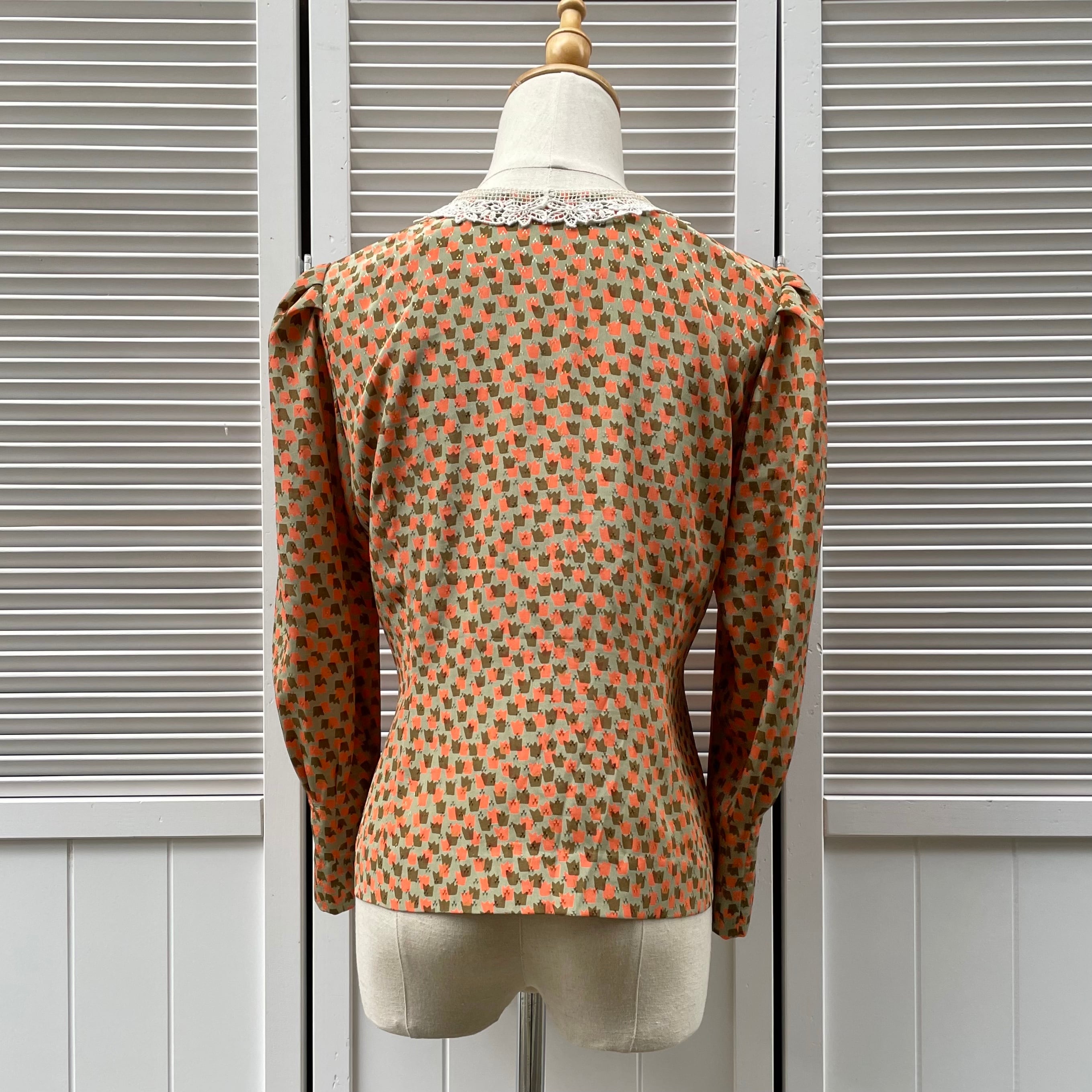 lace collar tulip motif blouse 〈レトロ古着 レース襟 チューリップモチーフ ブラウス〉