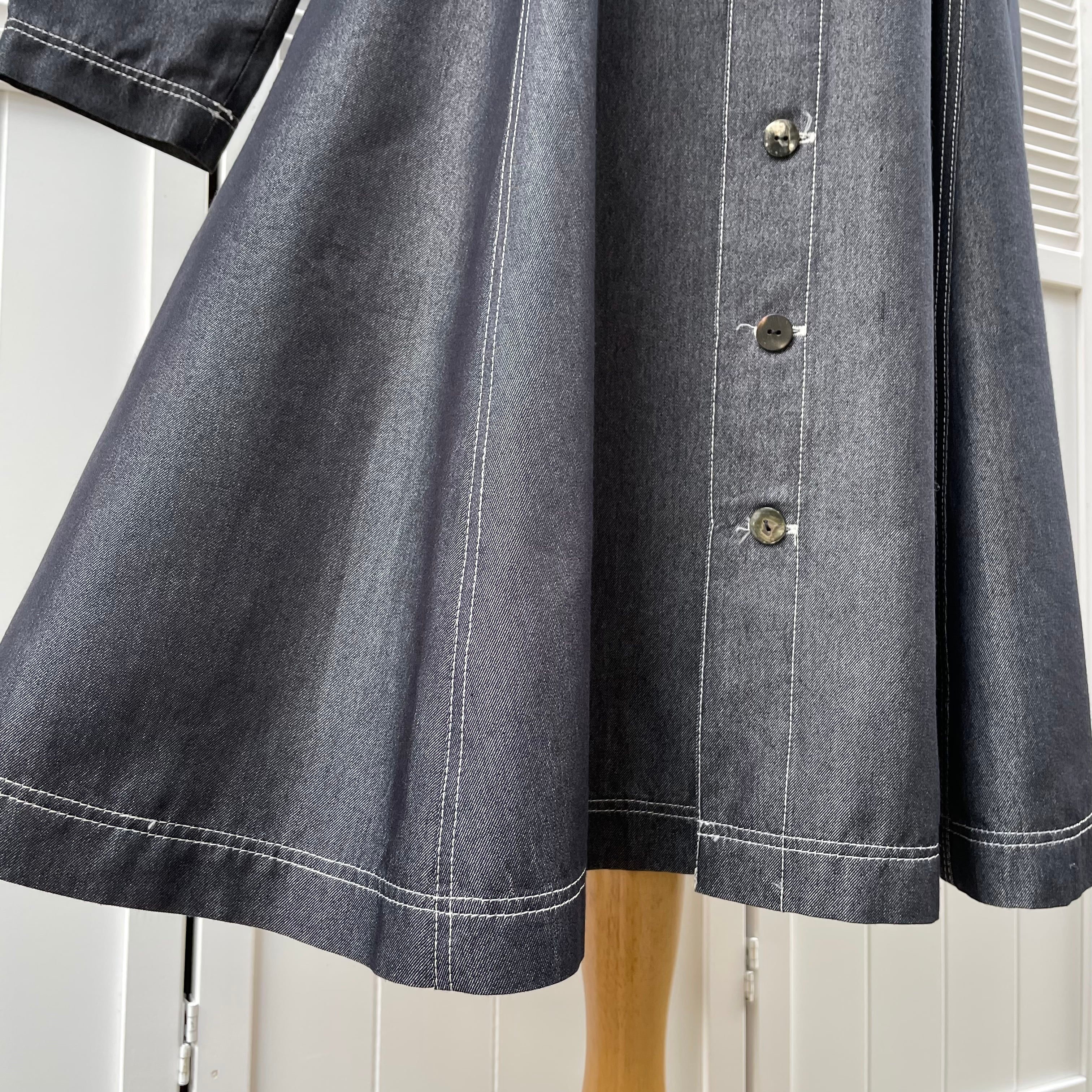 white stitch chambray dress〈レトロ古着 ホワイトステッチ シャンブレー フレアワンピース デニム〉