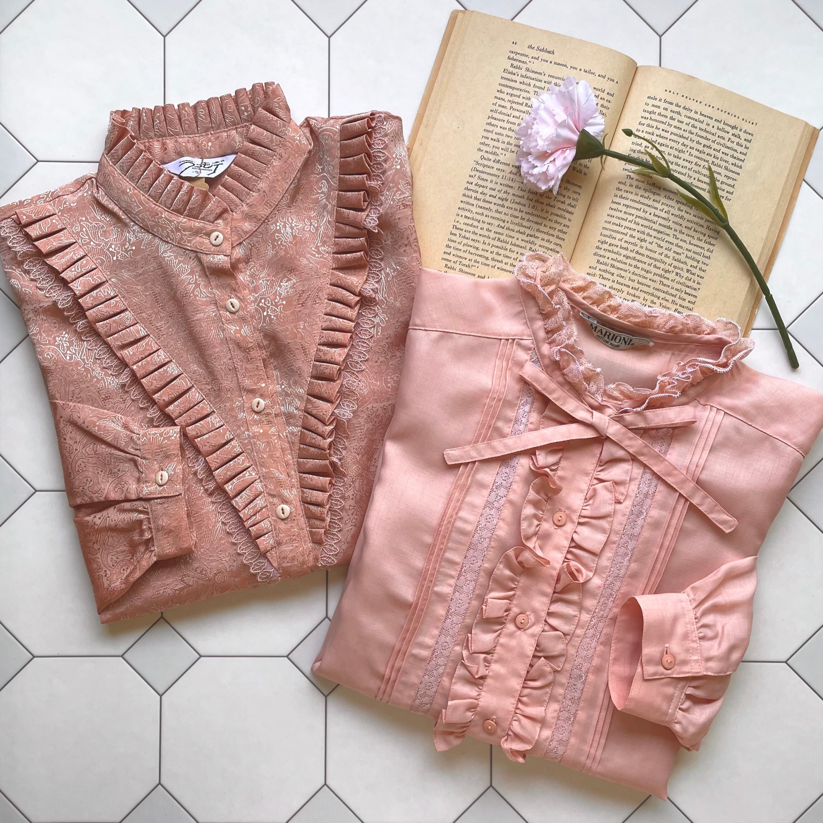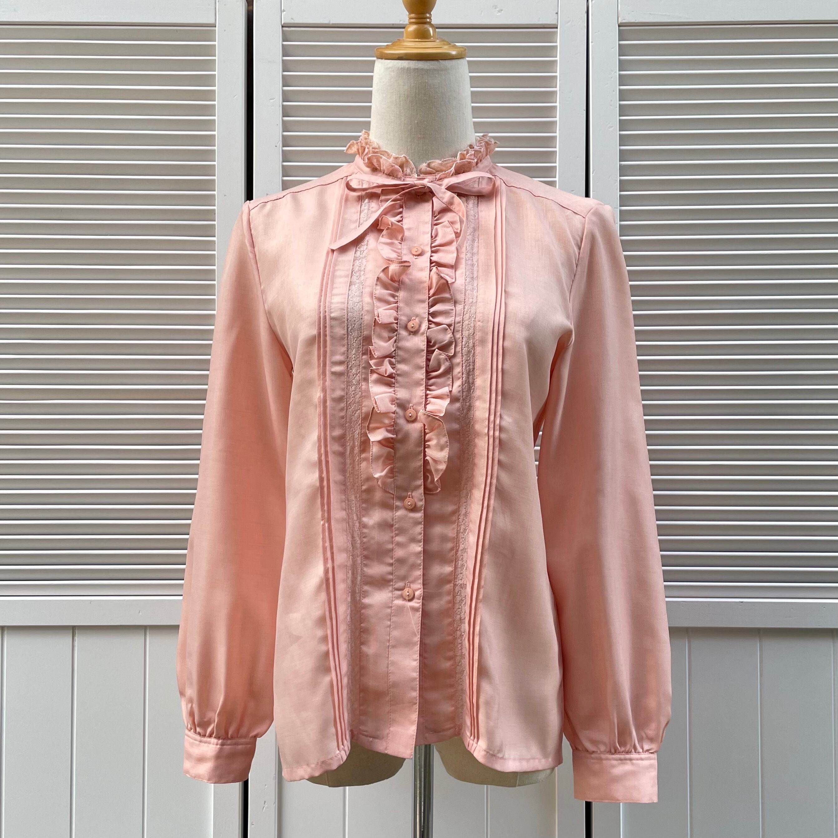 lace & frill pink bowtie blouse 〈レトロ古着 レース&フリル ピンク ボウタイブラウス 日本製〉