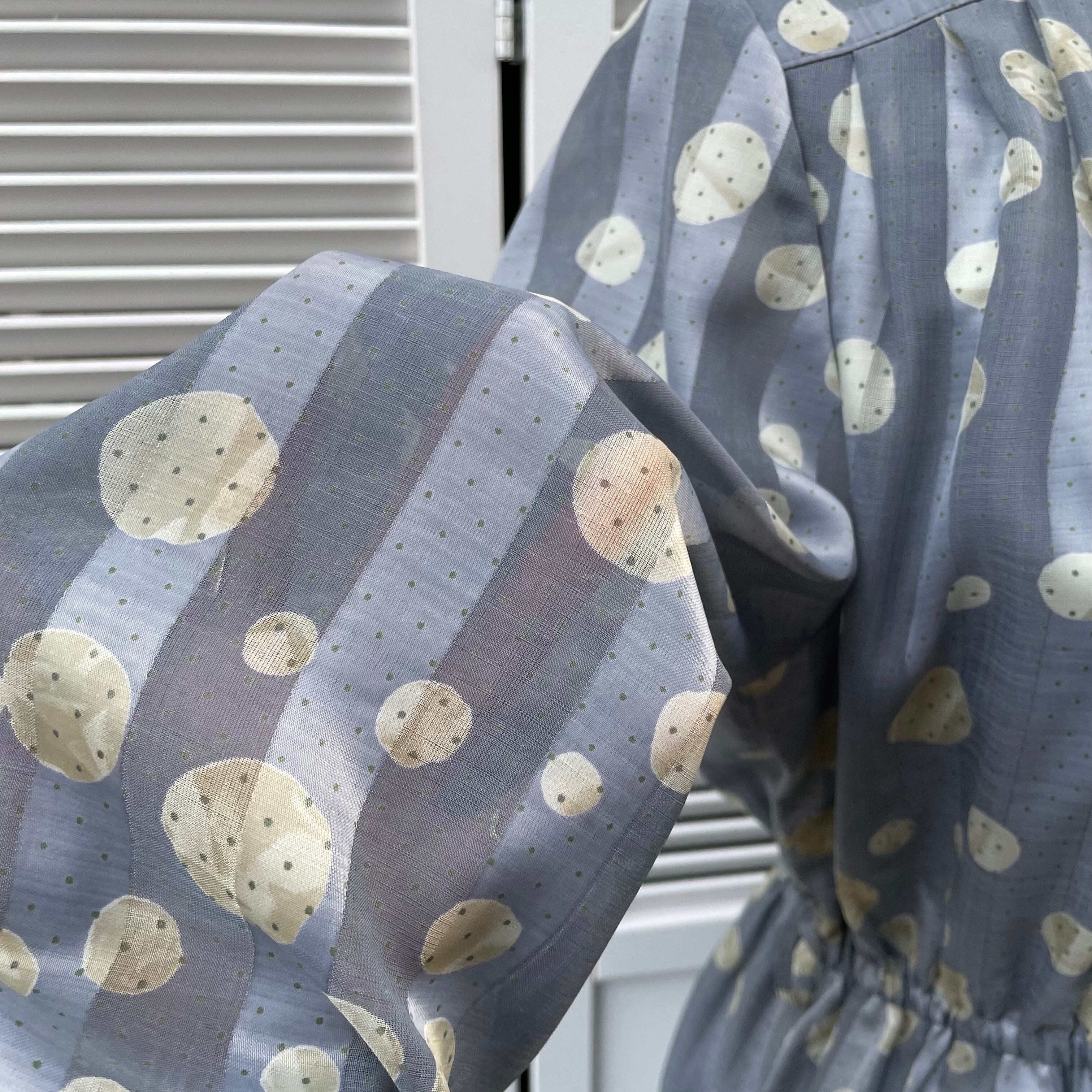 dot & stripe sheer sleeve dress〈レトロ古着 ドット&ストライプ シアー袖 ワンピース 日本製〉