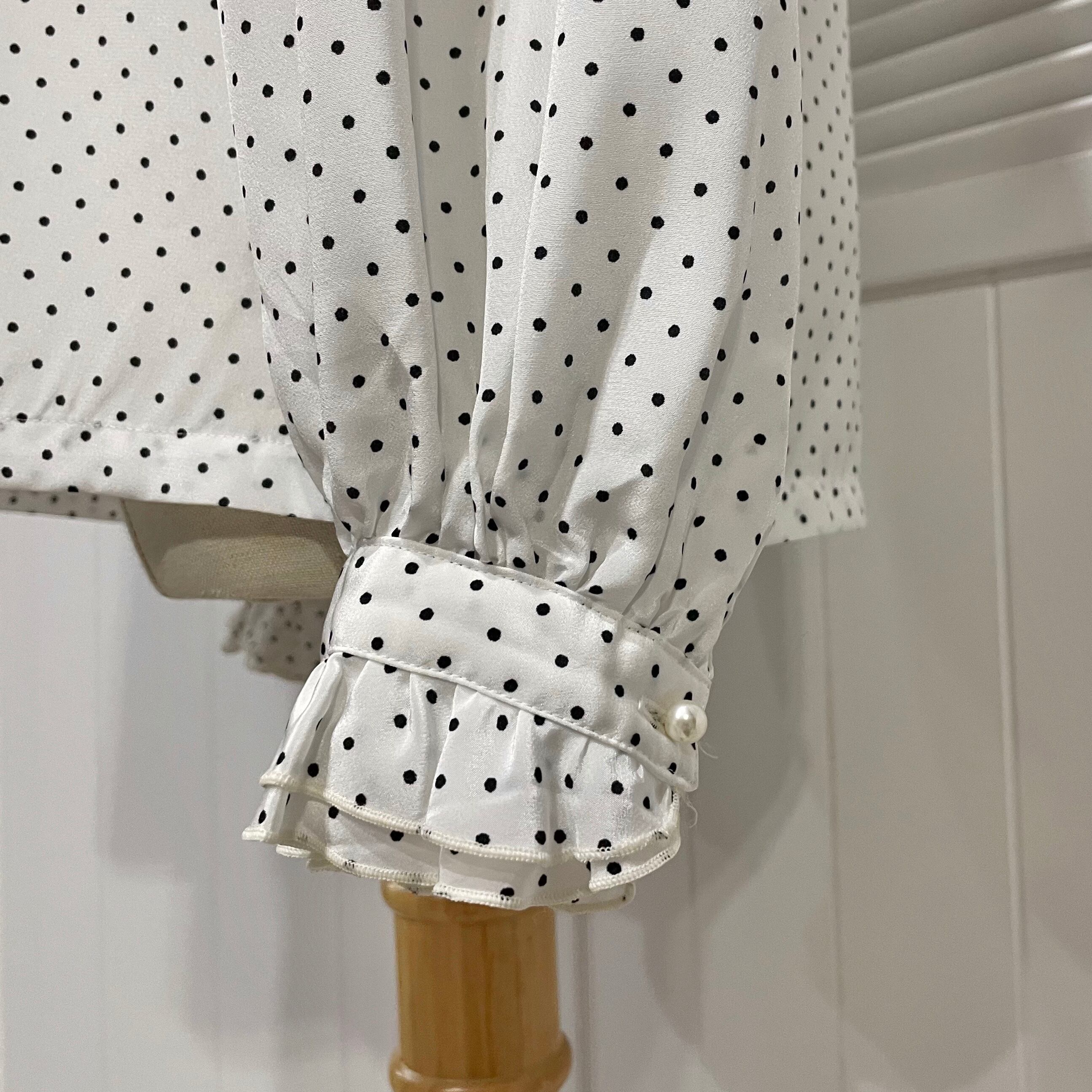 ボリュームたっぷりな二重フリルが華やかなドットのブラウス