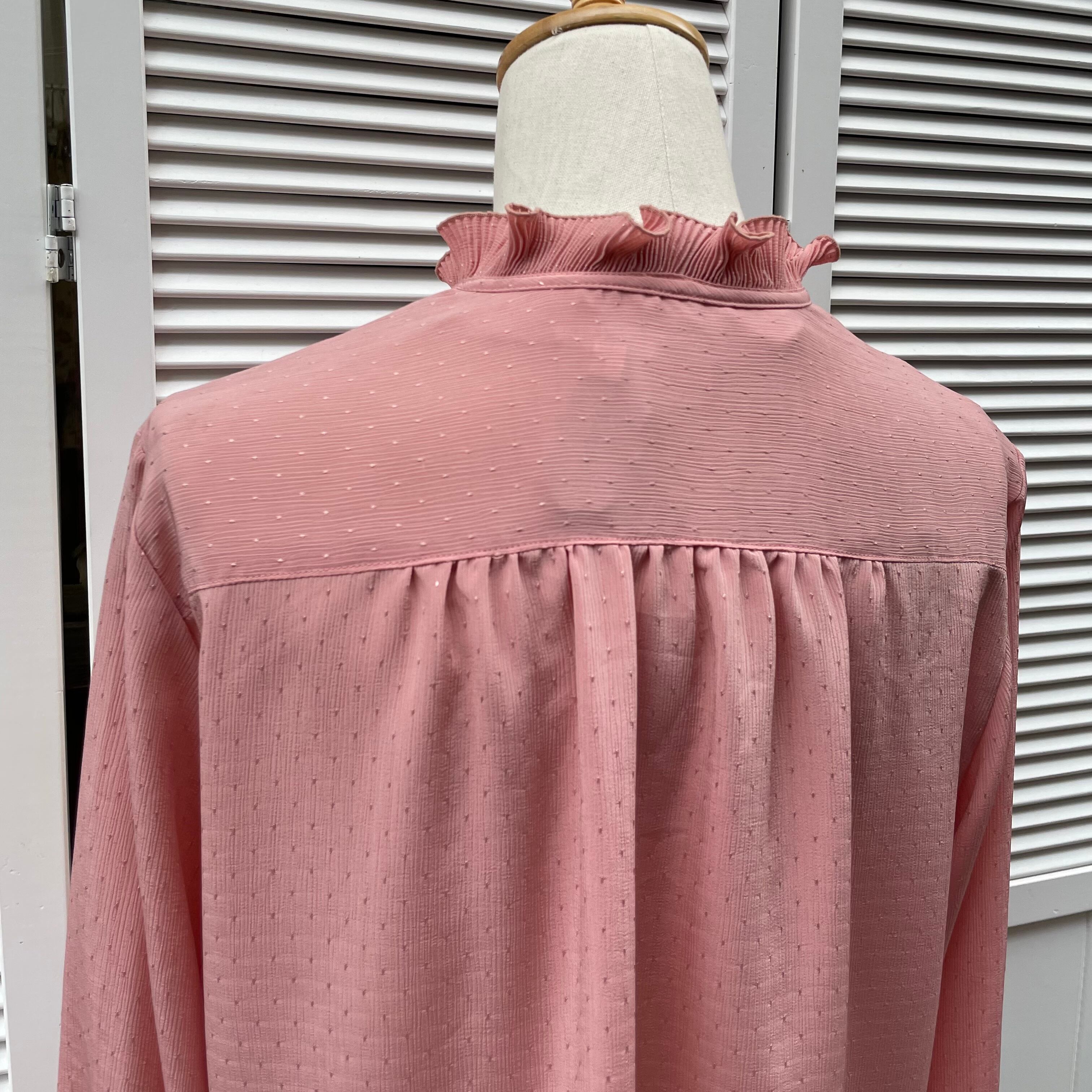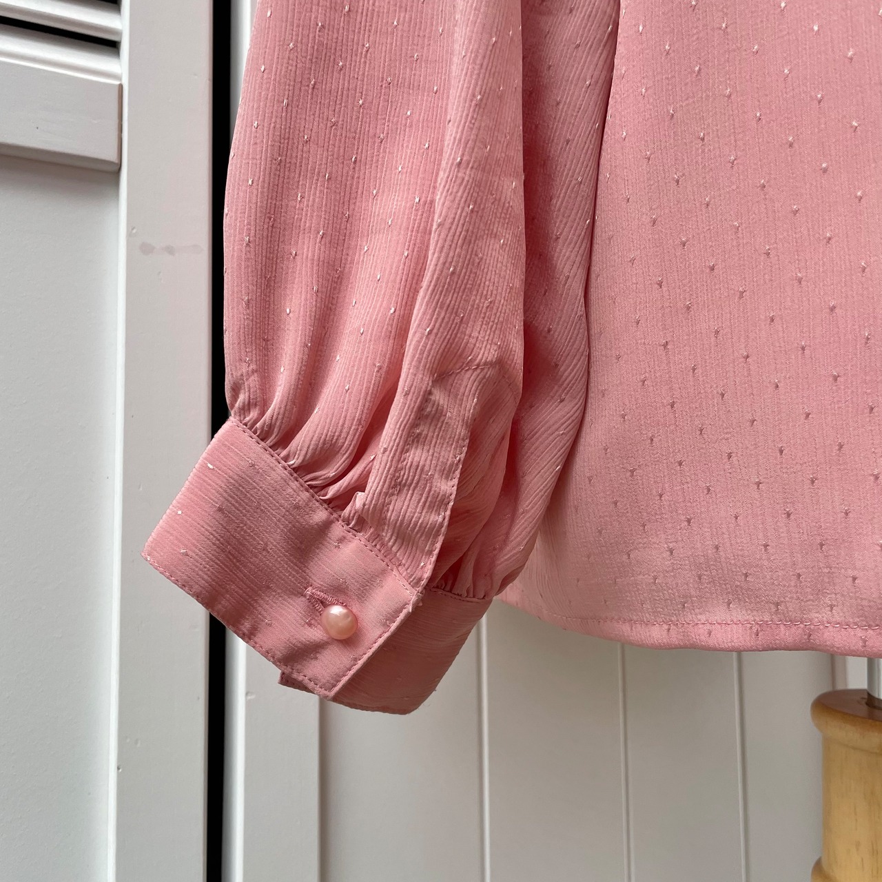 pearl beaded pink bowtie blouse 〈レトロ古着 パールビーズ ピンク ボウタイブラウス 日本製〉