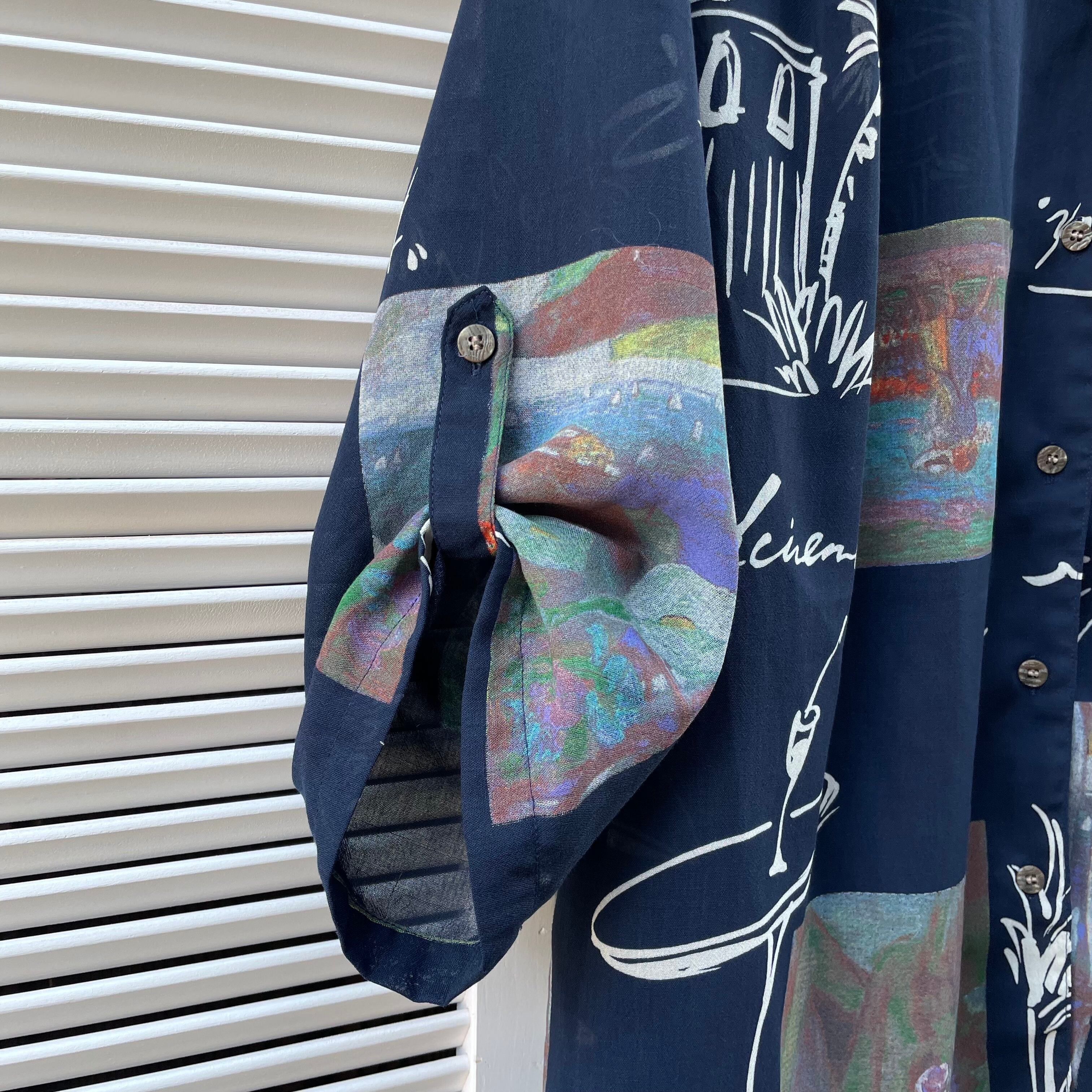 art motif sheer pattern shirt〈レトロ古着 絵画モチーフ シアー 柄シャツ アート〉
