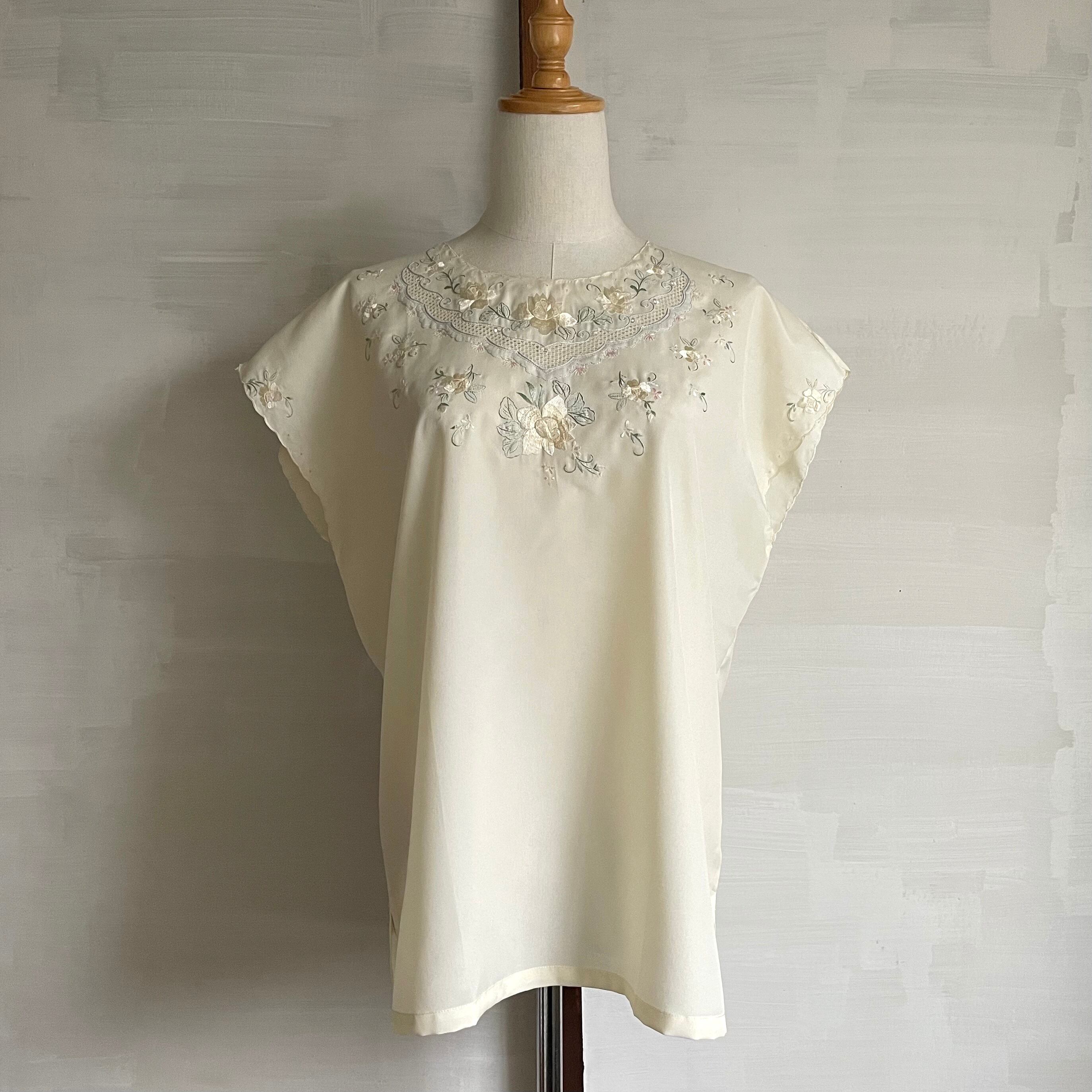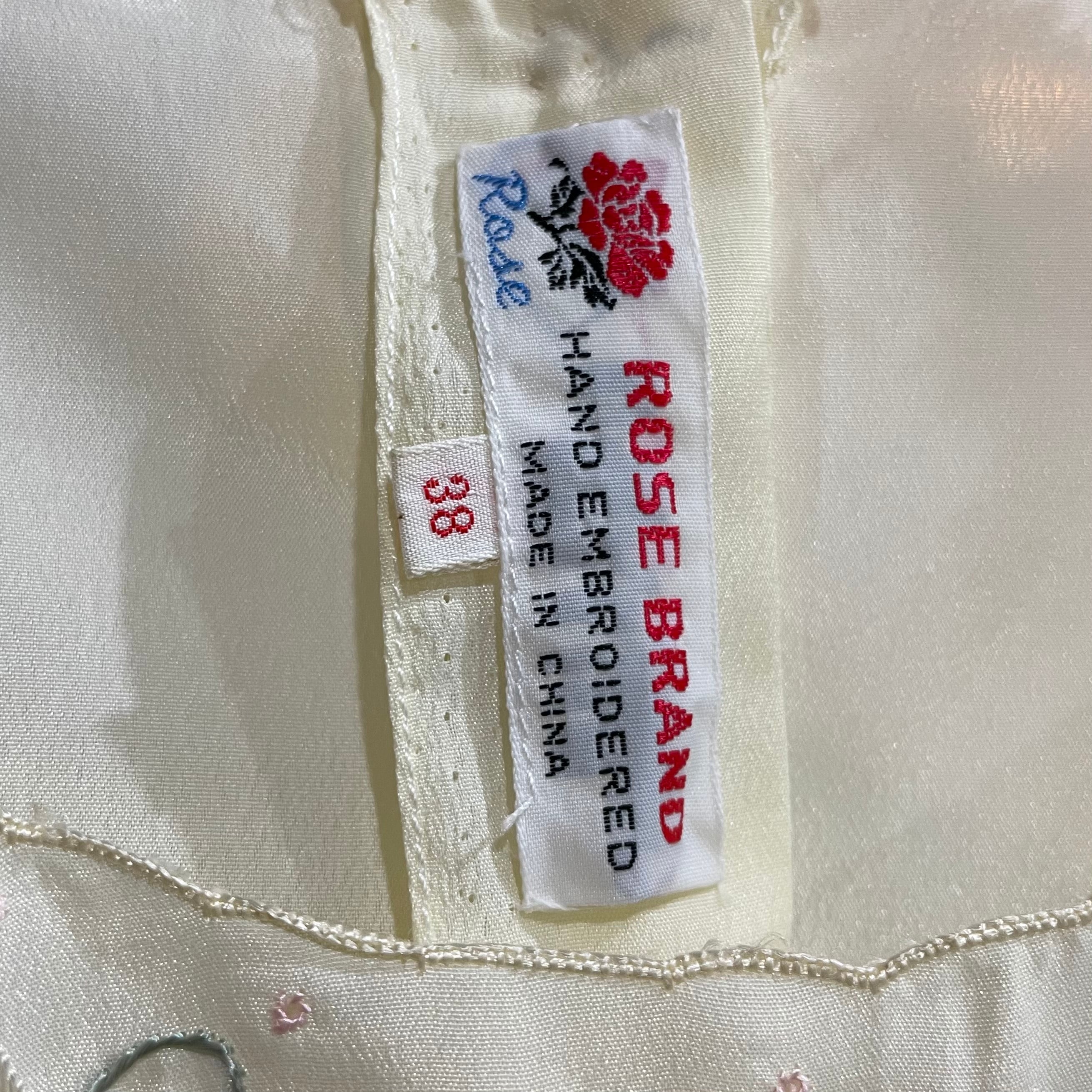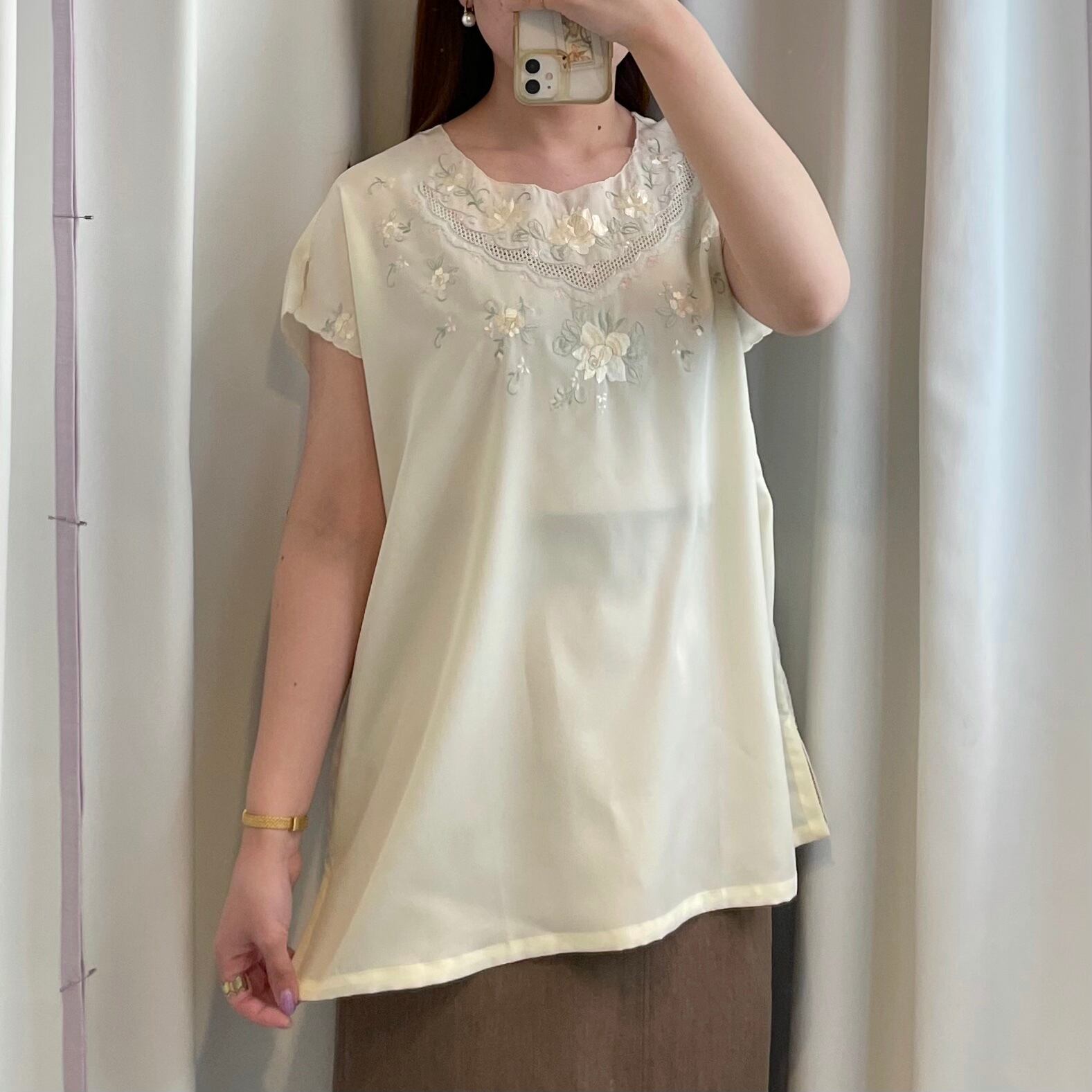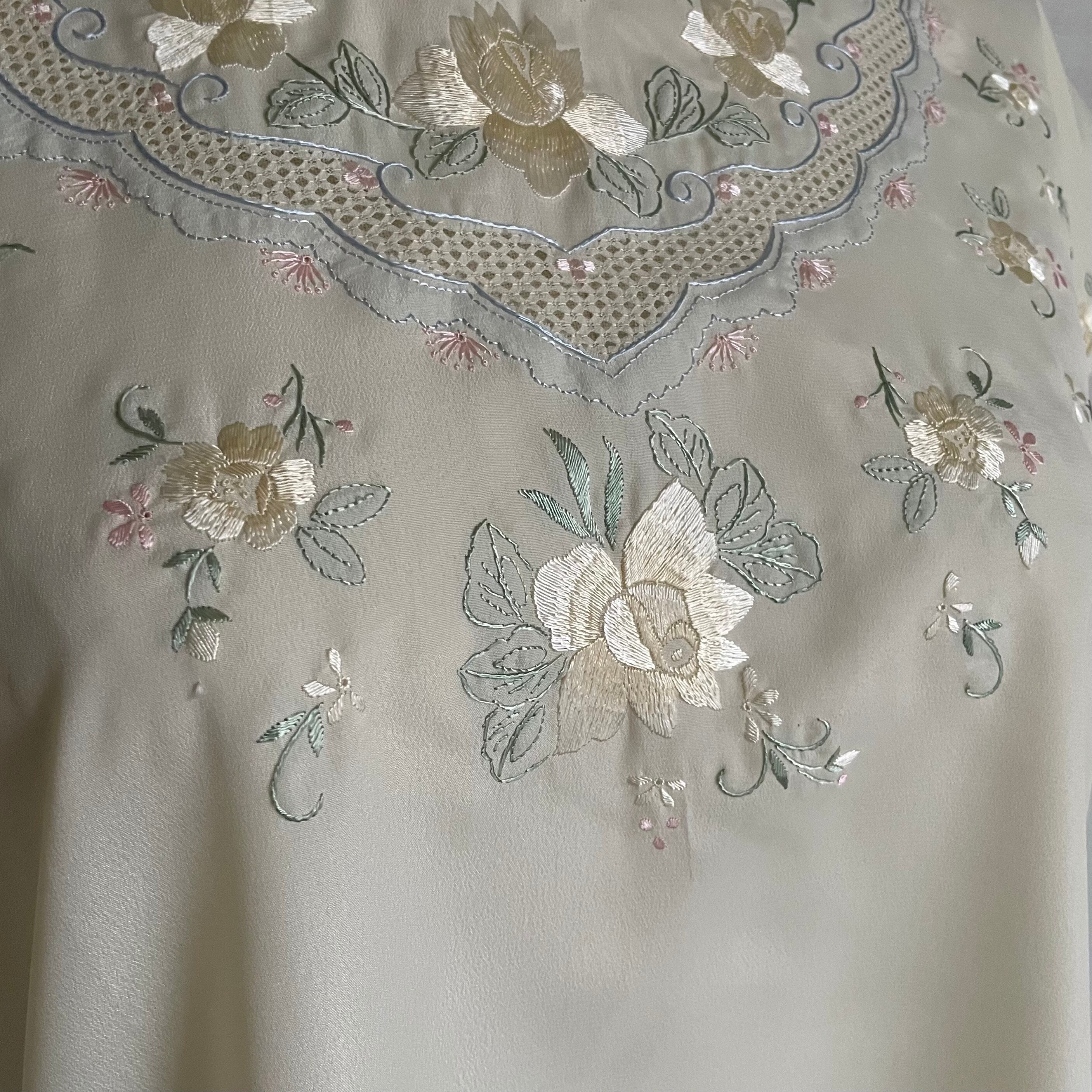 hand embroidered french sleeve China blouse 〈レトロ古着 手刺繍 フレンチスリーブ チャイナブラウス〉