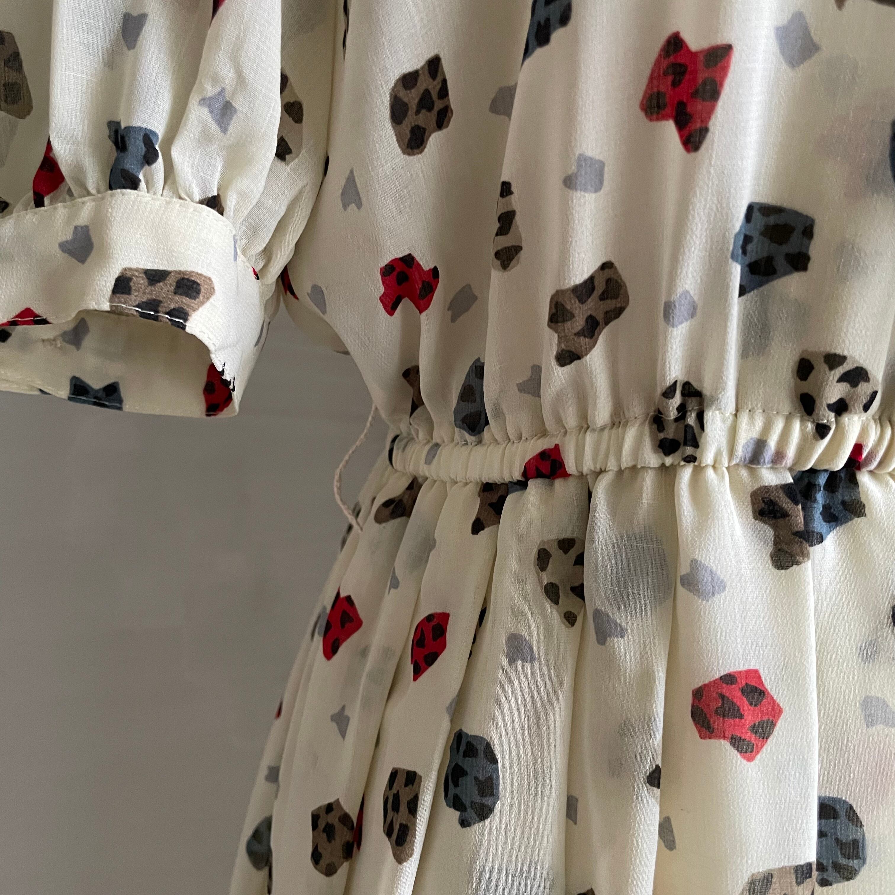 leopard motif puff sleeve dress〈レトロ古着 レオパードモチーフ パフスリーブ ワンピース〉