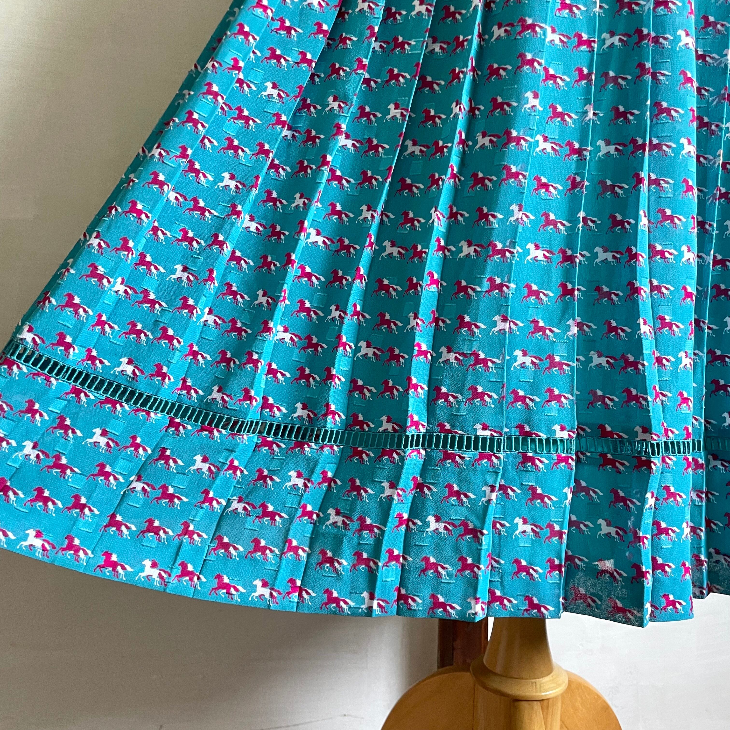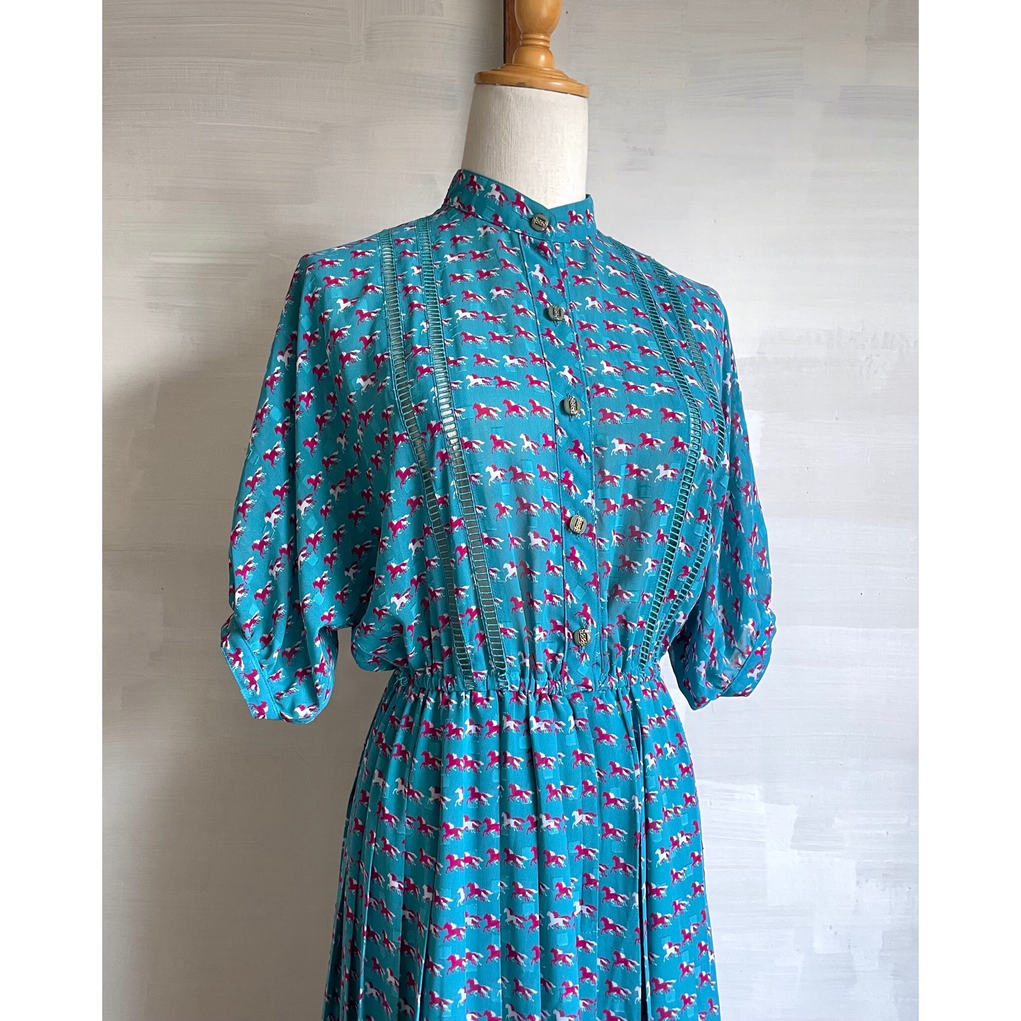 horse motif ladder race dress〈レトロ古着 馬柄 はしごレース ワンピース〉