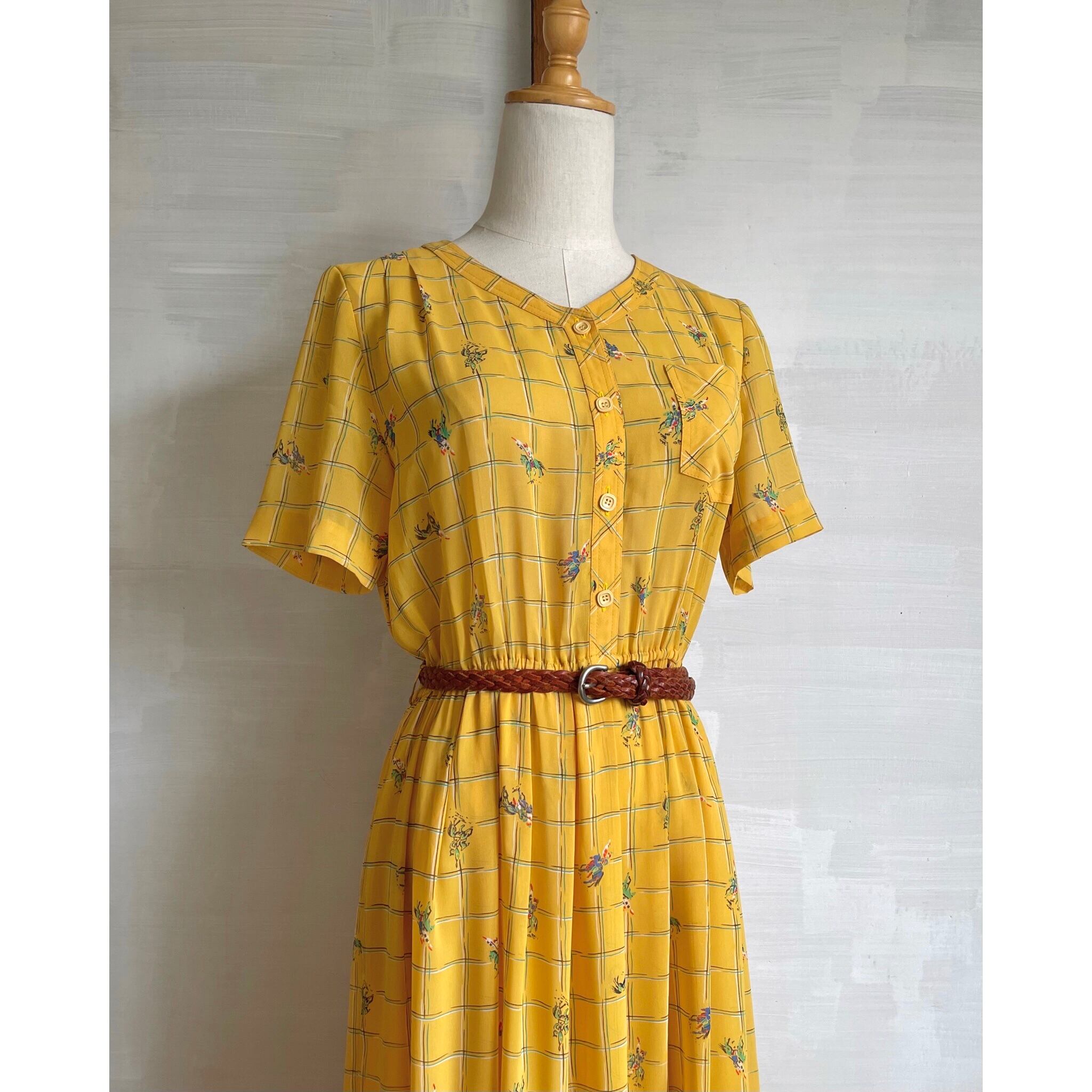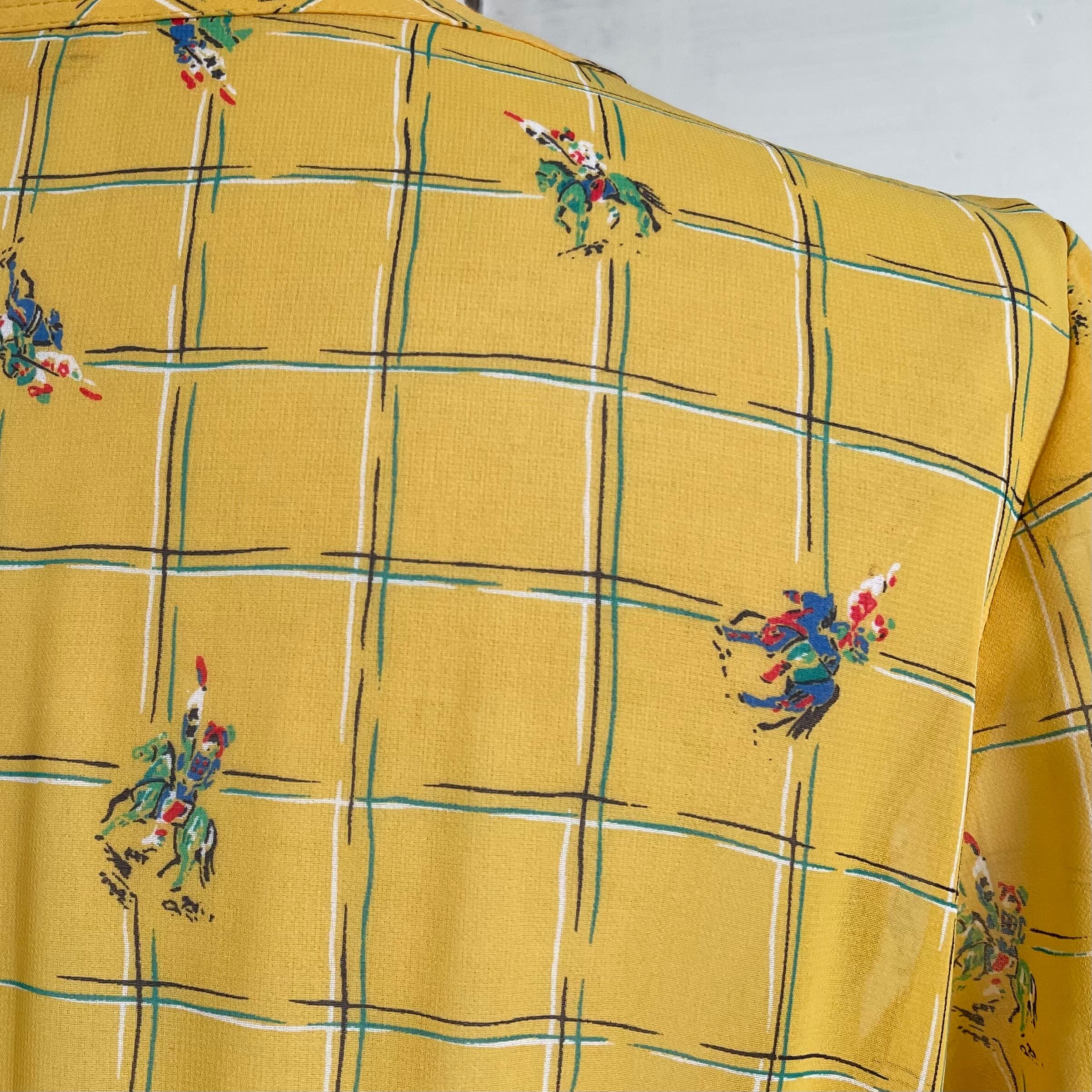 knight × plaid yellow dress〈レトロ古着 騎士 × チェック柄 イエロー ワンピース 日本製〉