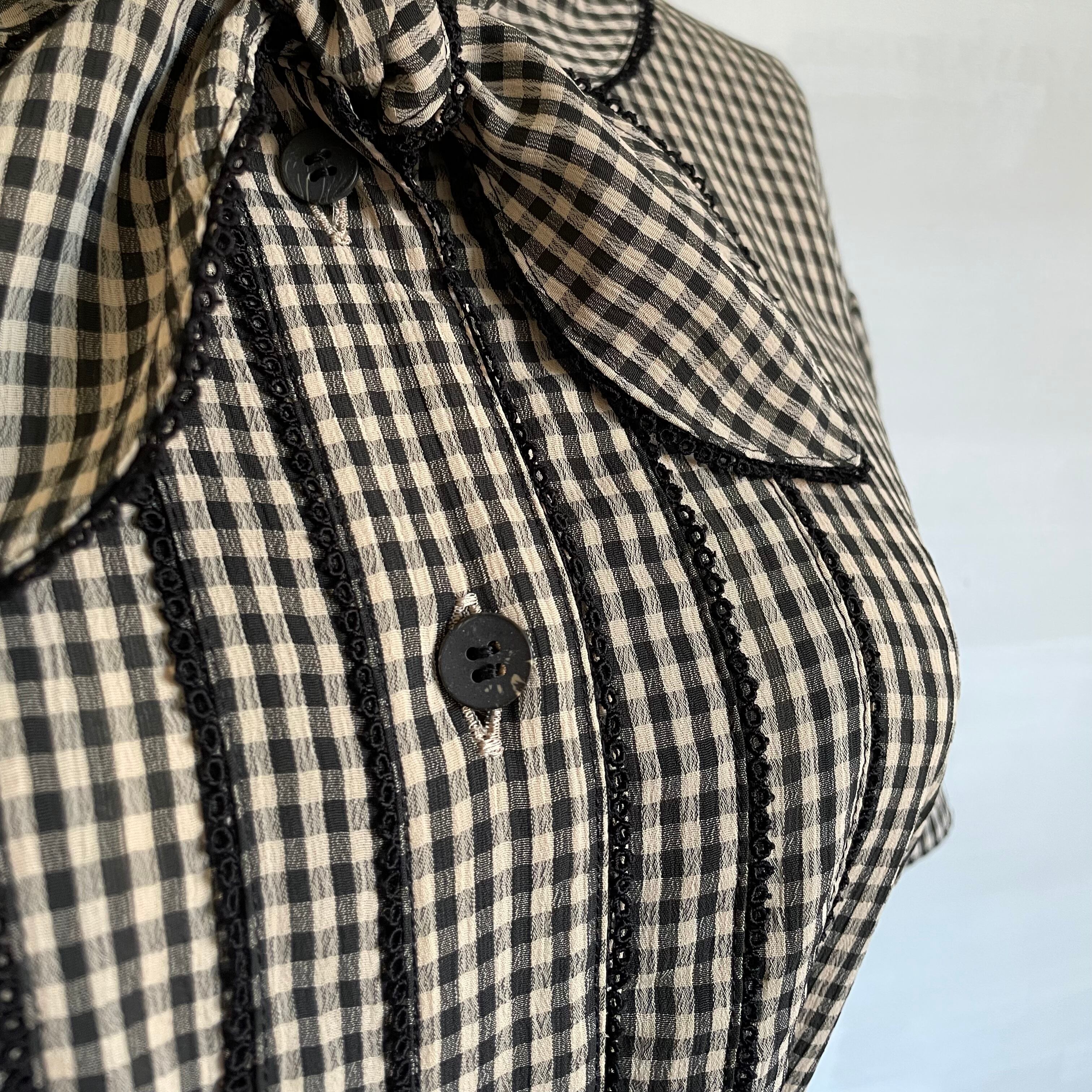 scarf collar gingham check dress〈レトロ古着 スカーフカラー ギンガムチェック ワンピース〉