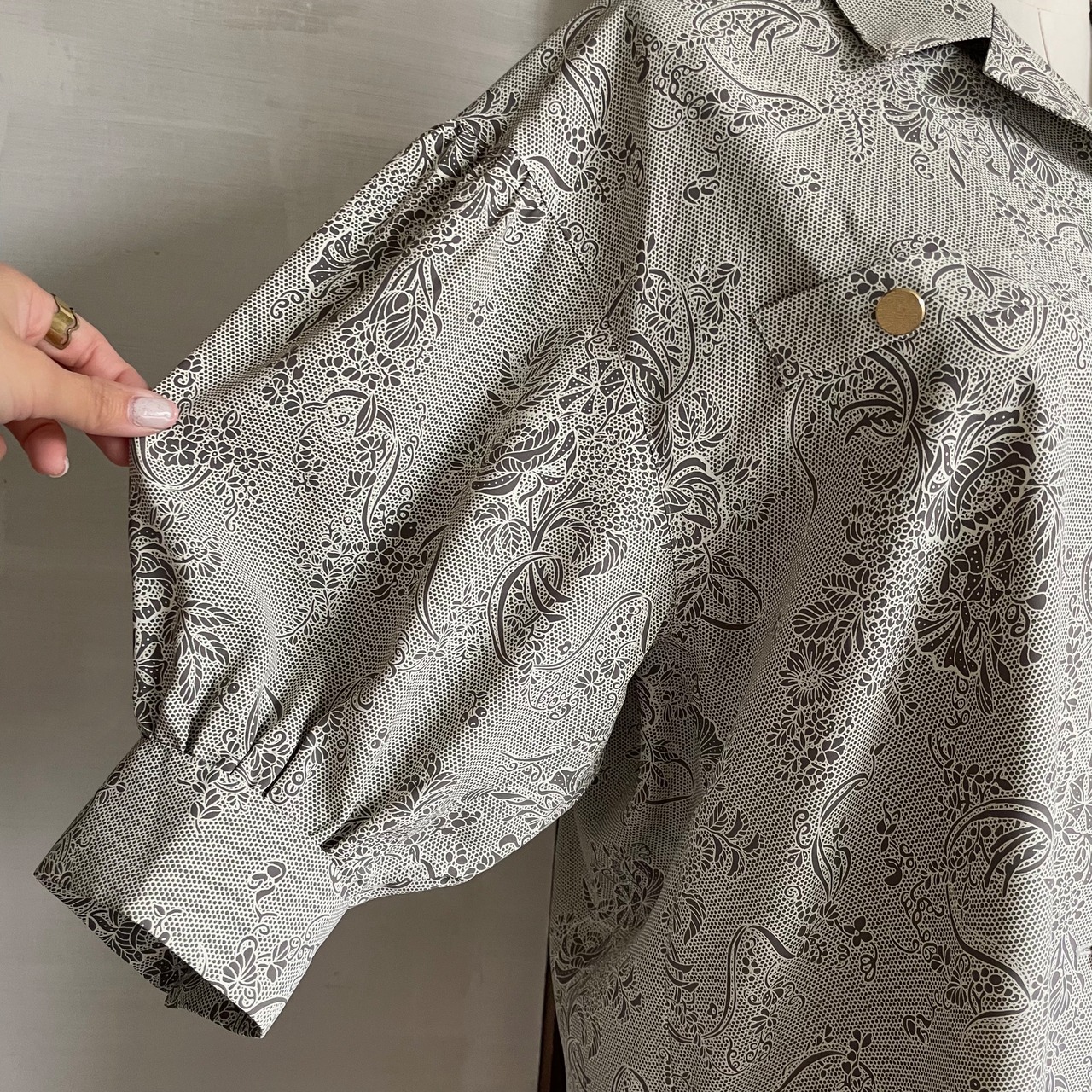 lace print open collar blouse 〈レトロ古着 レースプリント 開襟ブラウス〉
