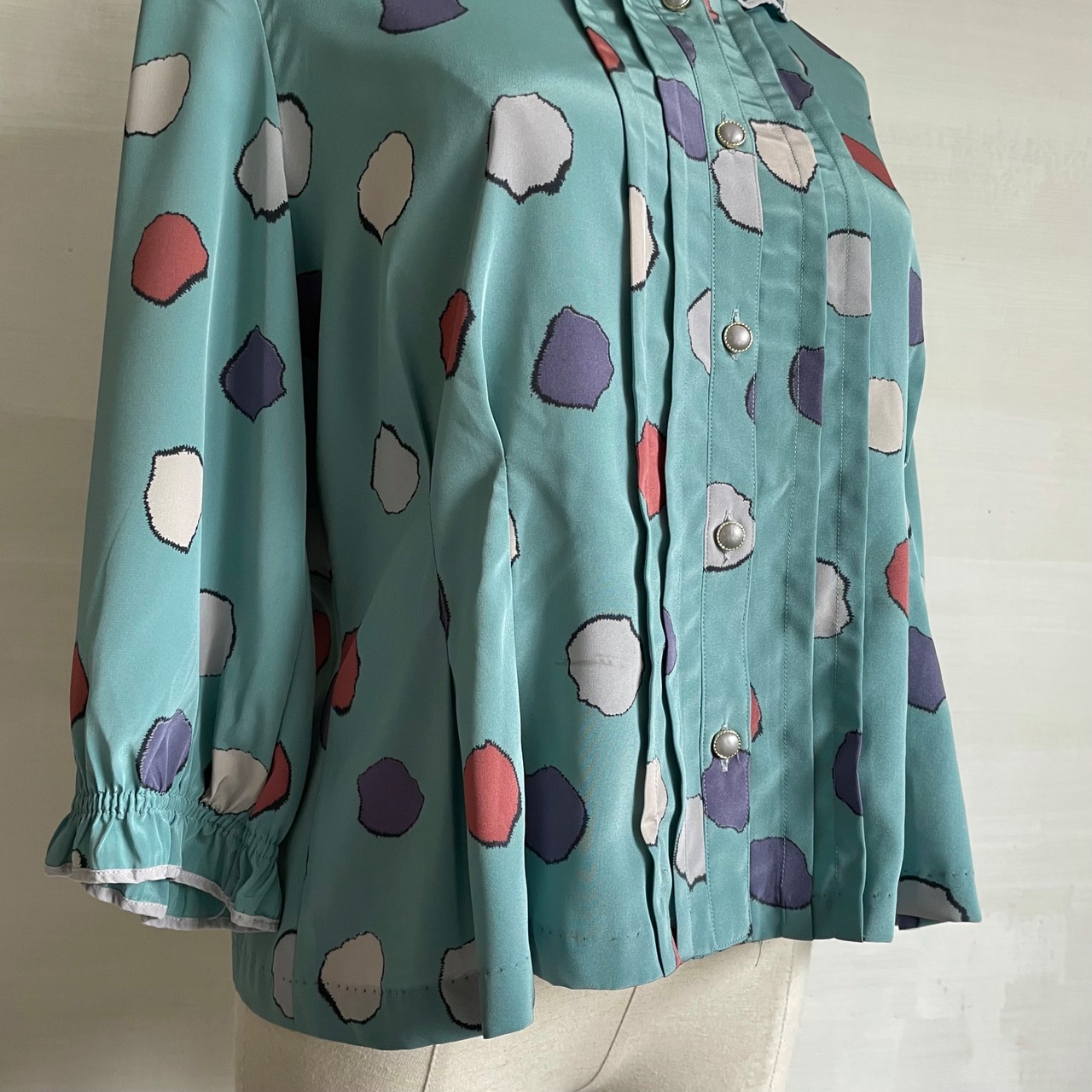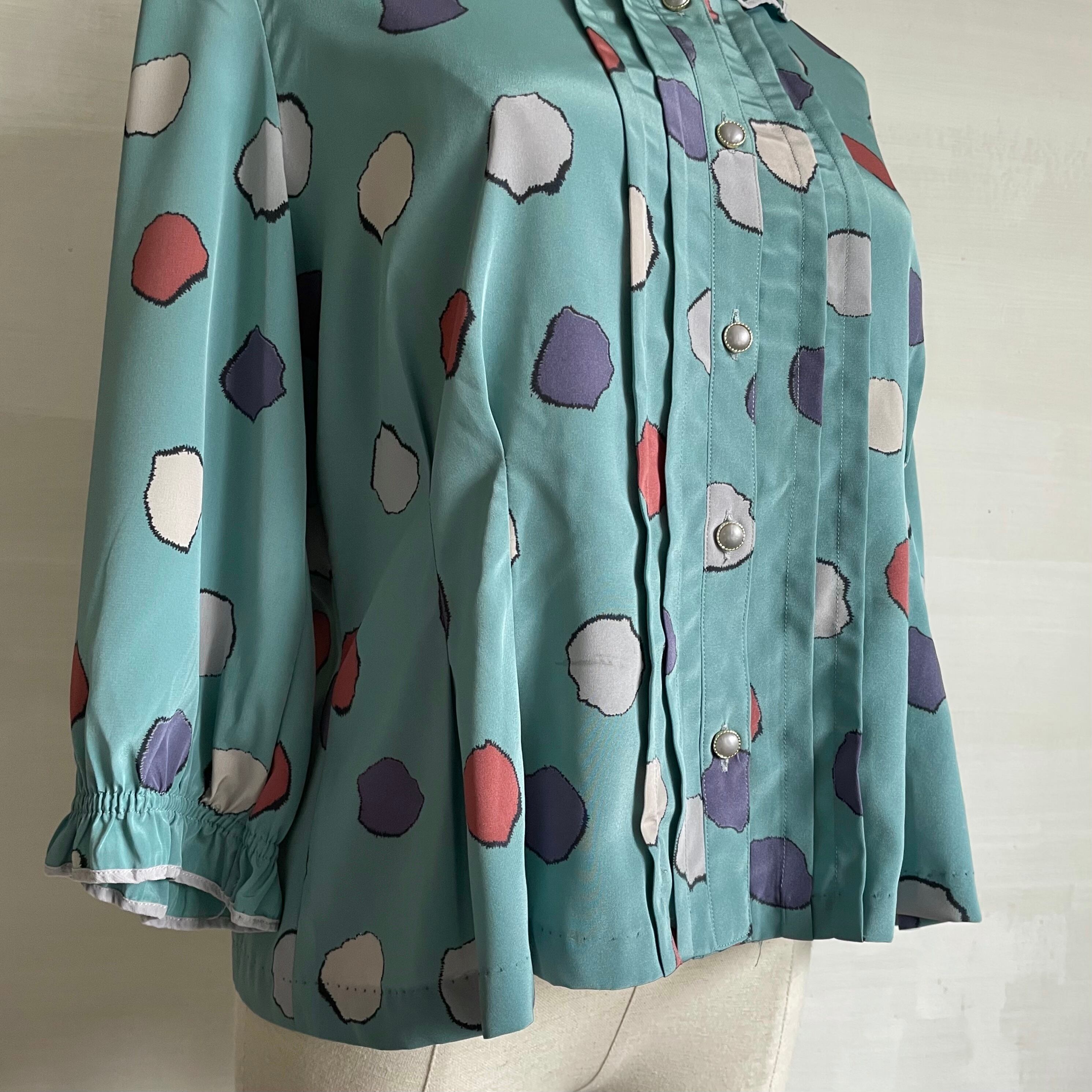 piping collar handwritten dot blouse 〈レトロ古着 パイピング襟 手書き水玉 ブラウス ブルー〉
