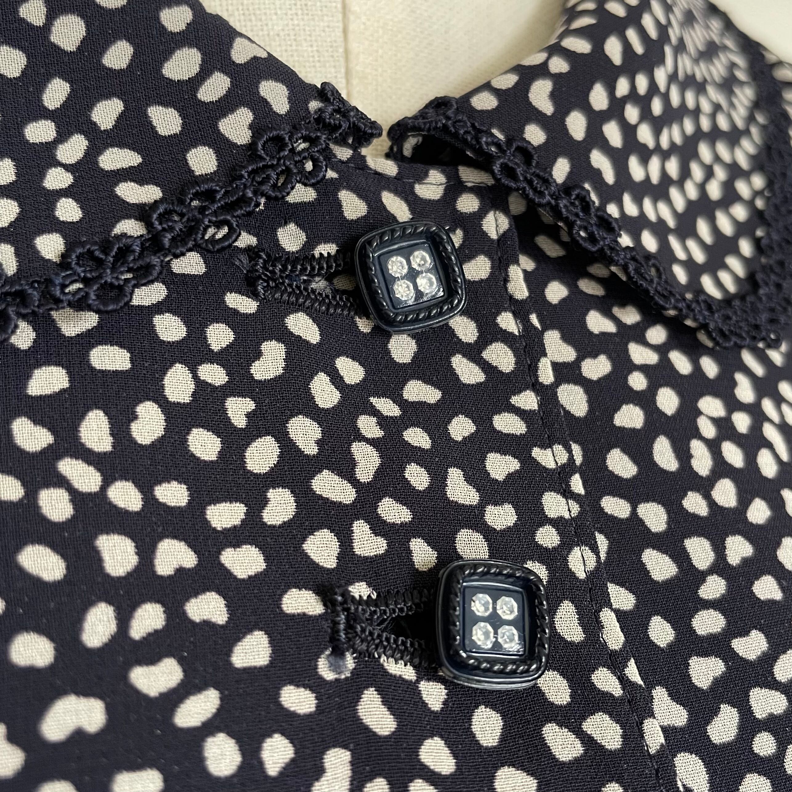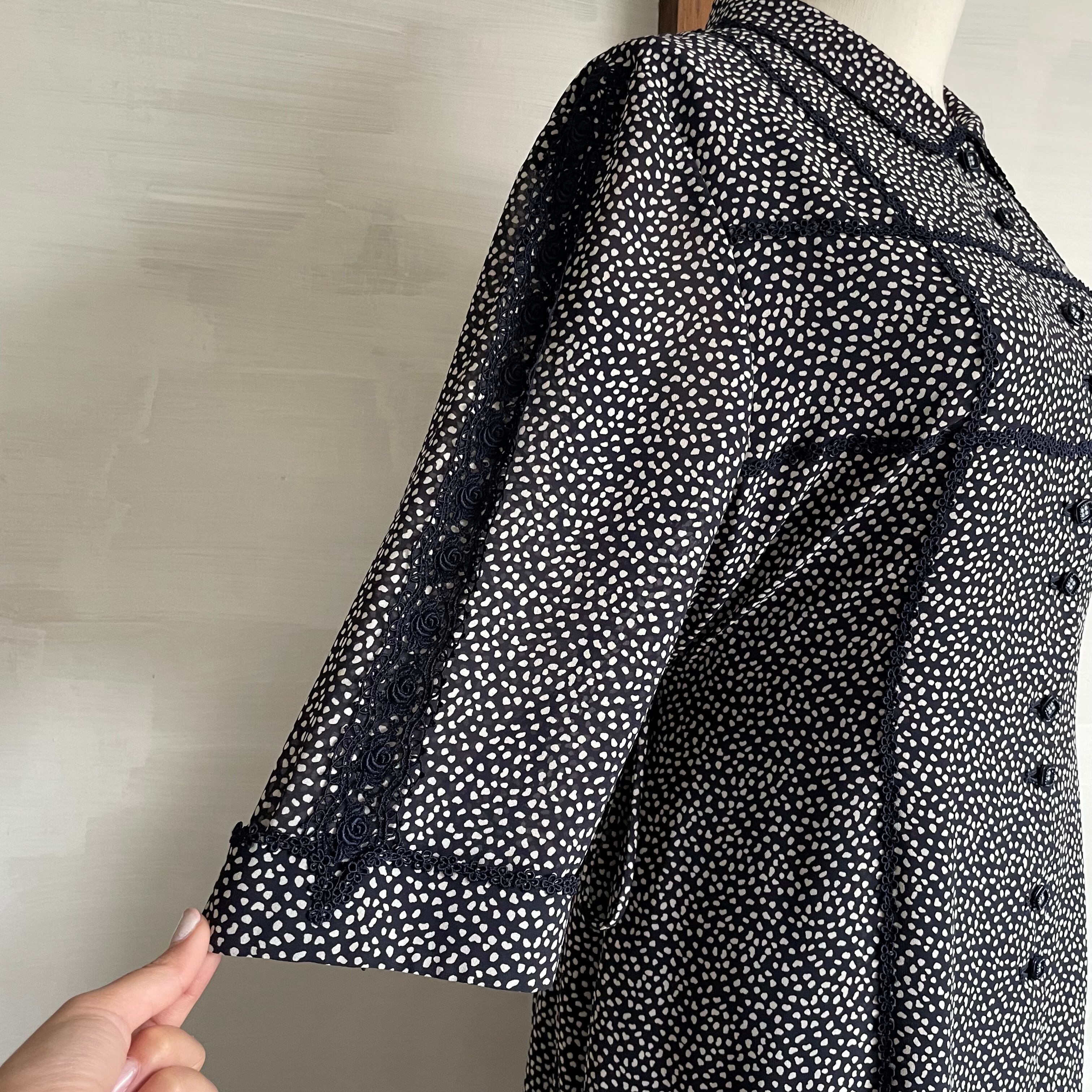line design side ribbon dress〈レトロ古着 ラインデザイン サイドリボン ワンピース 紺〉