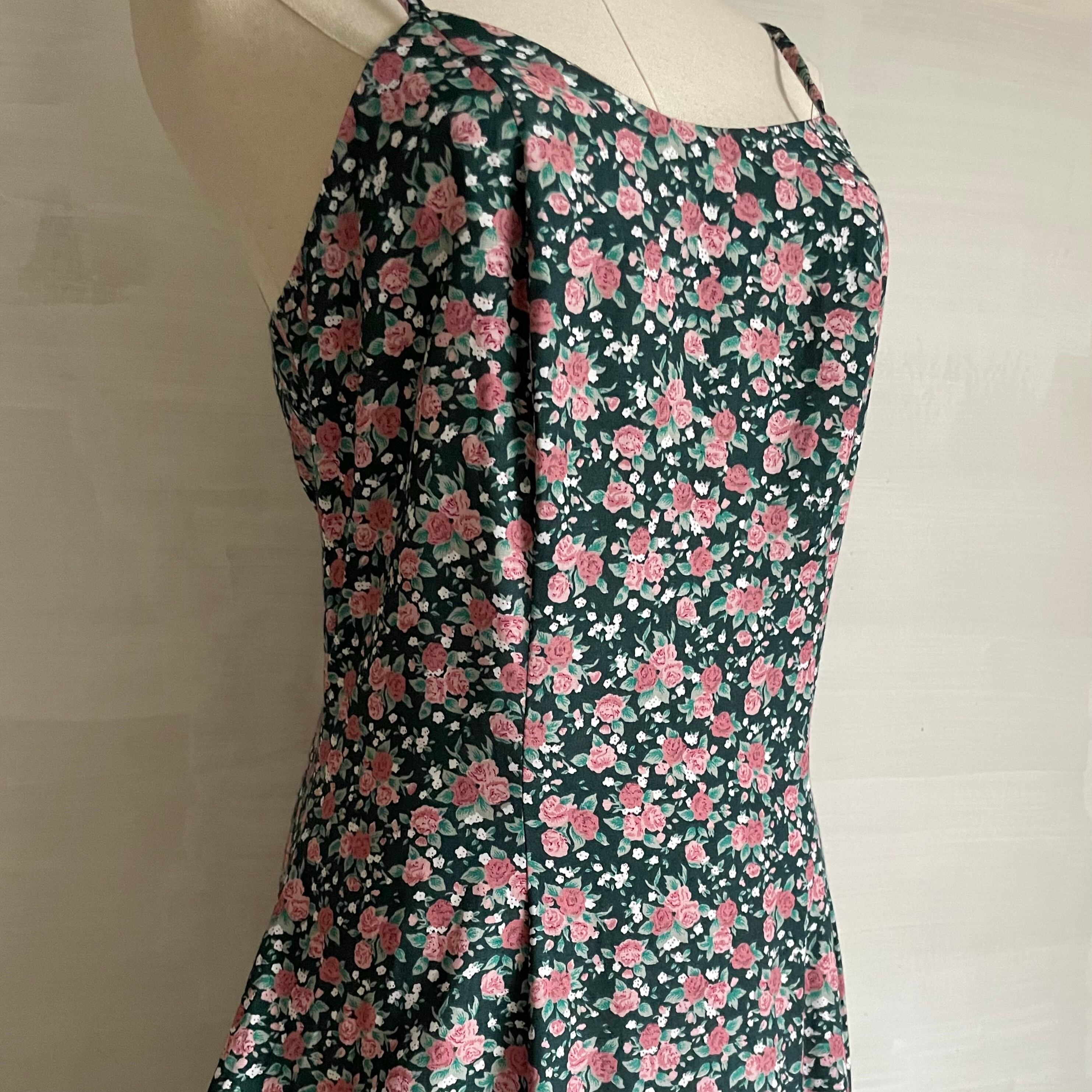 rose print lace-up camisole dress〈レトロ古着 薔薇柄 レースアップ キャミソールワンピース アメリカ製〉