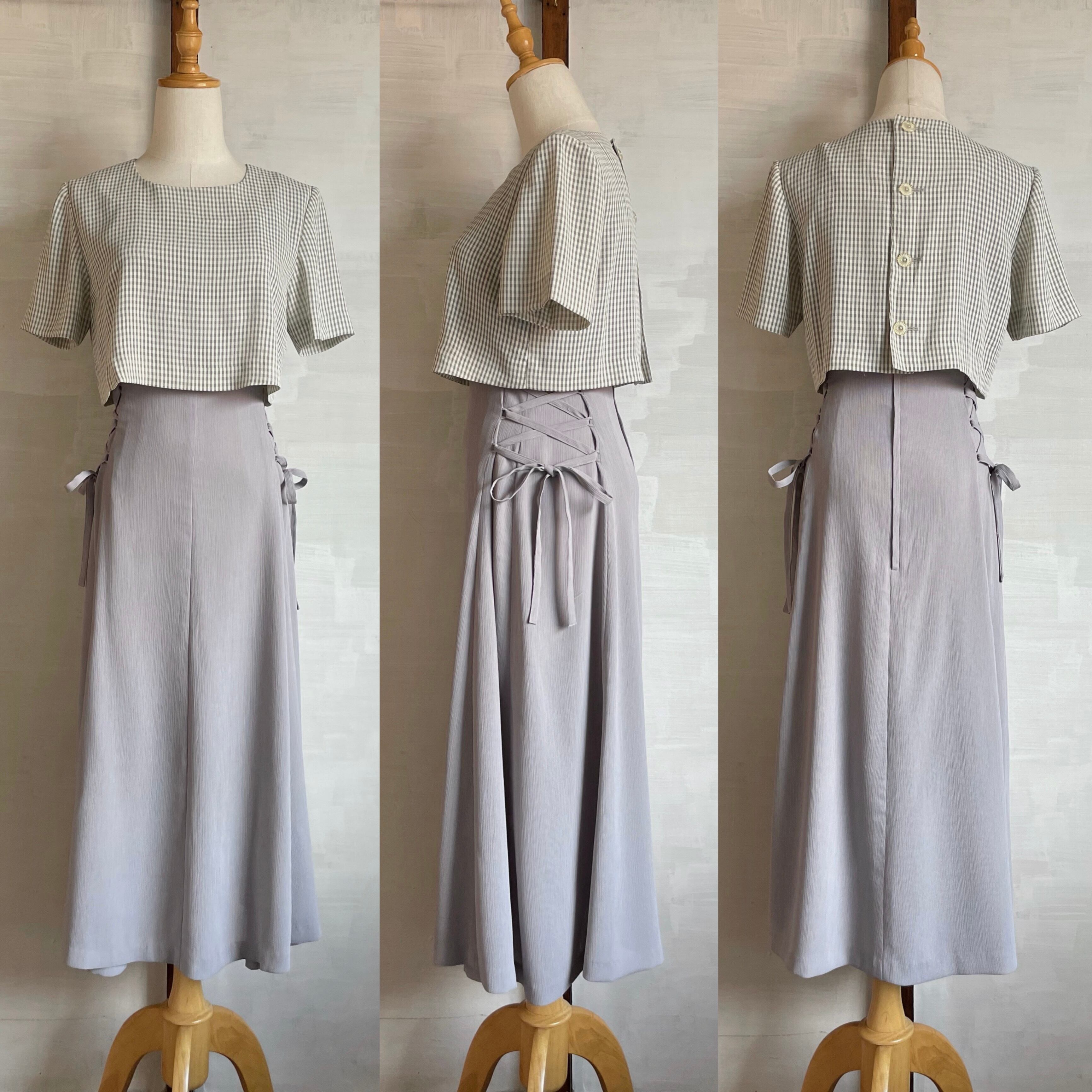 画像は比較的しっかりとウエストを絞っておりますが、お好みで調整していただくとゆとりのあるラインも楽しめます◉