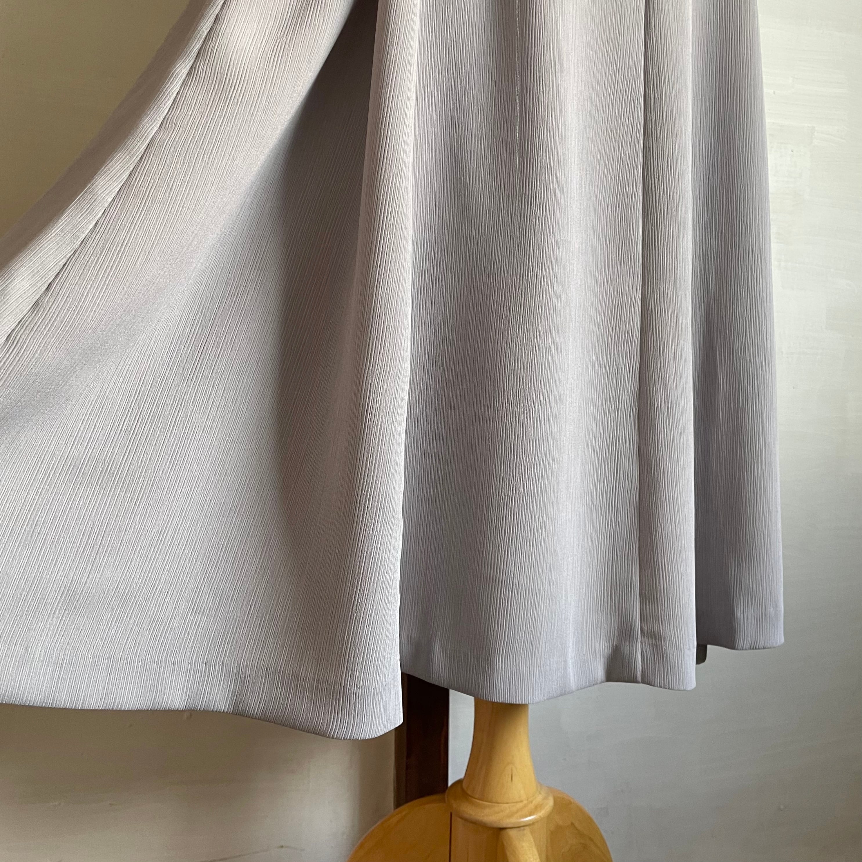 ペールブルーのような淡い色味にややシャリ感のある生地がさらっと涼しげな一点