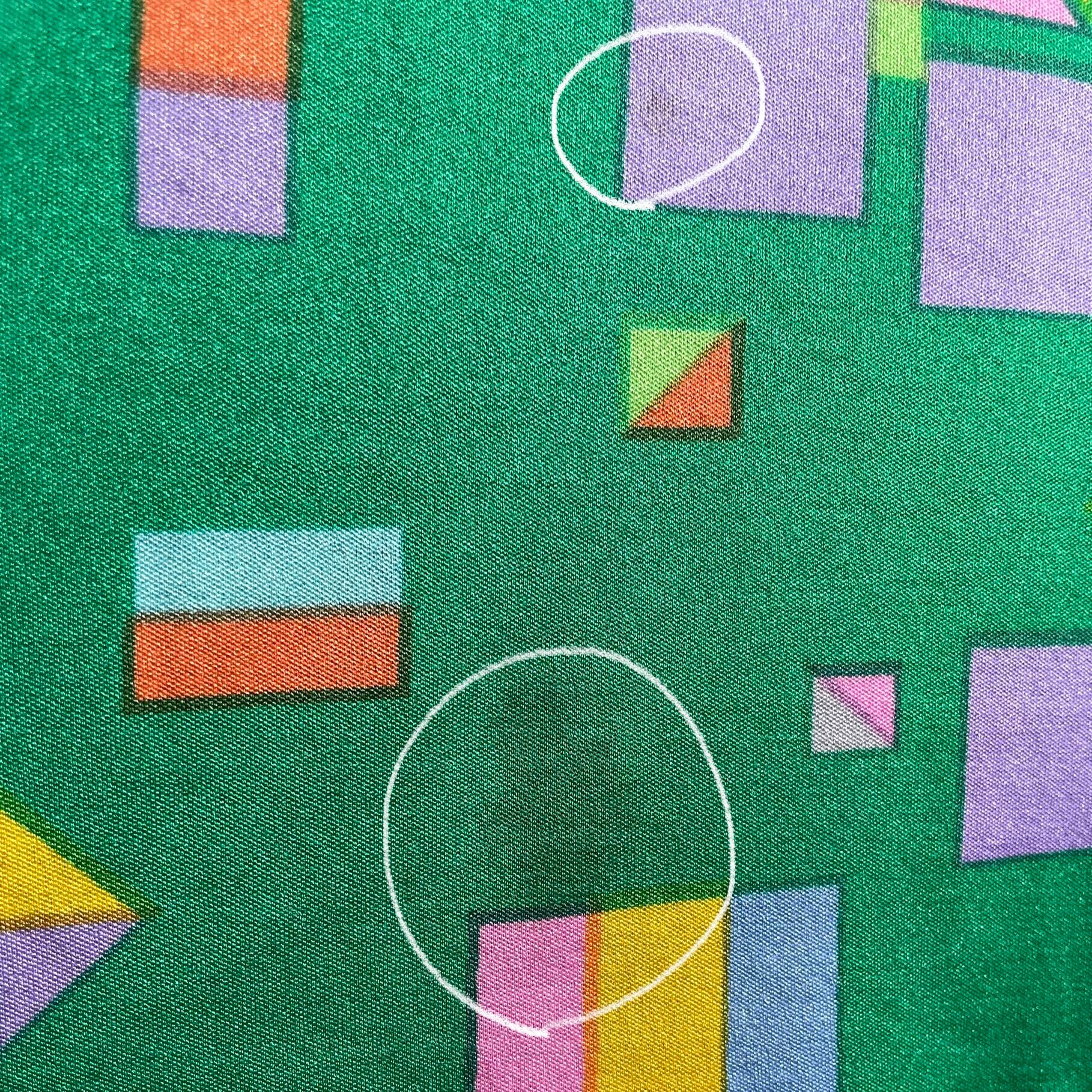 鮮やかなグリーンに様々な四角や三角が