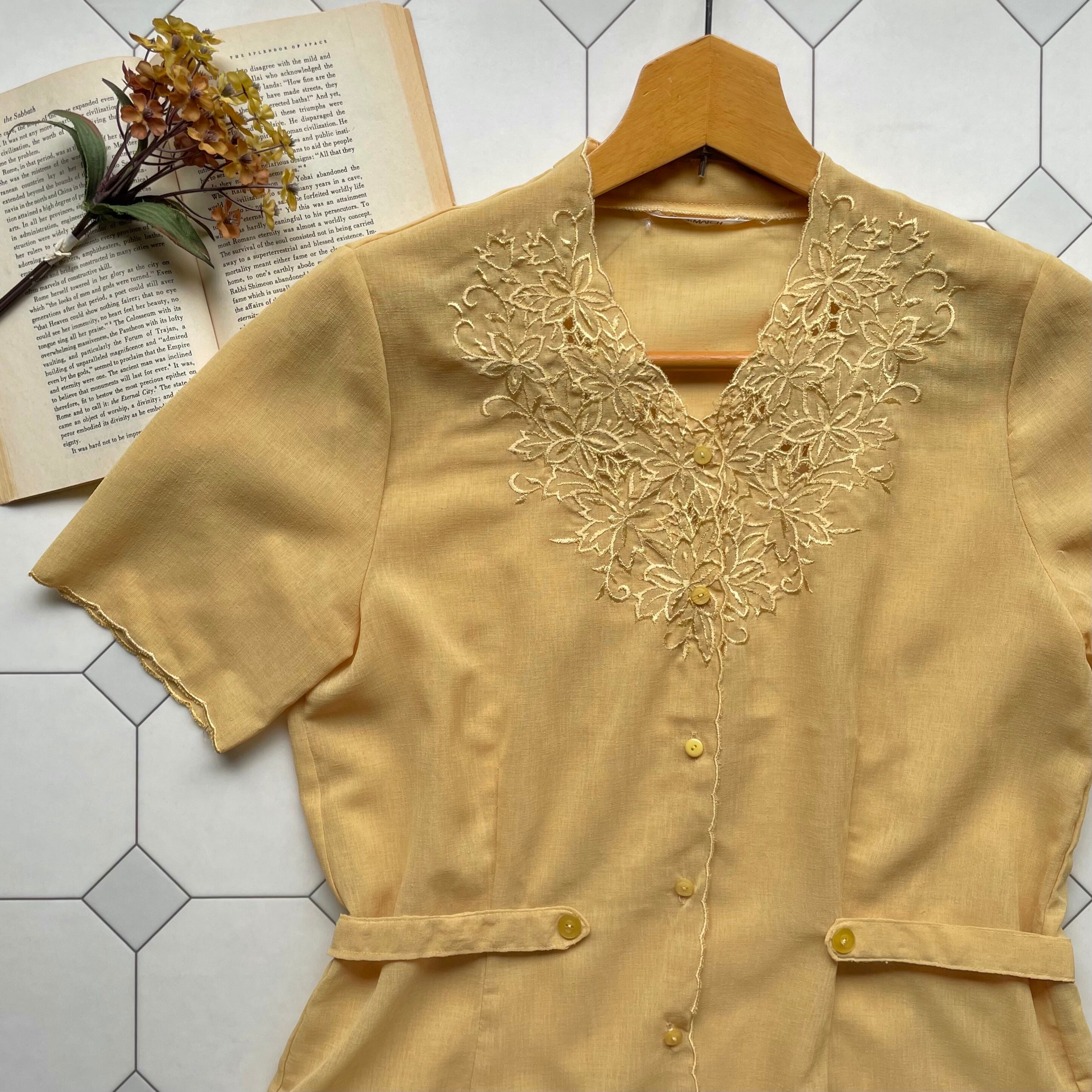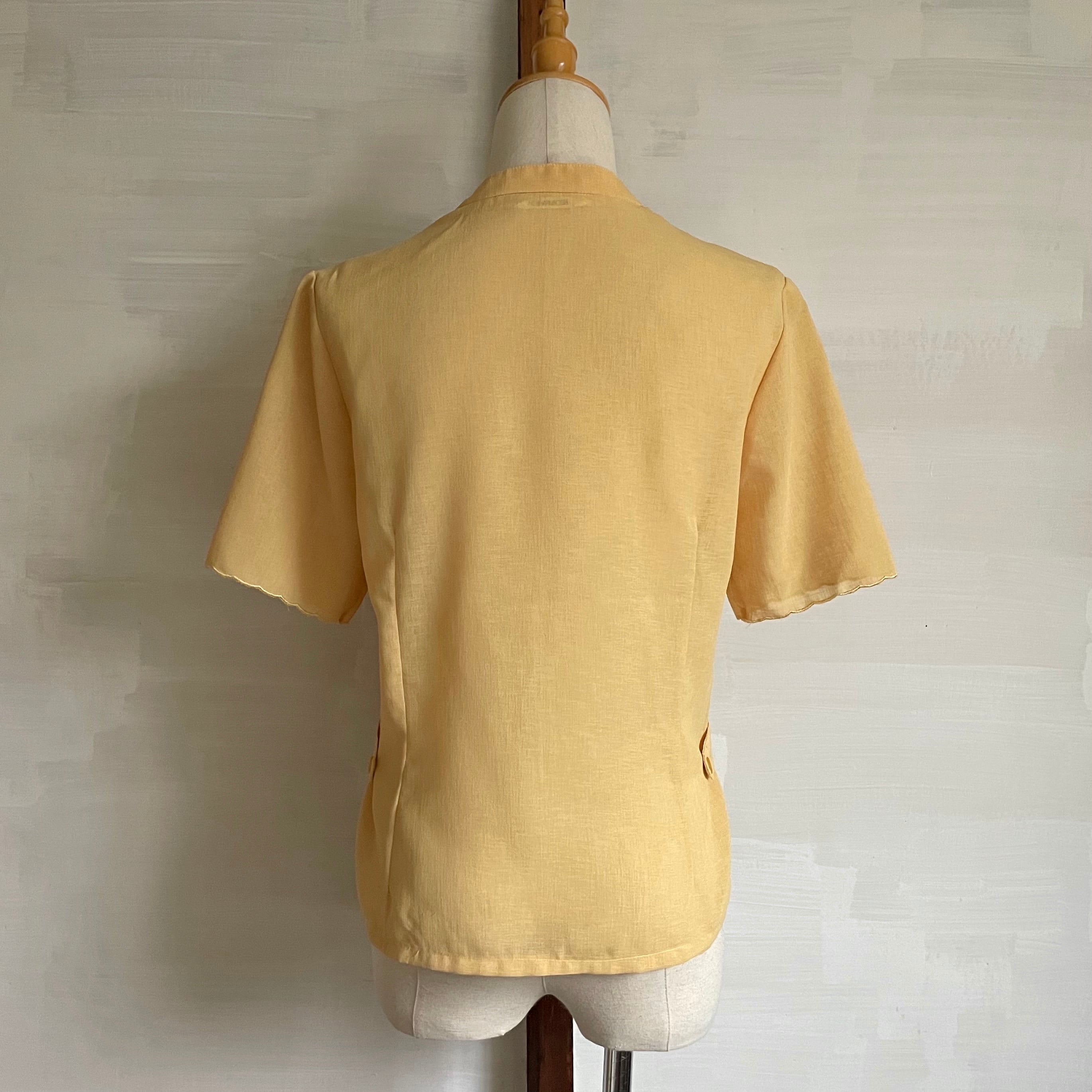 side strap embroidered blouse 〈レトロ古着 サイドストラップ 刺繍ブラウス 黄色 日本製〉