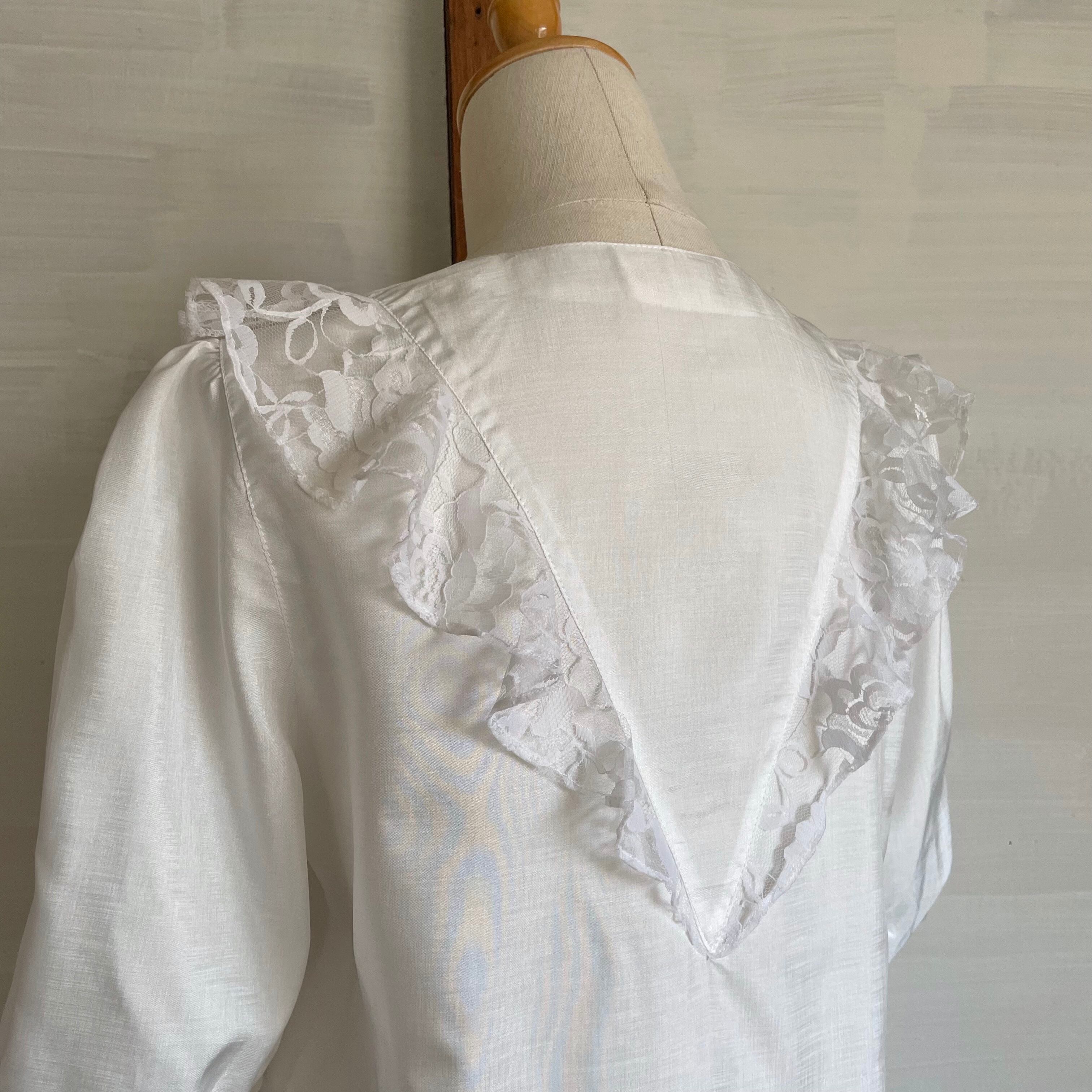 shoulder lace red button blouse 〈レトロ古着 ショルダーレース 赤ボタン ブラウス 白〉