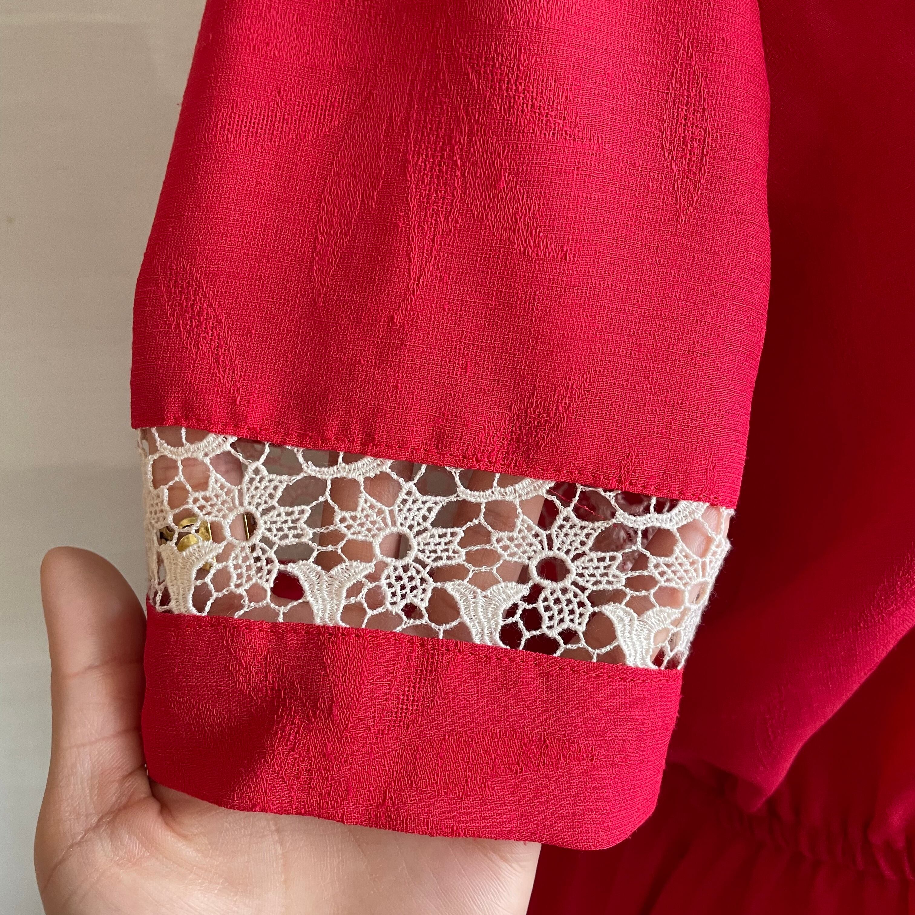 lace design band collar sheer dress〈レトロ古着 レースデザイン バンドカラー シアー ワンピース〉