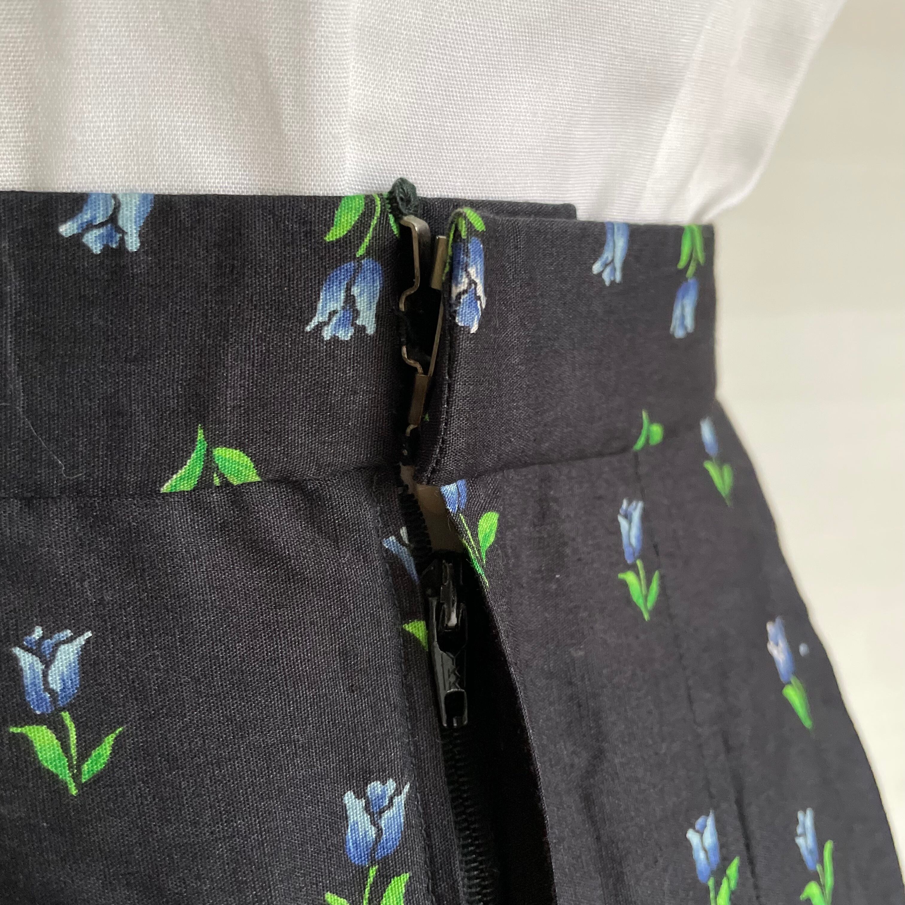 blue tulip pattern tuck skirt 〈レトロ古着 ブルーチューリップ柄 タックスカート 紺 青〉
