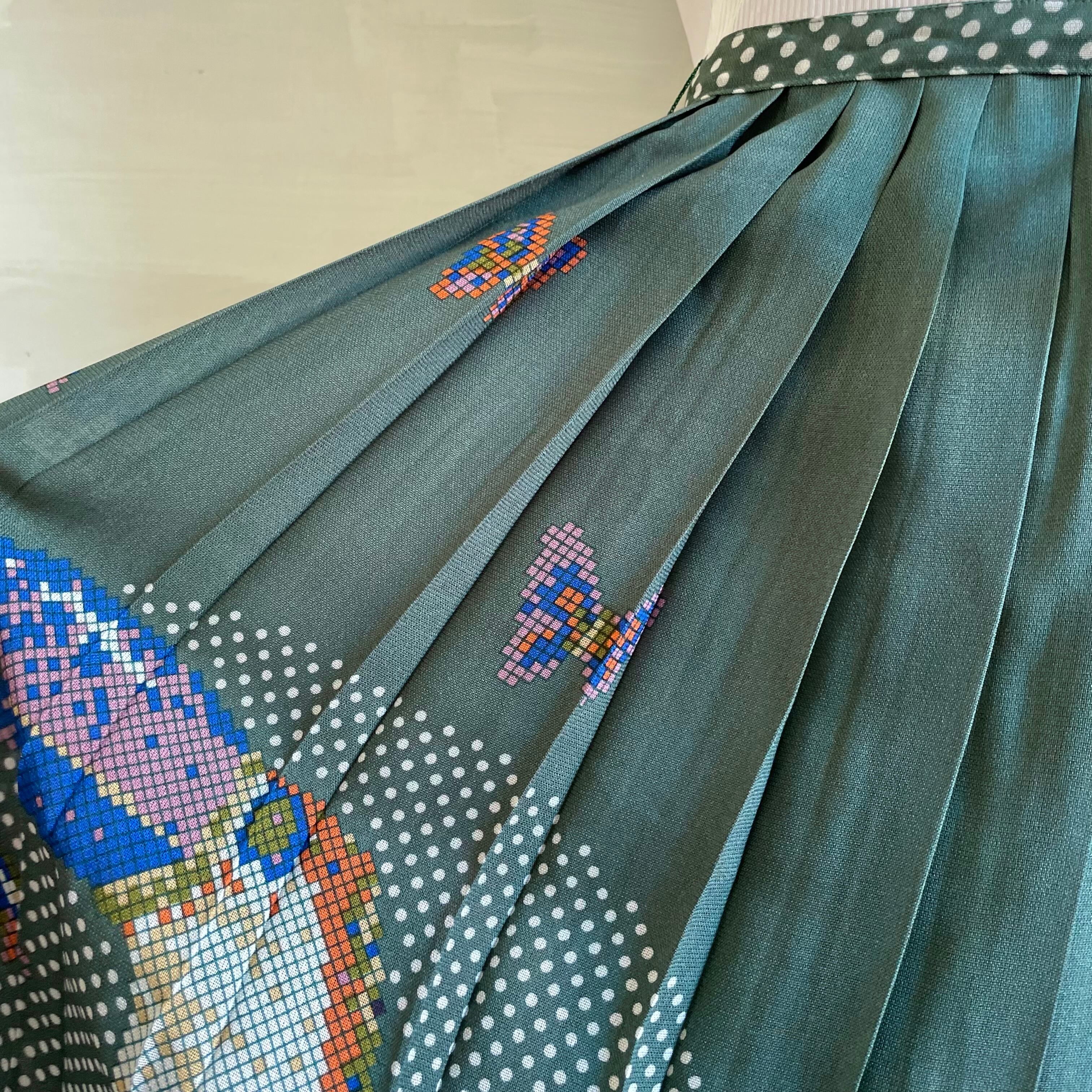 モスグリーンのプリーツが組み合わさった