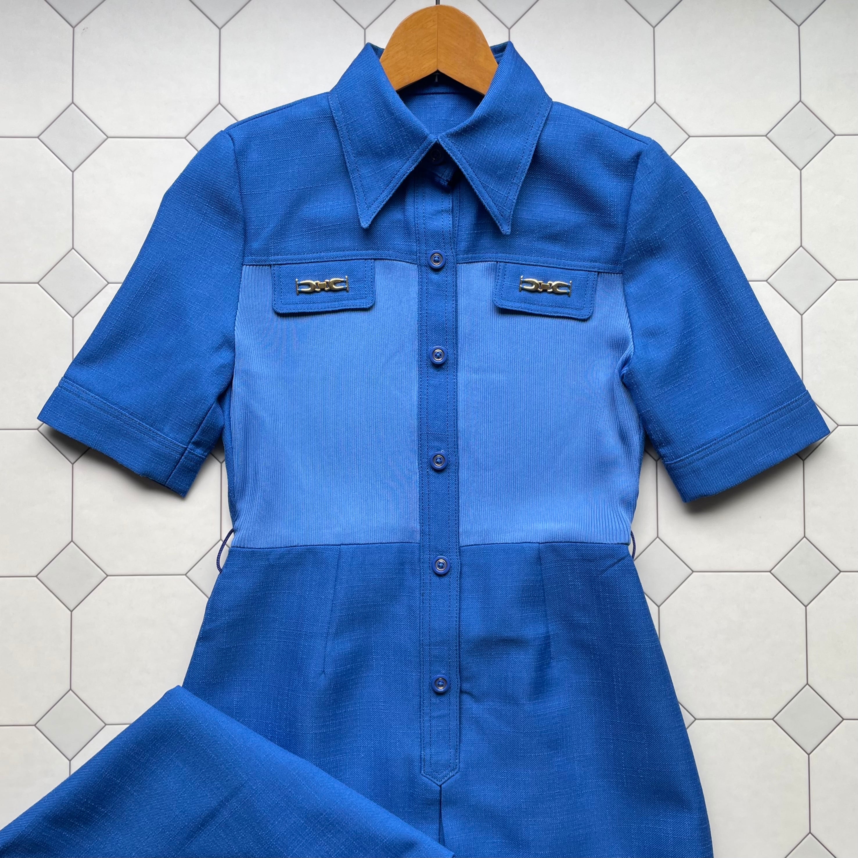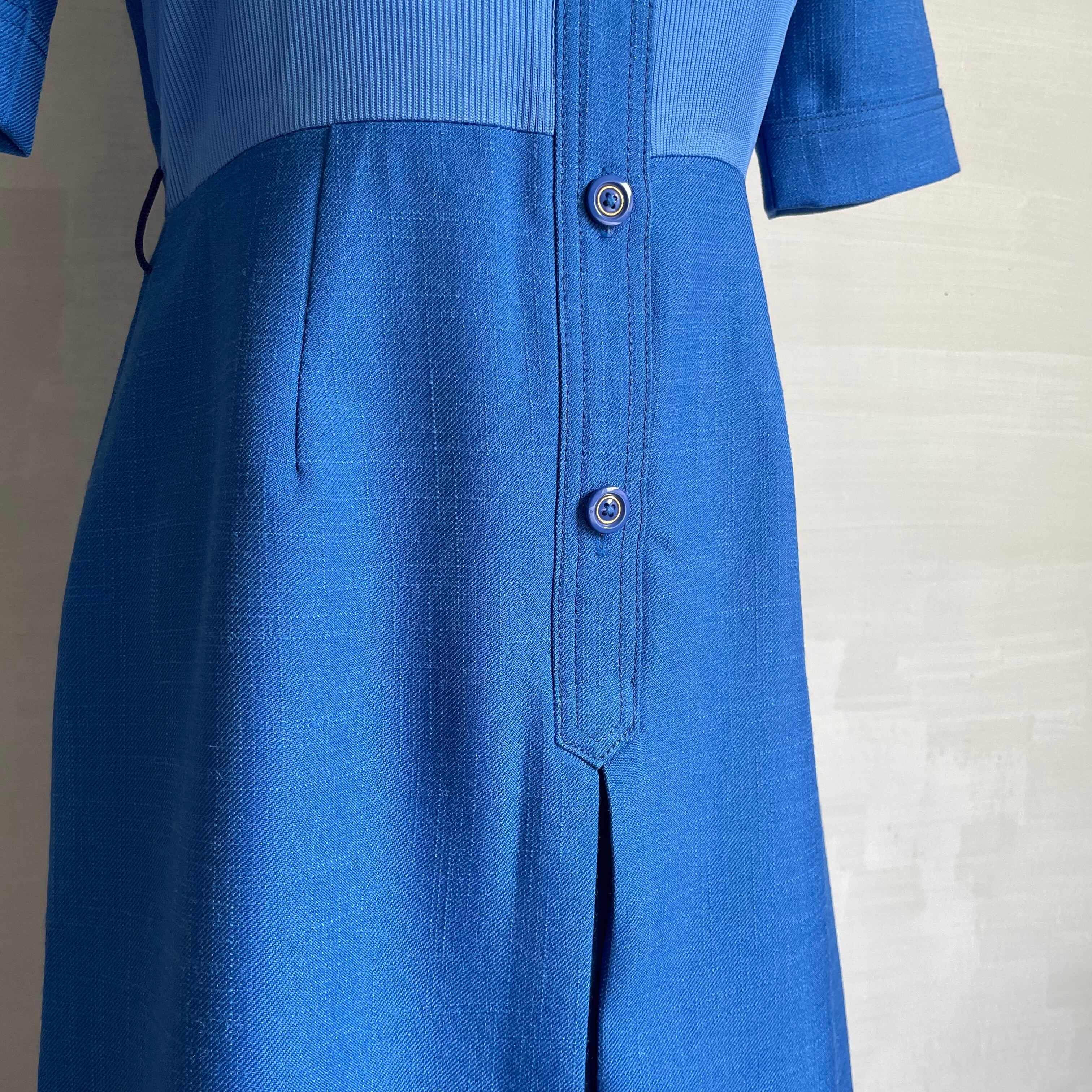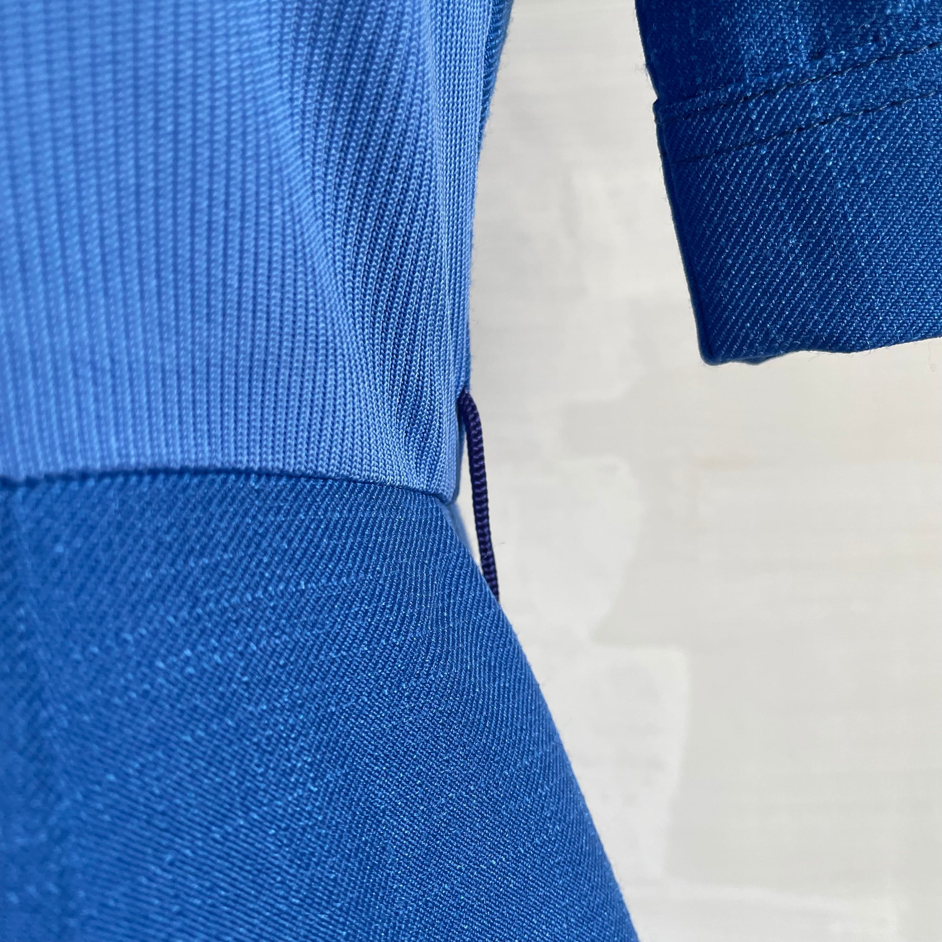 shantung × rib blue dress〈レトロ古着 シャンタン × リブ ブルー ワンピース〉