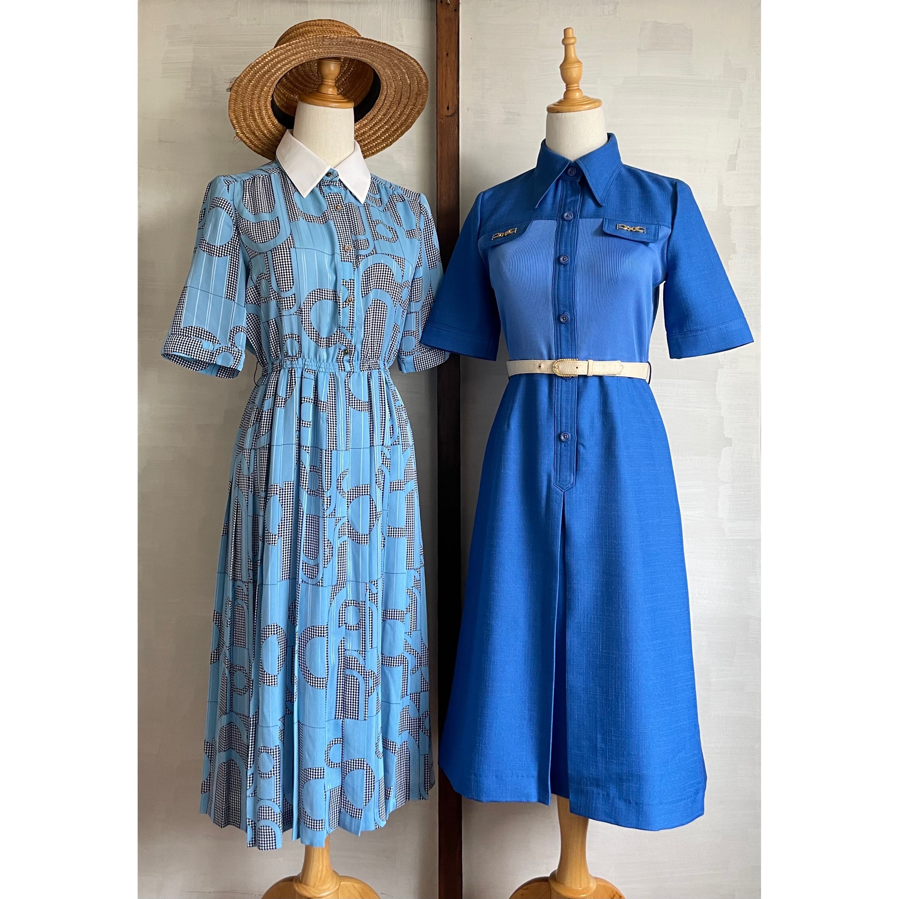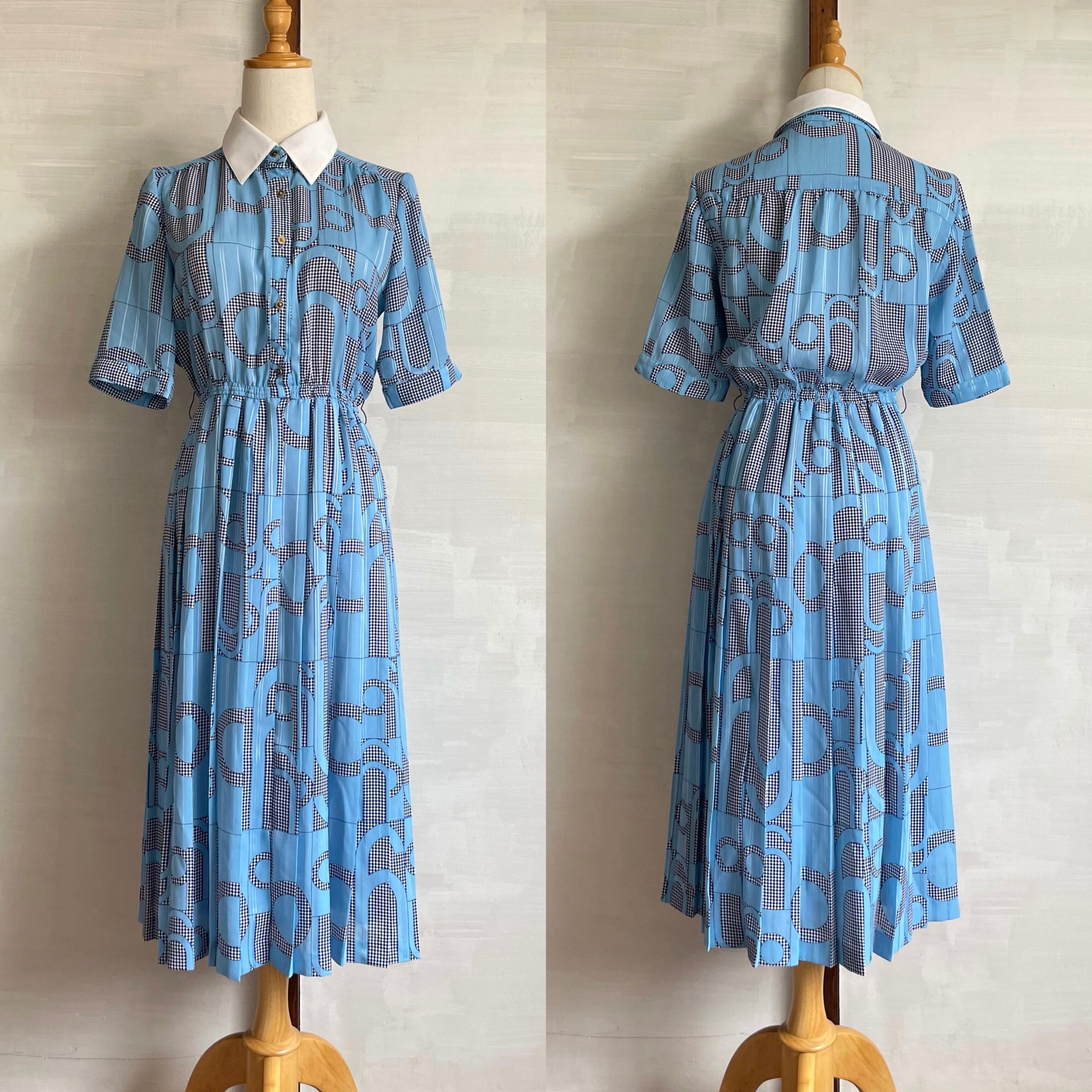 alphabet motif light blue dress〈レトロ古着 アルファベットモチーフ ライトブルー ワンピース〉