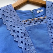zigzag cutwork lace blue dress〈レトロ古着 ジグザグ カットワークレース ブルー ワンピース 日本製〉