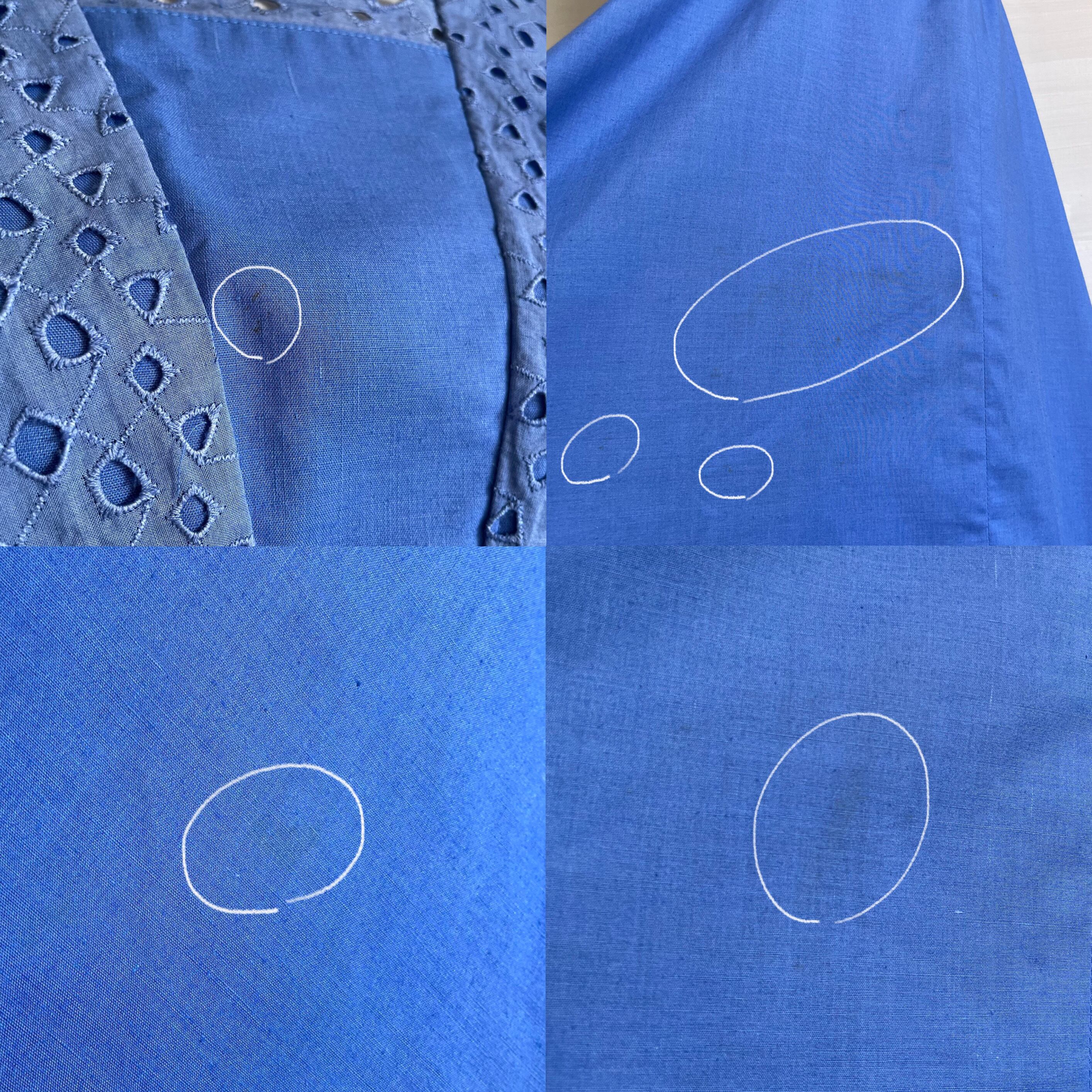 身頃、スカート部分の左端などその他所々に薄っすらとしみあり