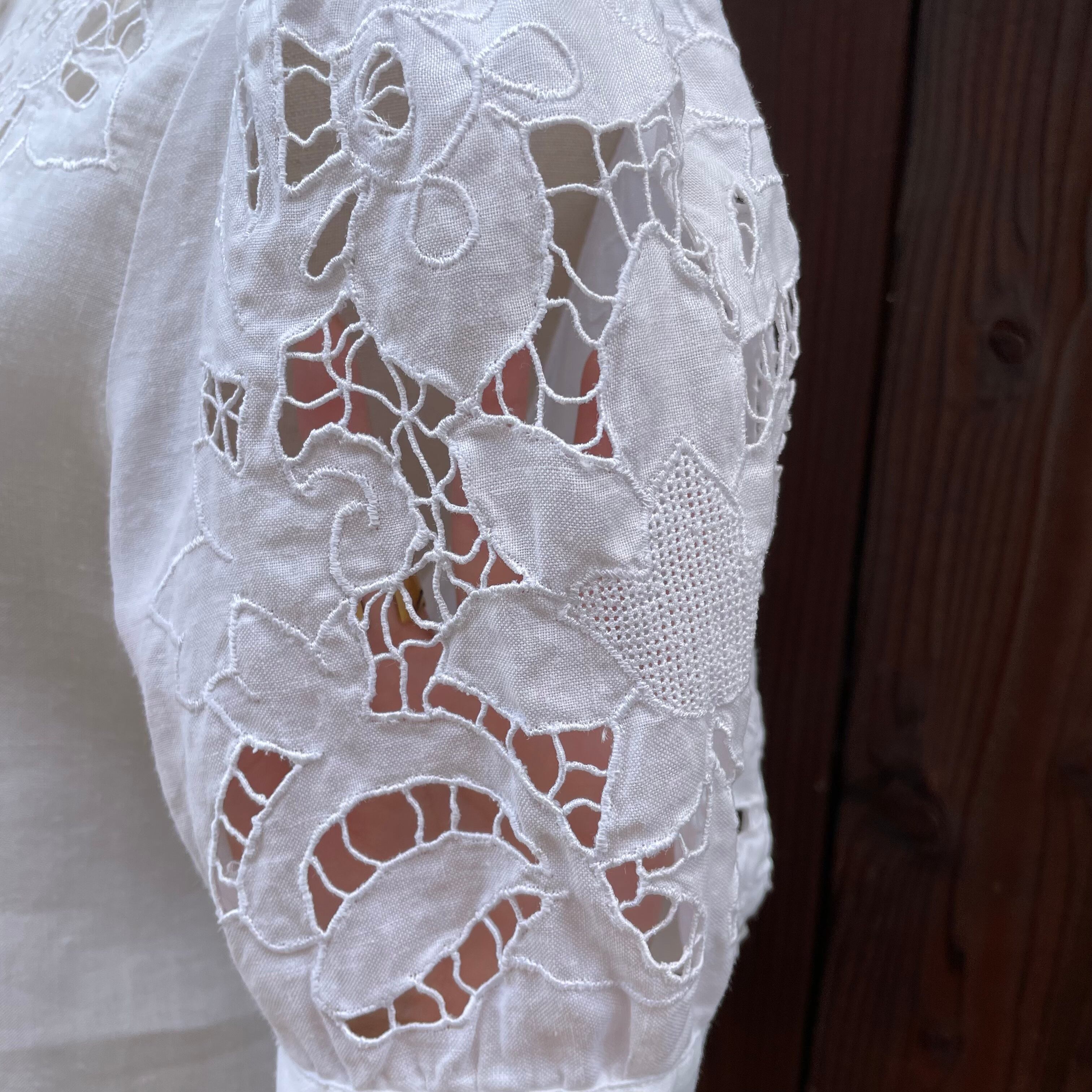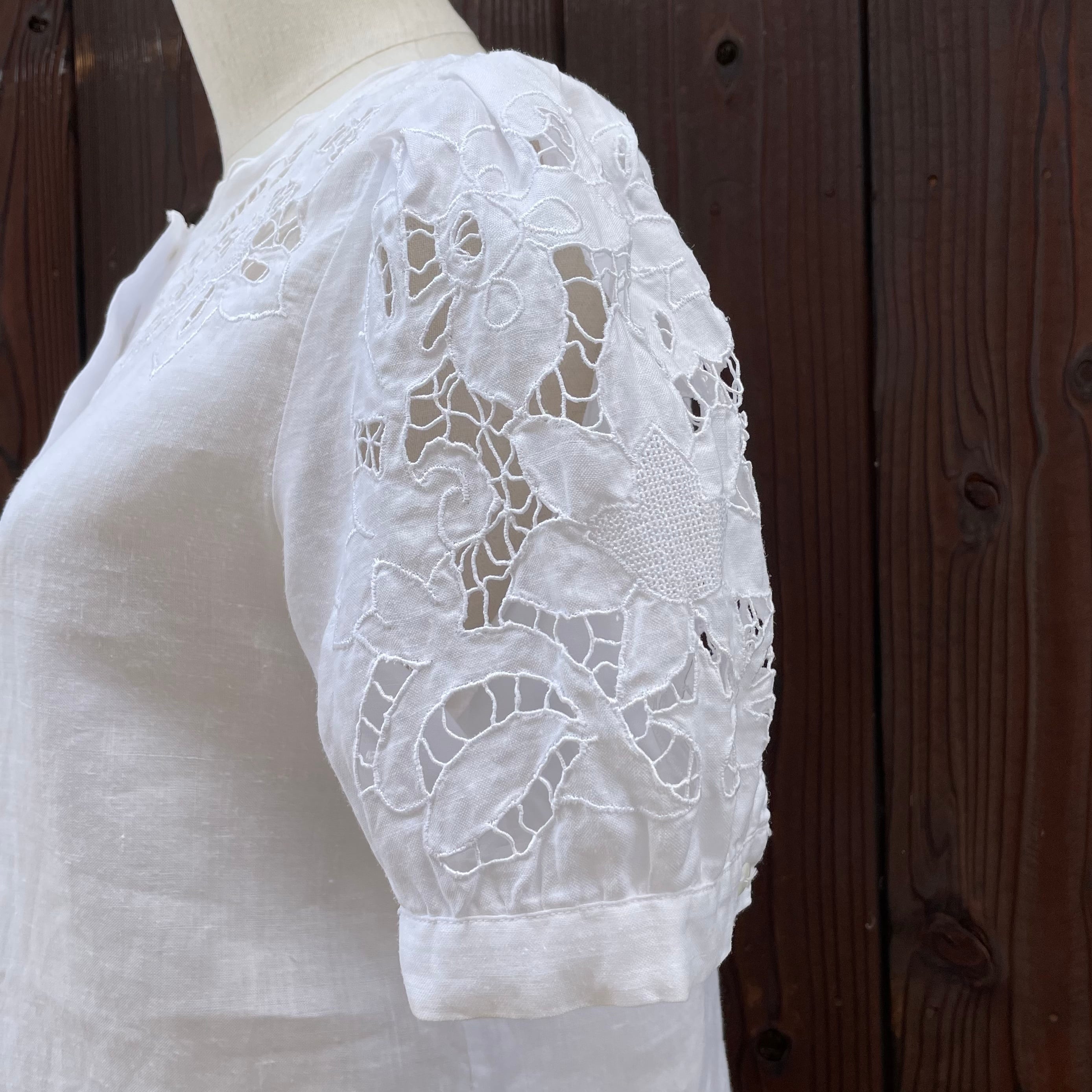 cutwork embroidery linen blouse 〈レトロ古着 カットワーク刺繍 麻ブラウス 白〉