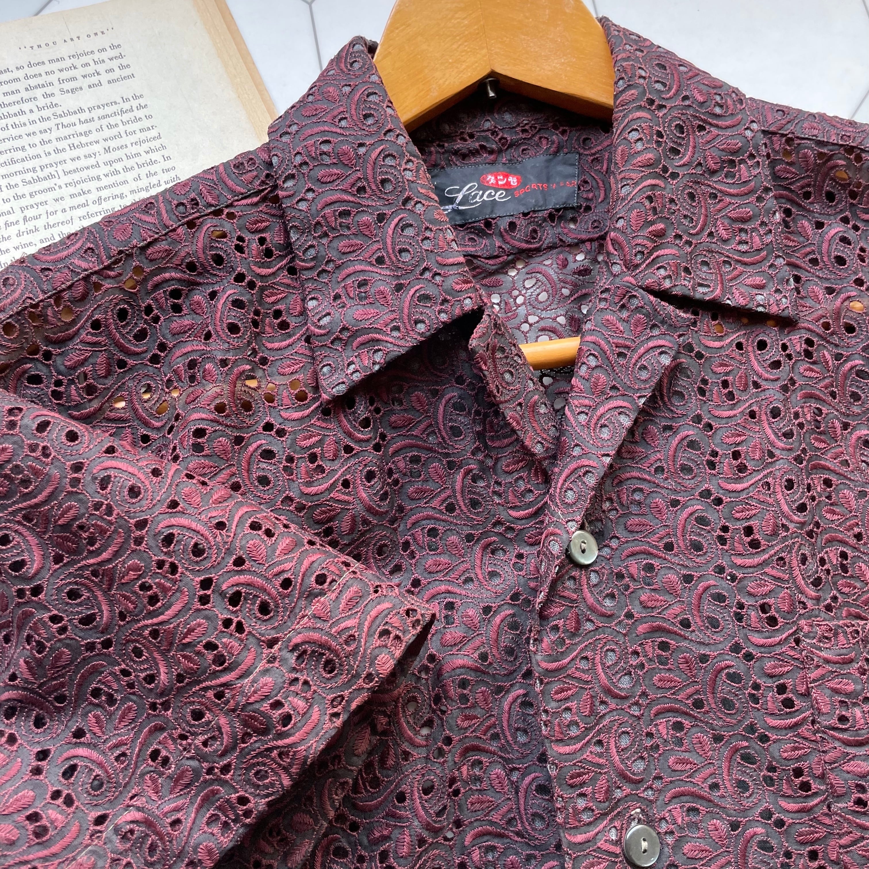 burgundy lace sheer shirt 〈レトロ古着 バーガンディー 総レース シアーシャツ ボルドー〉