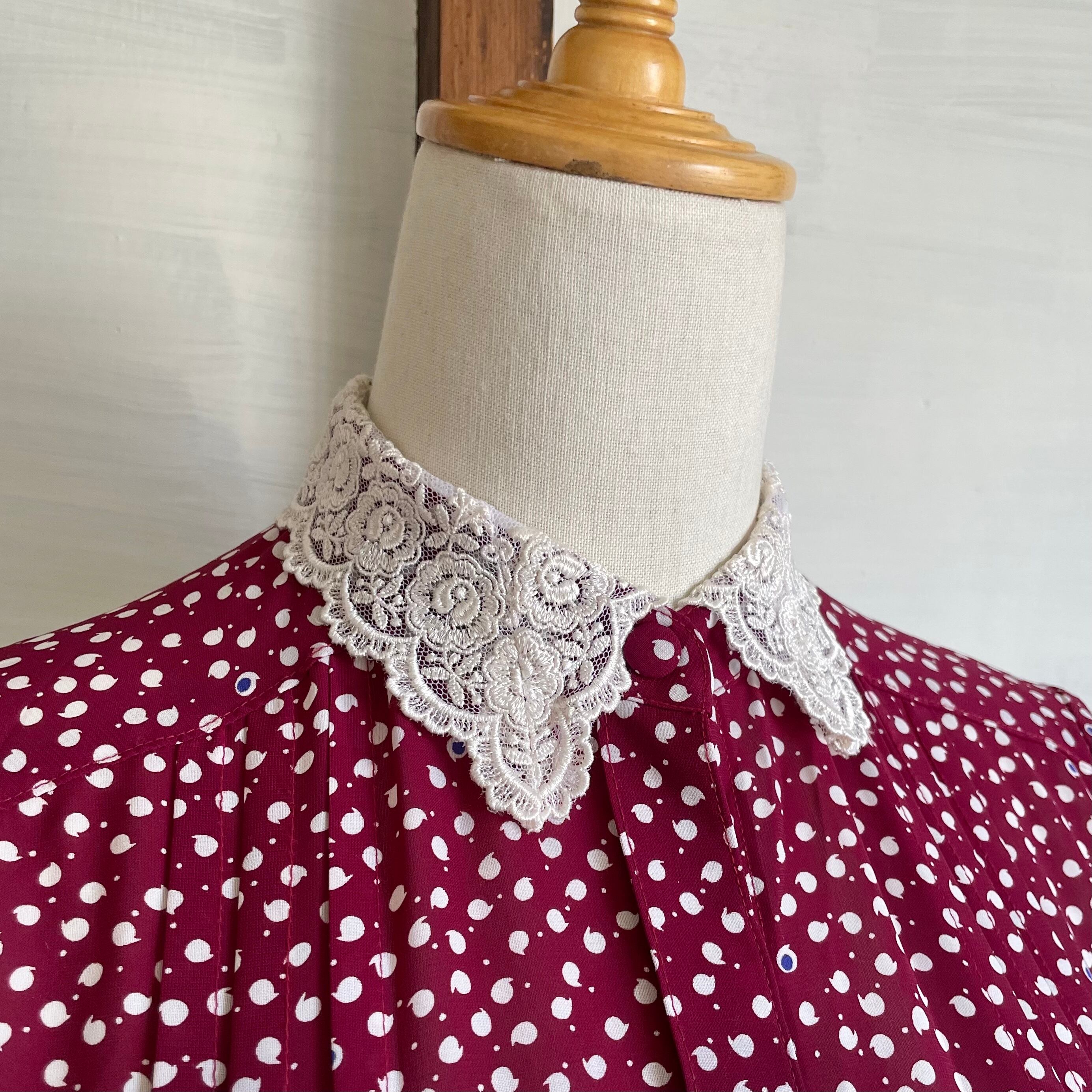 lace collar comma motif dress〈レトロ古着 レース襟 コンマ柄 ワンピース 日本製〉