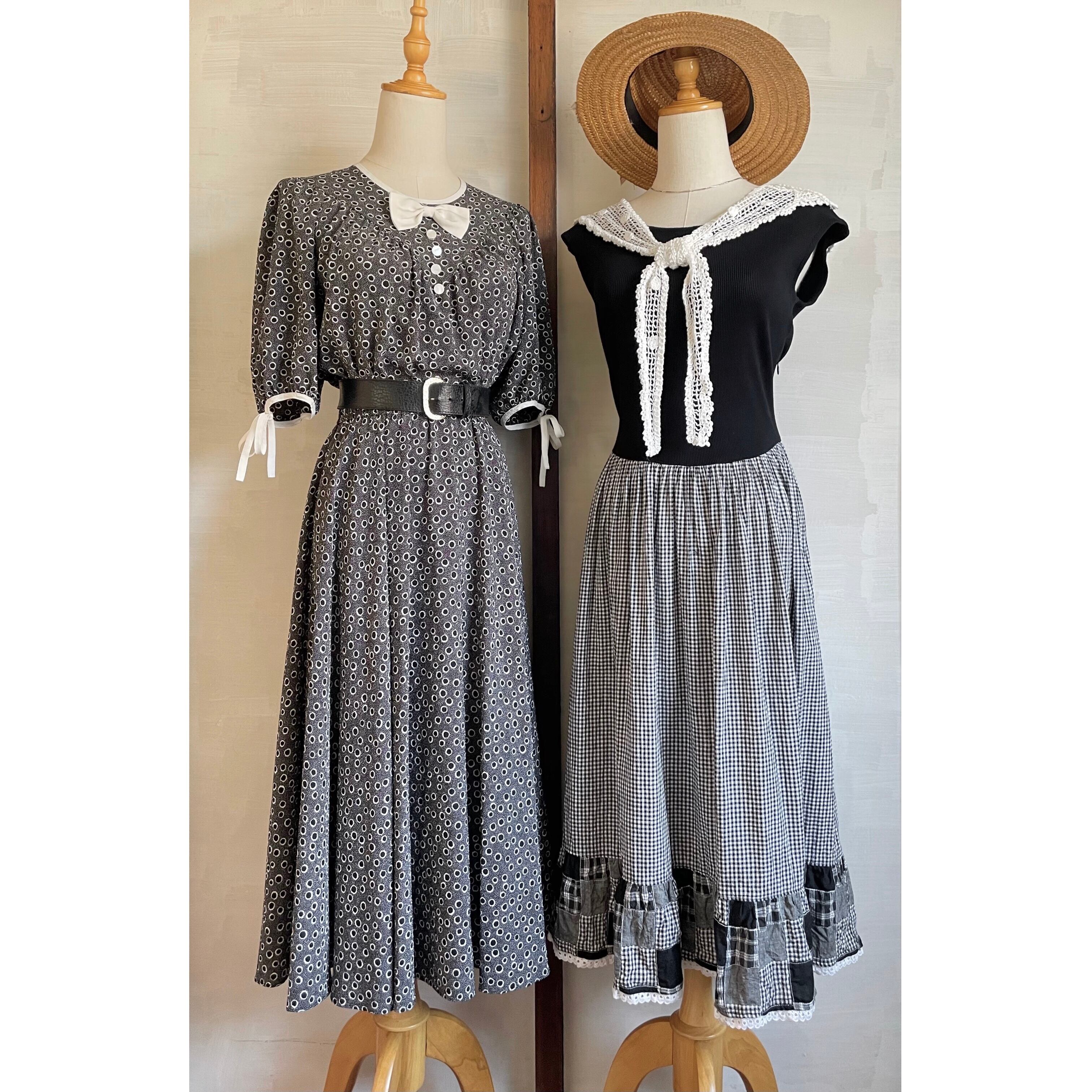 patchwork hem docking dress〈レトロ古着 パッチワーク ヘム ドッキングワンピース ATSUKI ONISHI モノトーン〉