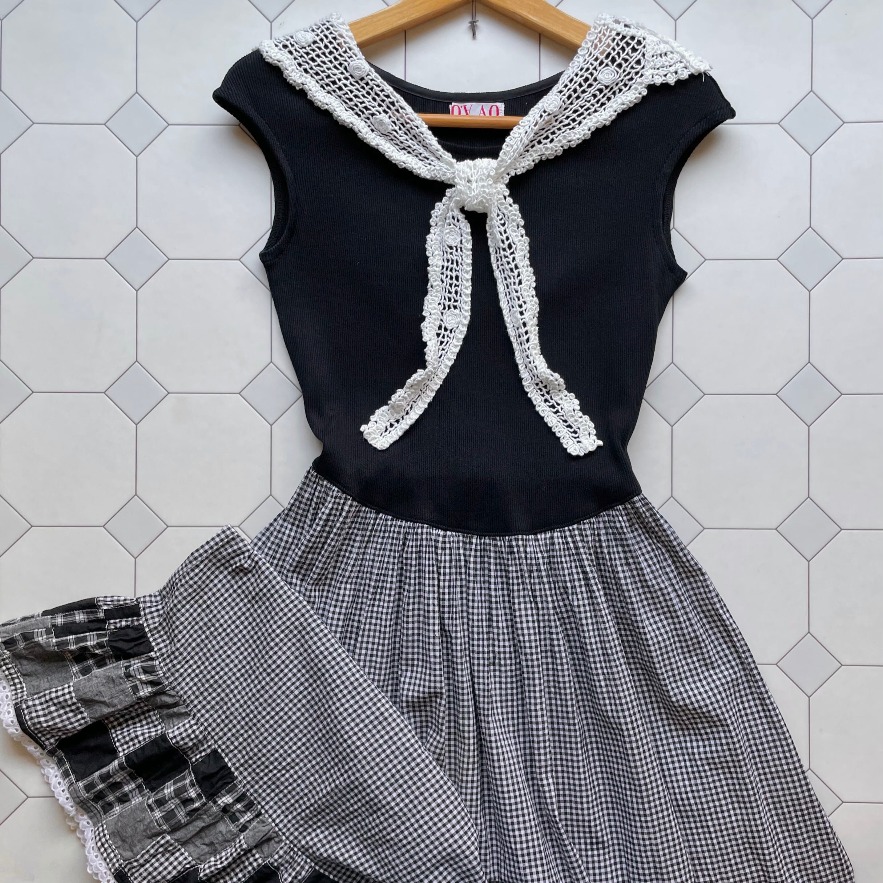 ブラックのリブにギンガムチェックのスカートが組み合わさった