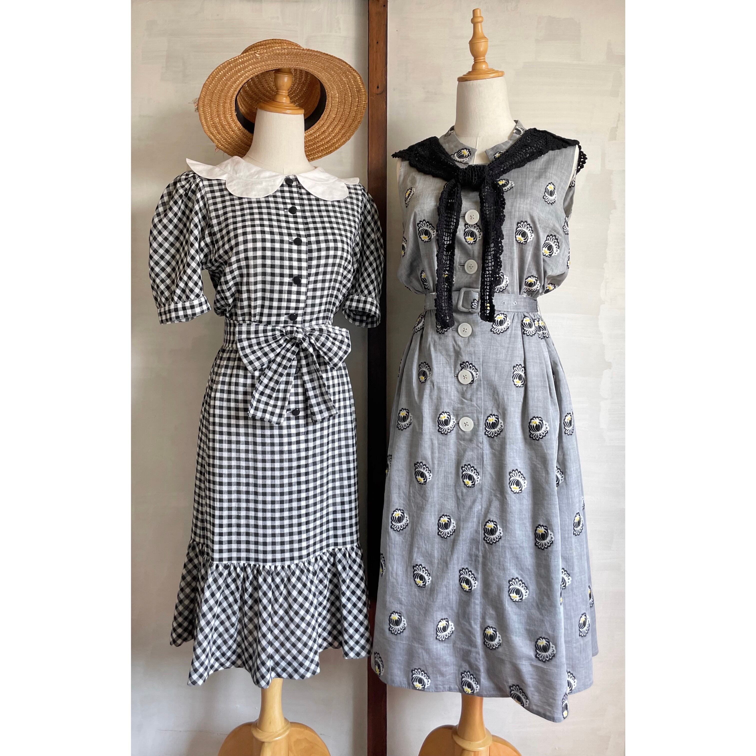 petal collar gingham check dress〈レトロ古着 ペタルカラー ギンガムチェック ワンピース jun ashida ジュンアシダ〉