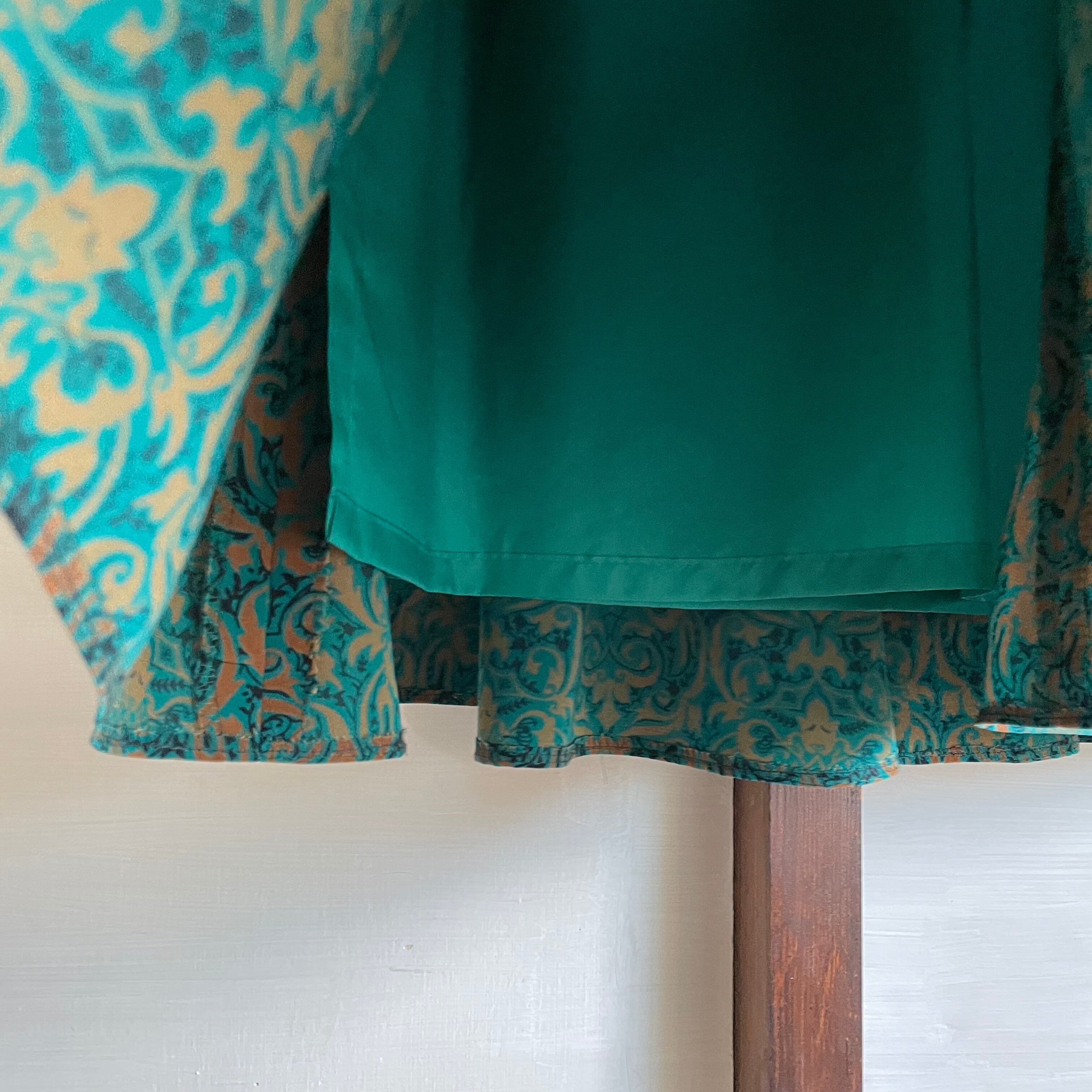 青みがかったディープグリーンに惹き込まれるダマスク柄のスカート