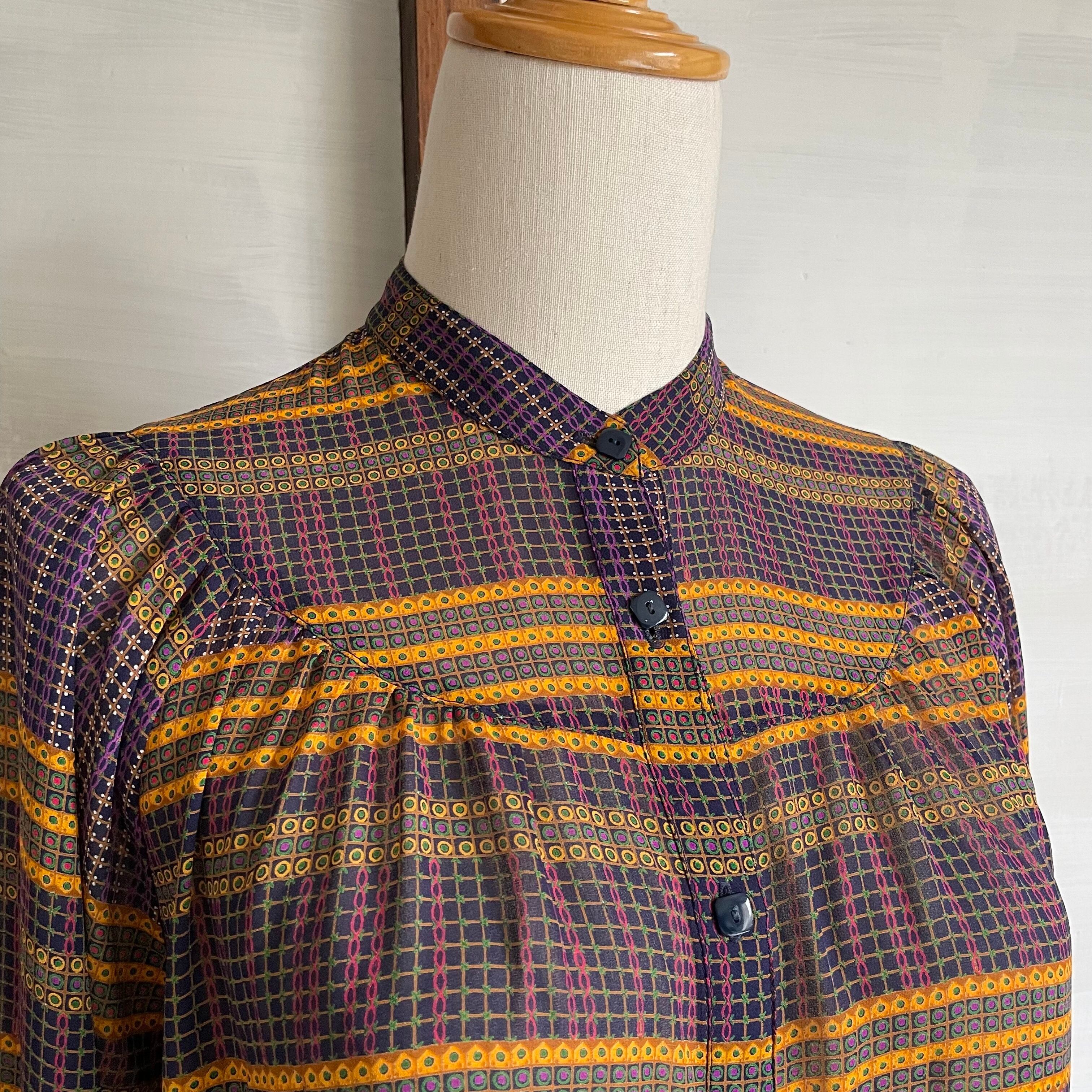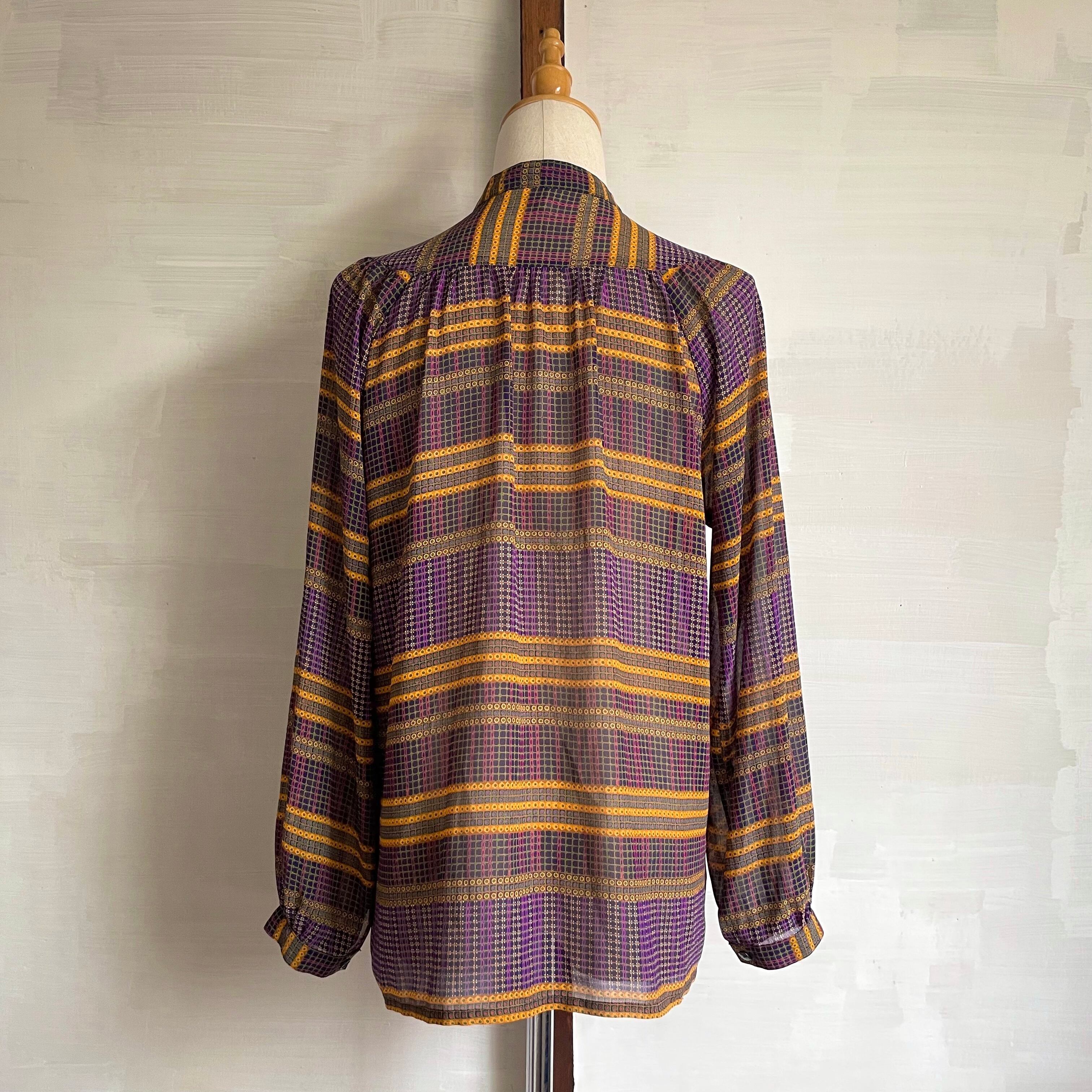 geometric pattern sheer yoke blouse 〈レトロ古着 幾何学模様 シアー ヨークブラウス〉