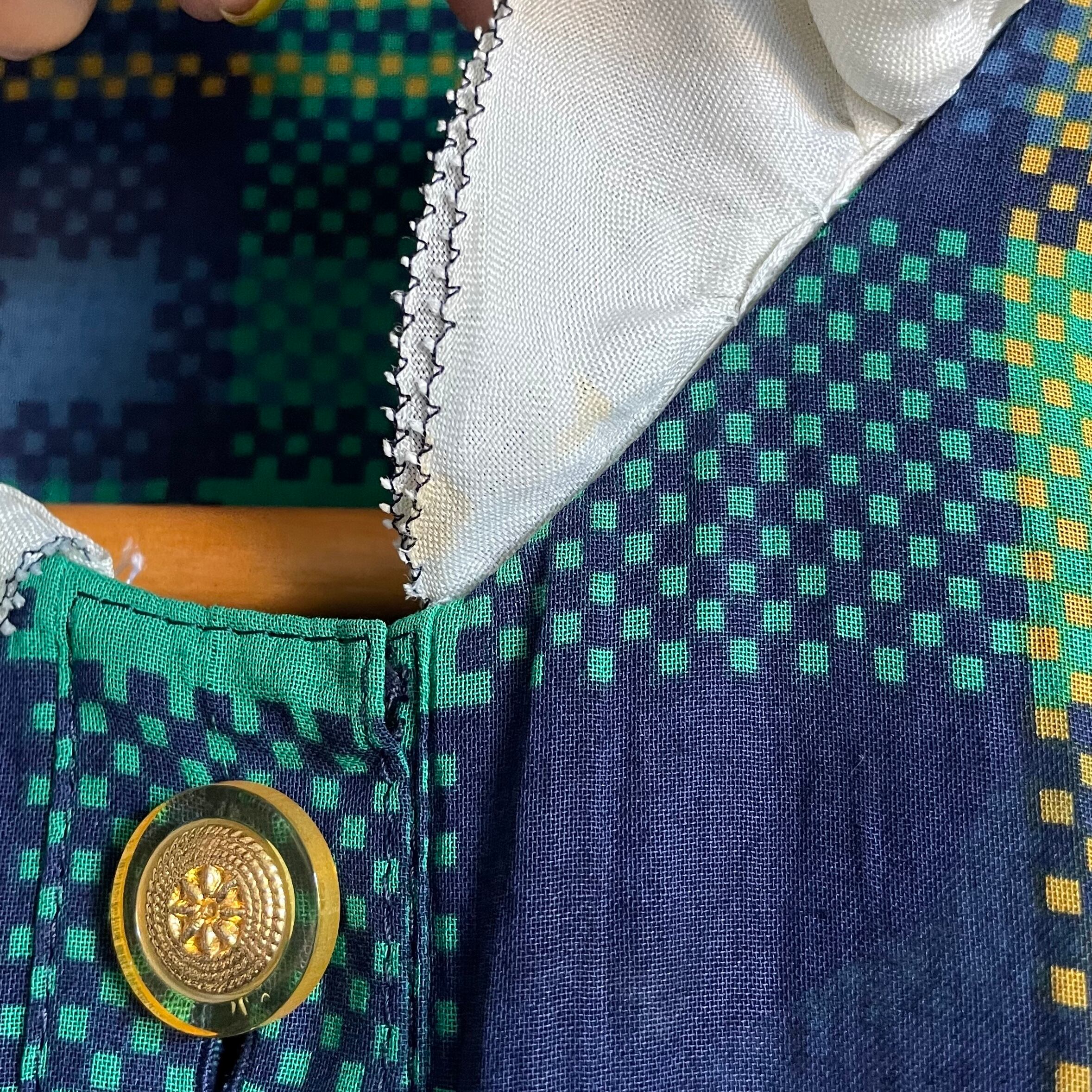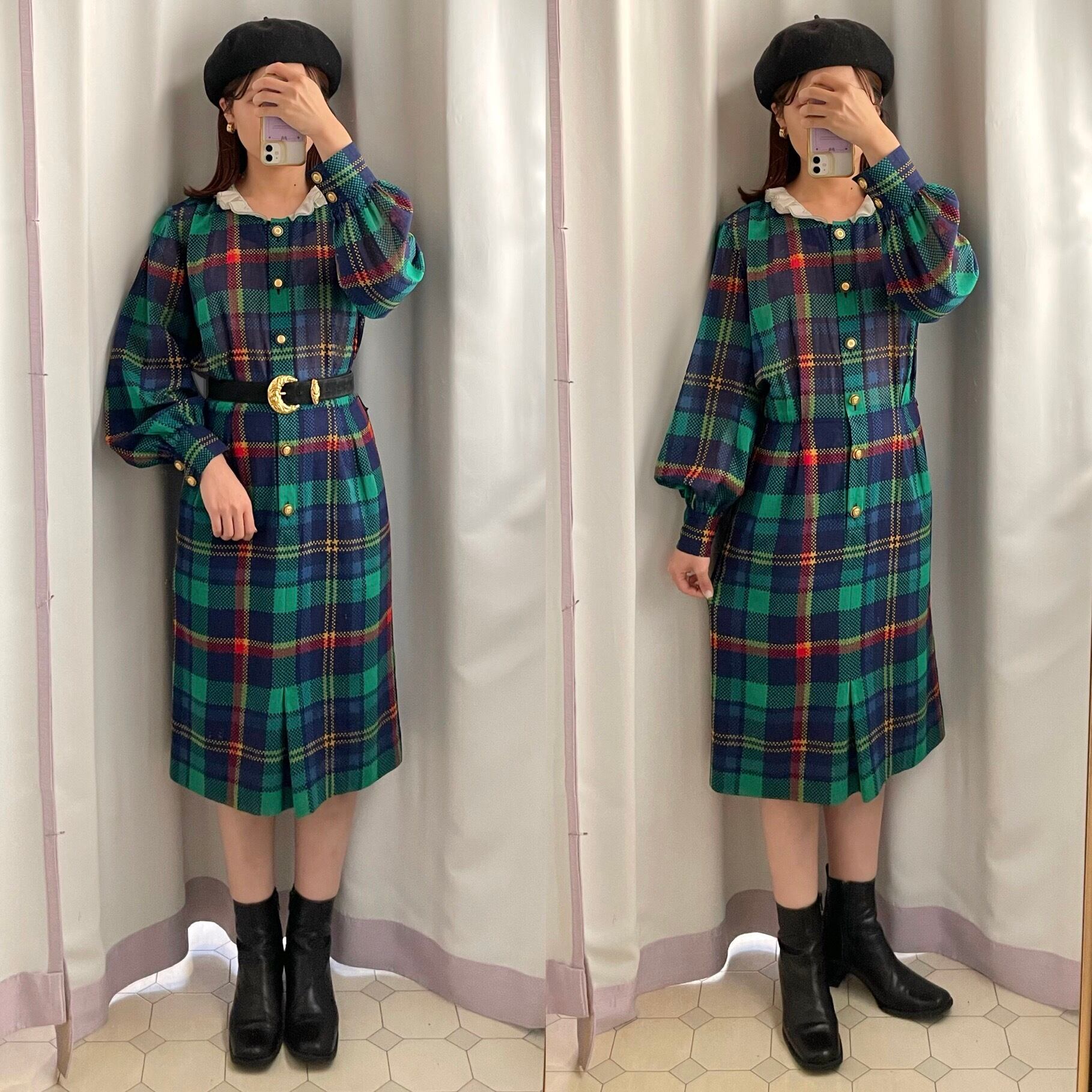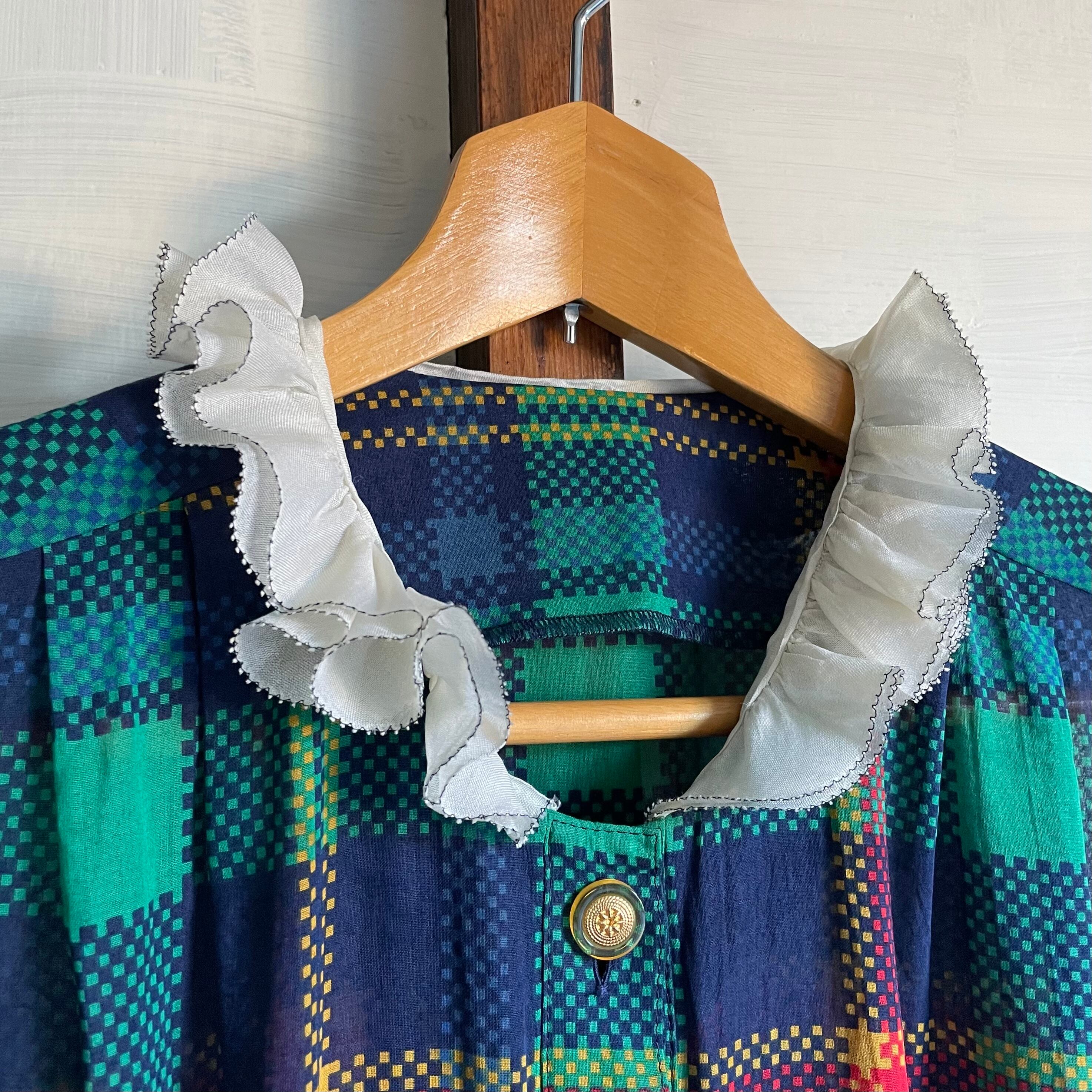 tartan check frill collar tight dress〈レトロ古着 タータンチェック フリル襟 タイトワンピース jun ashida ジュンアシダ〉