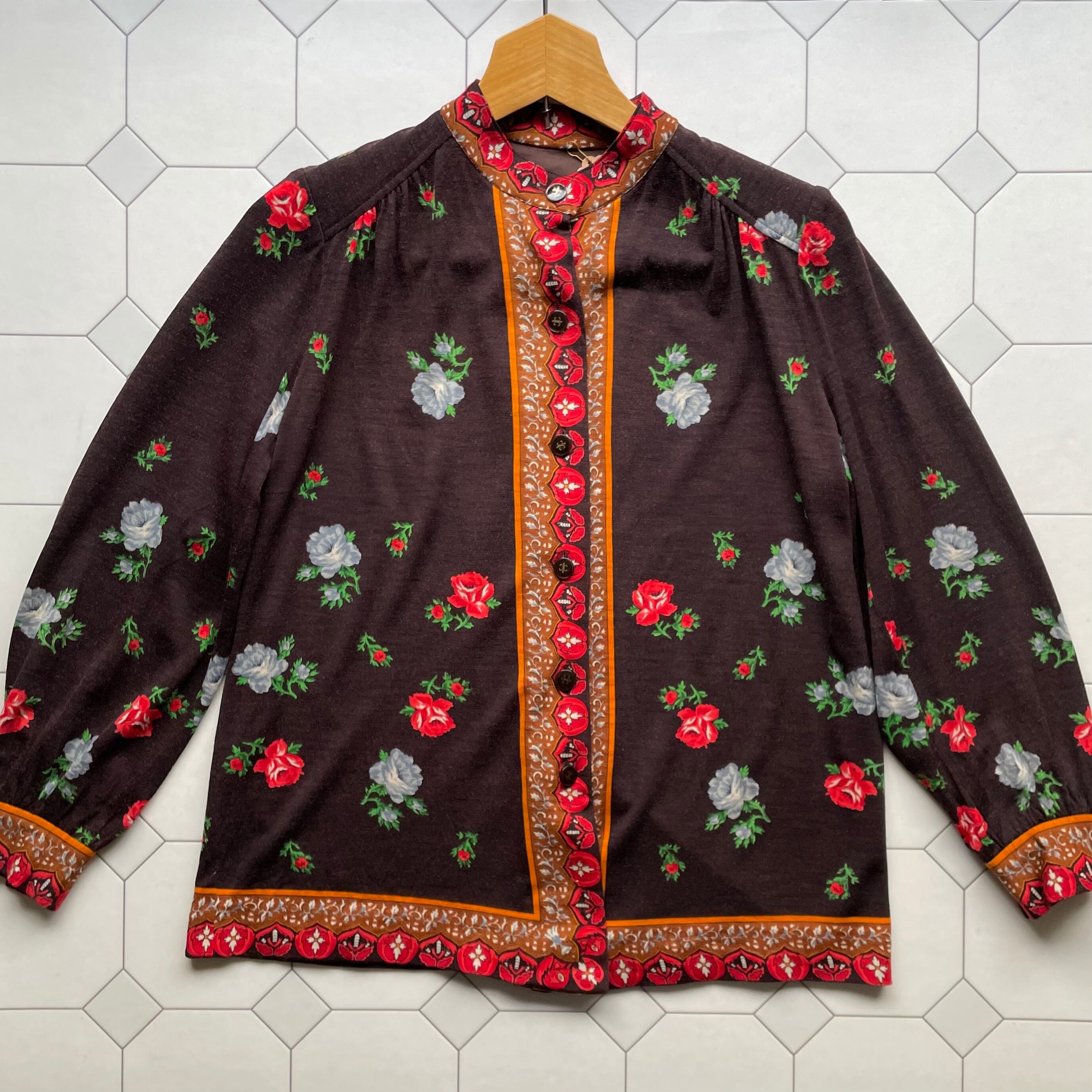 rose motif panel pattern blouse 〈レトロ古着 ローズモチーフ パネル柄 ブラウス シャツ〉
