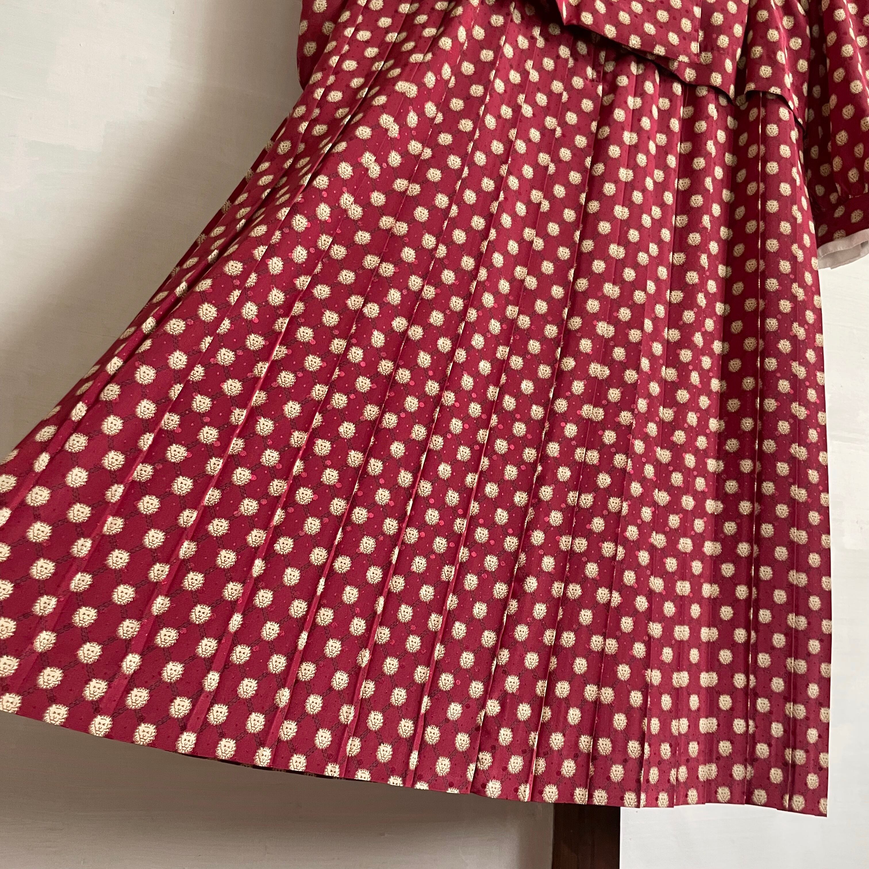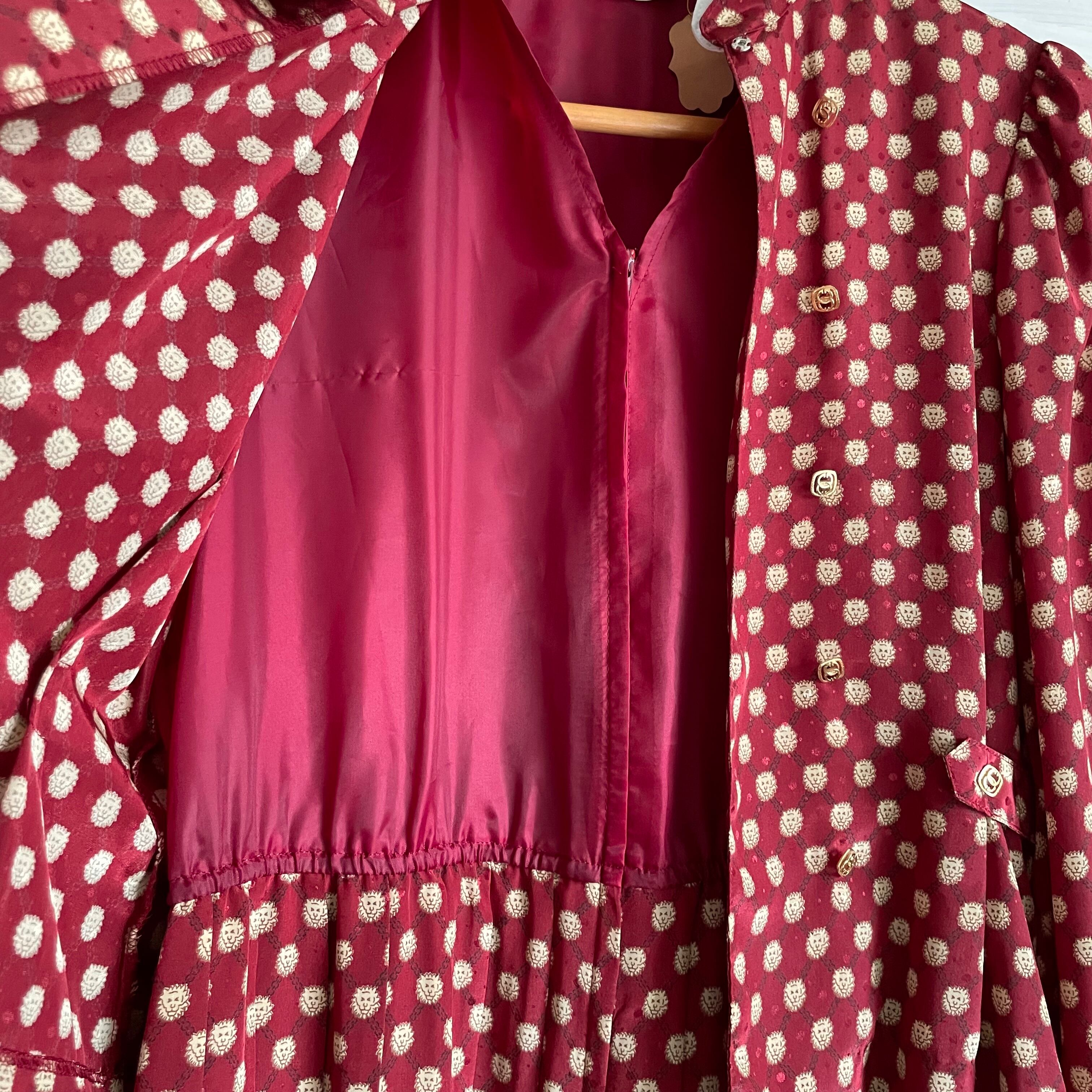 lion motif mao collar layered dress〈レトロ古着 ライオン柄 マオカラーレイヤードワンピース 日本製 ボルドー エンジ〉