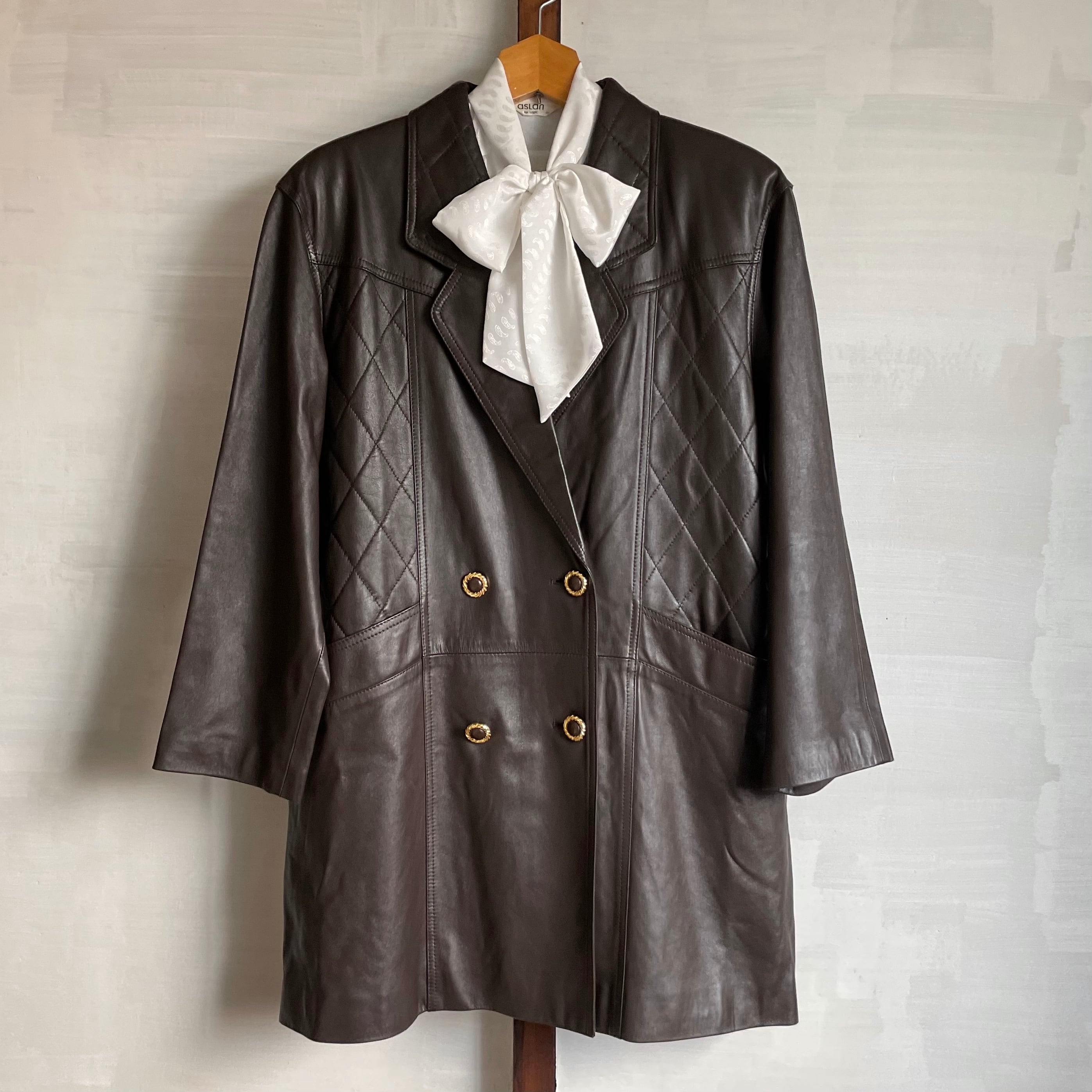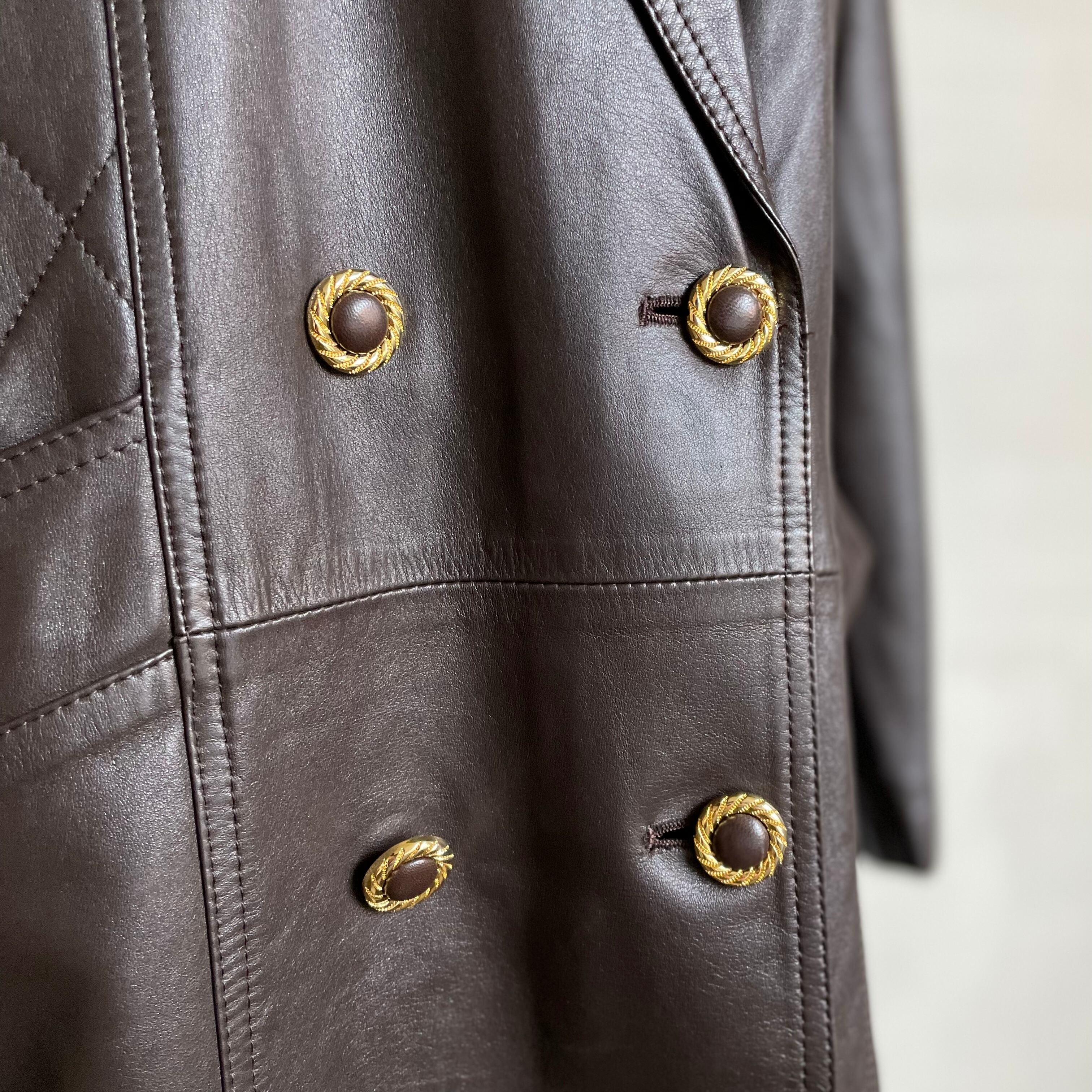 lamb leather chester coat 〈レトロ古着 ラムレザー チェスターコート 日本製 デッドストック 未使用品 羊革 ブラウン 茶色〉