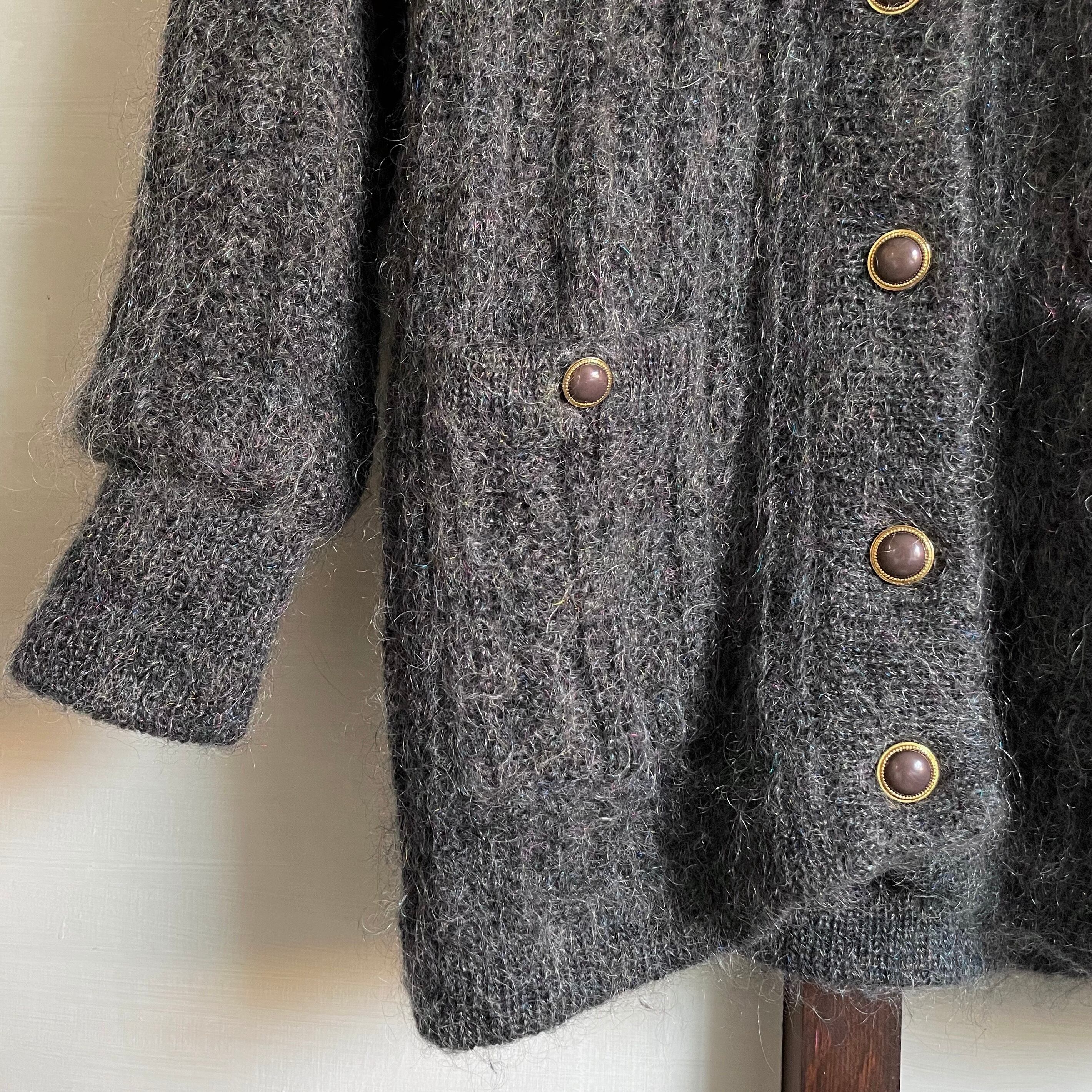 lame yarn lined cardigan 〈レトロ古着 ラメ糸 裏地付き カーディガン 黒 グレー〉