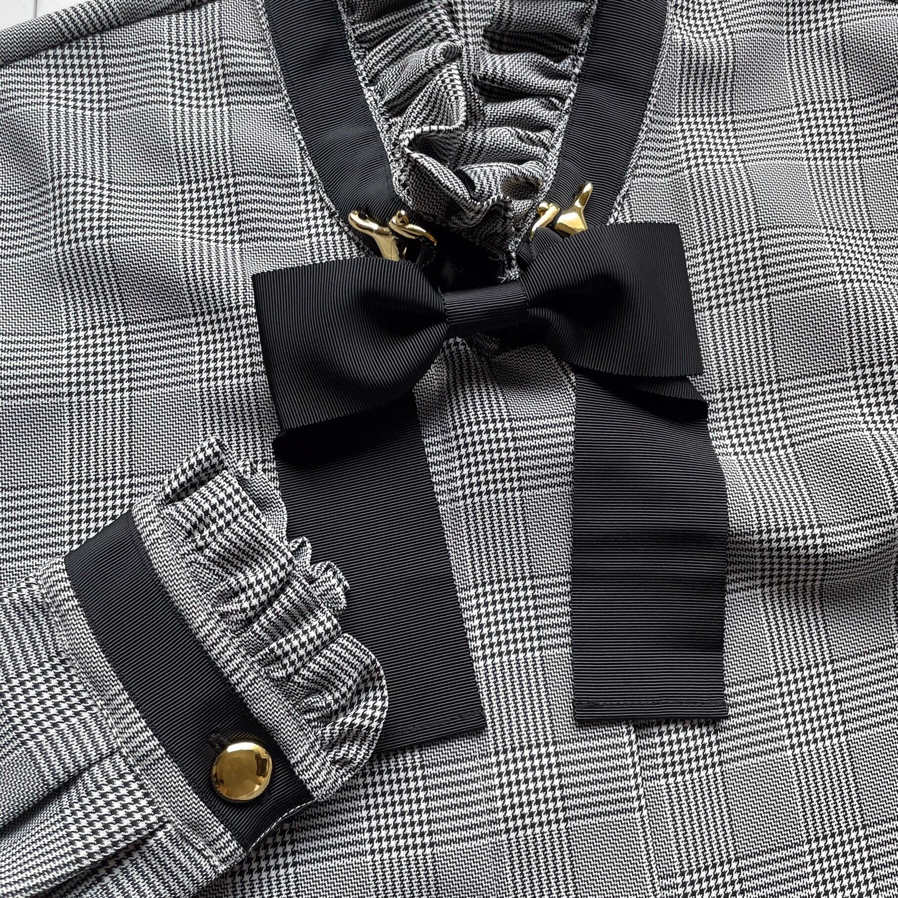 モノトーンにゴールドの金具やボタンが効いたとてもクラシカルな一点