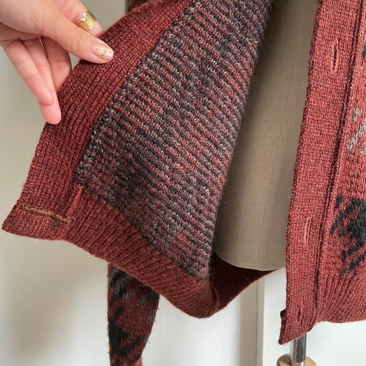reddish brown plaid cardigan 〈レトロ古着 レディッシュブラウン チェック柄 カーディガン〉