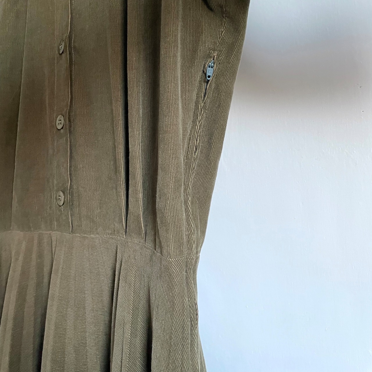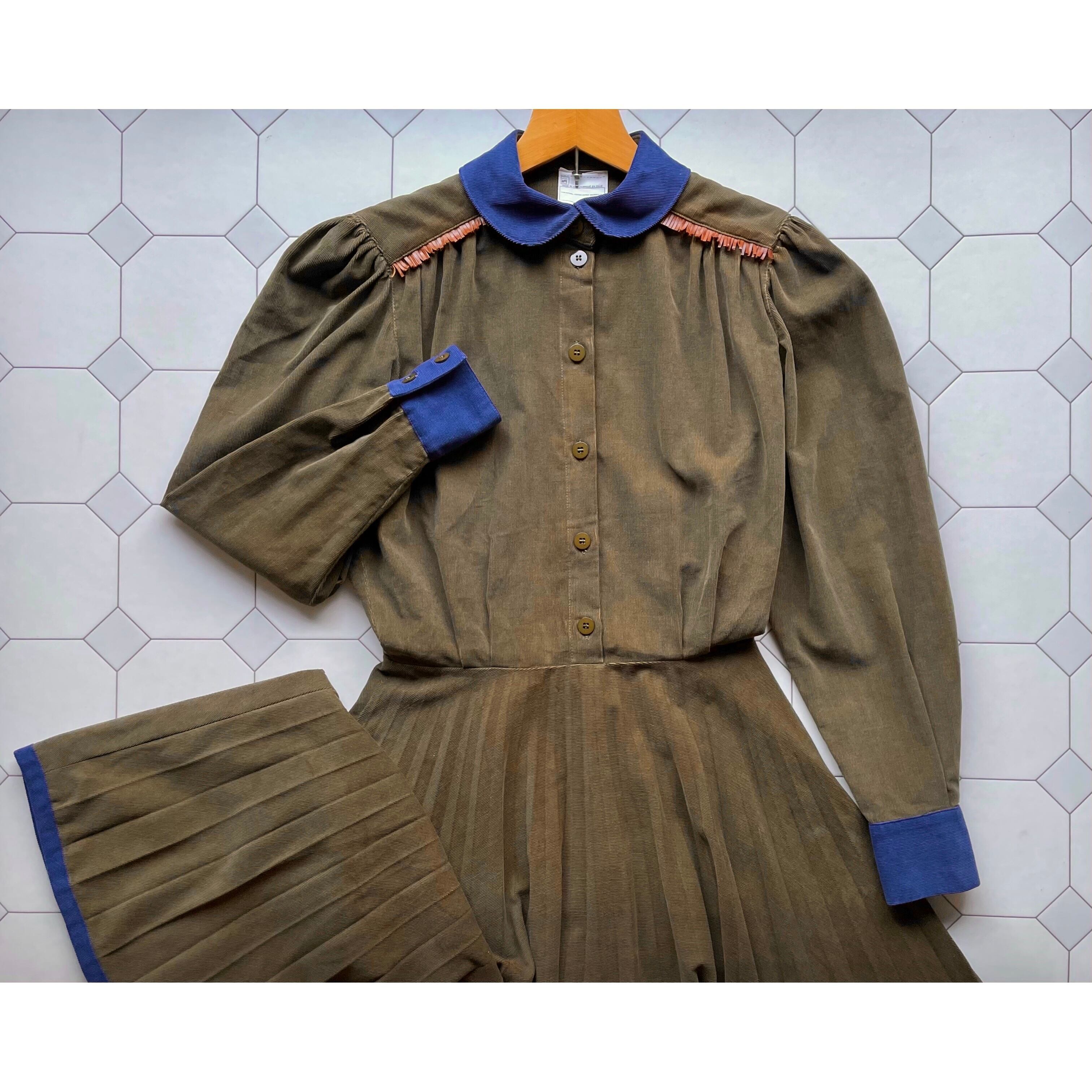 leather fringe bicolor corduroy dress〈レトロ古着 レザーフリンジ バイカラー コーデュロイ ワンピース イタリア製〉