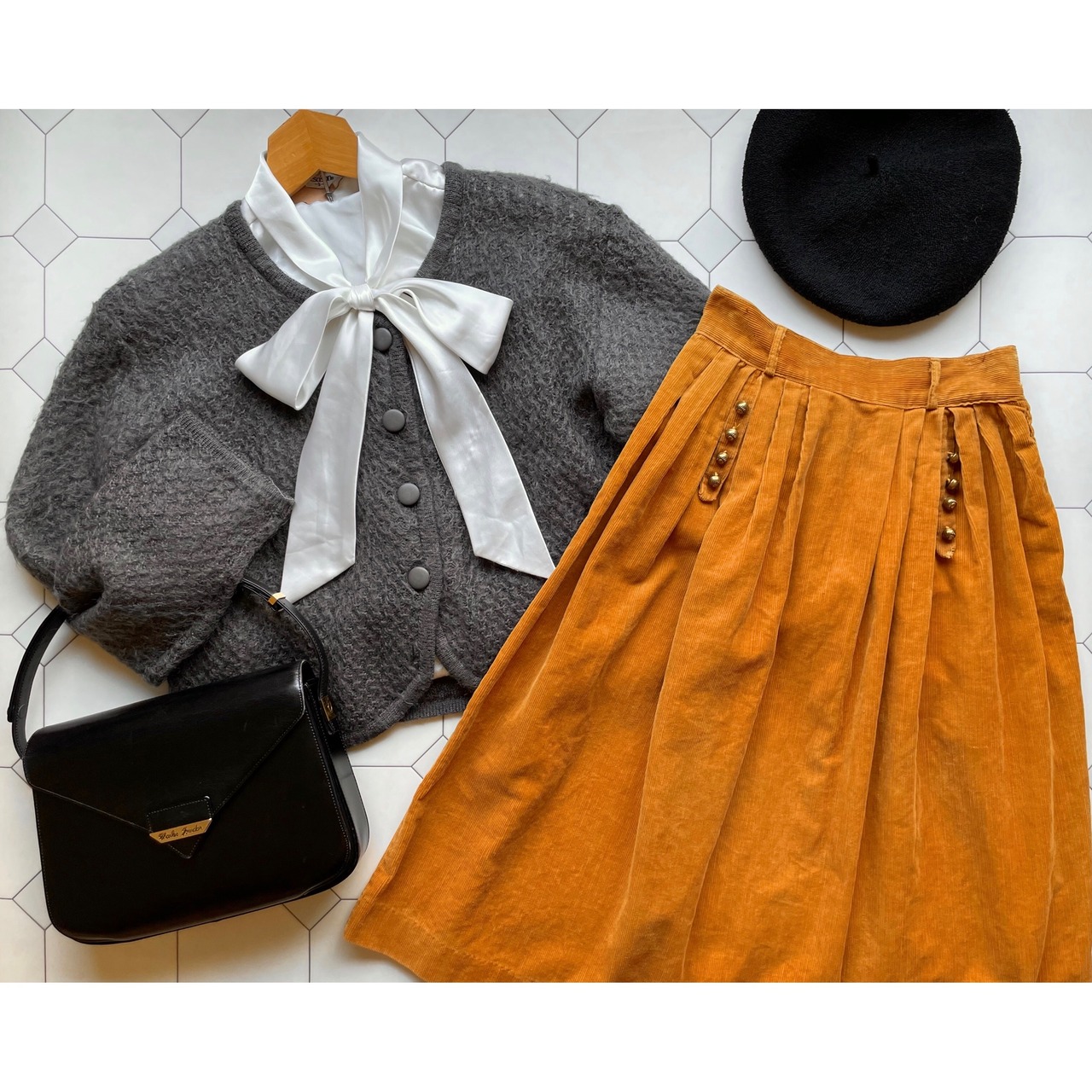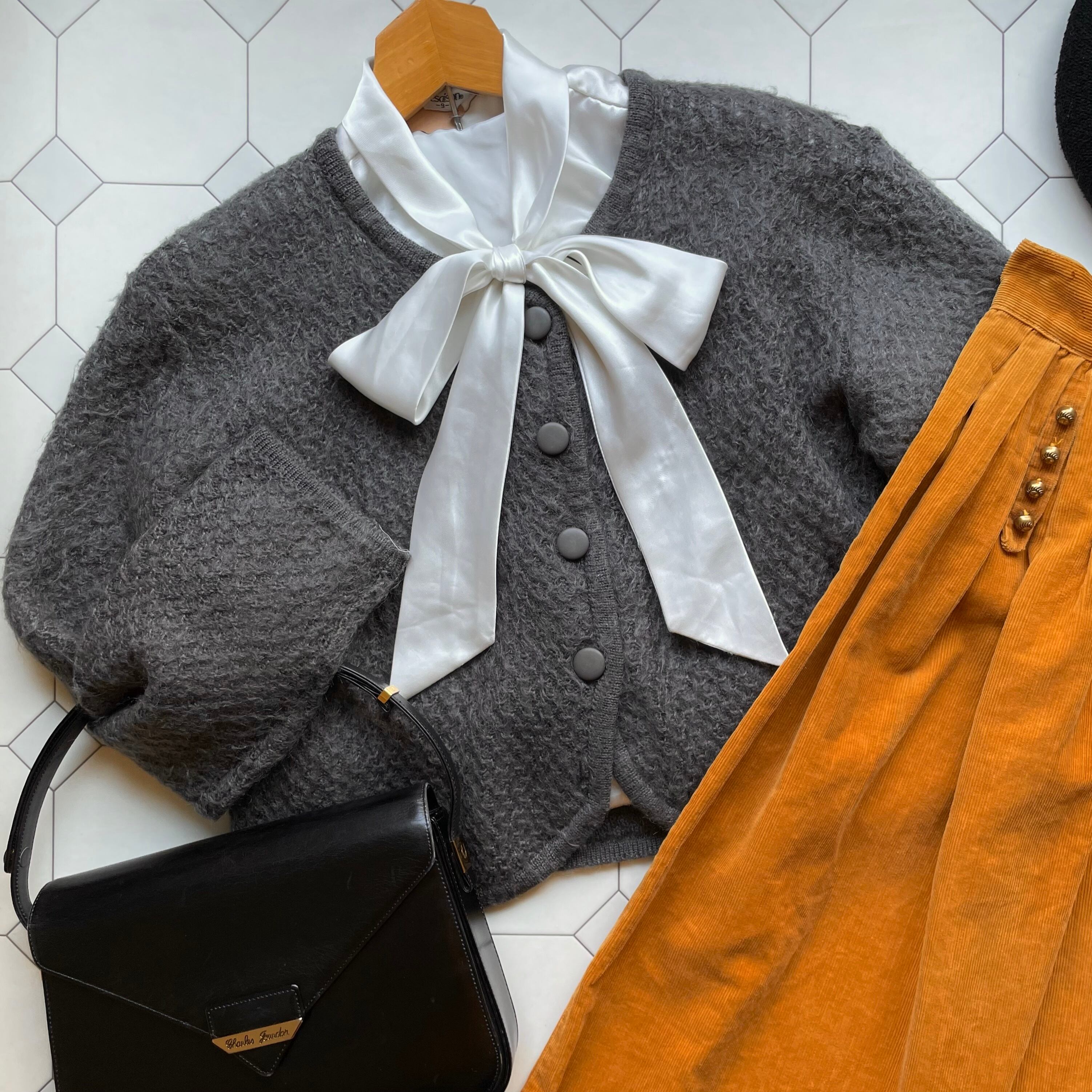 piping gray cardigan 〈レトロ古着 パイピング グレー カーディガン〉