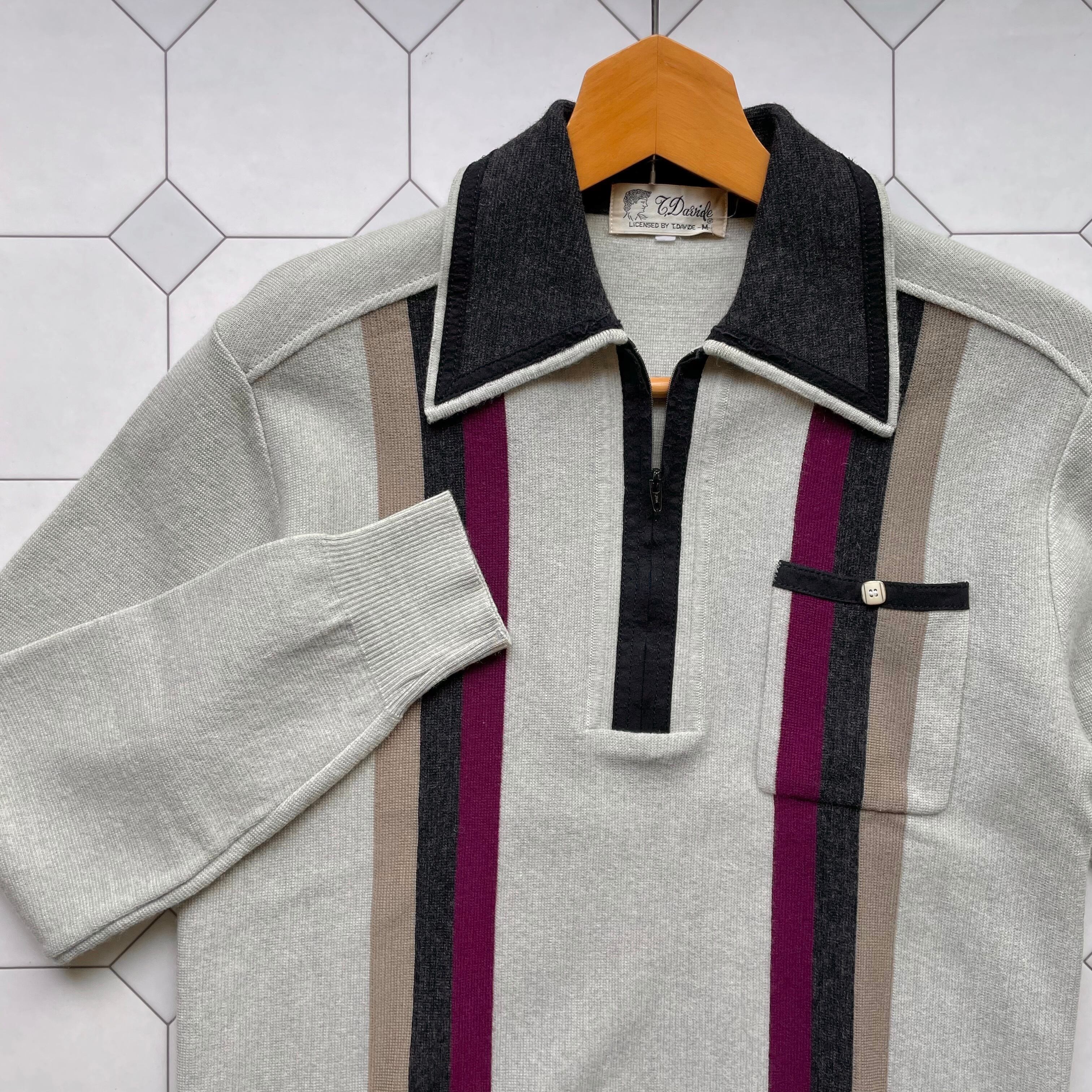 line design half zip knit 〈レトロ古着 ラインデザイン ハーフジップ ニット 日本製〉