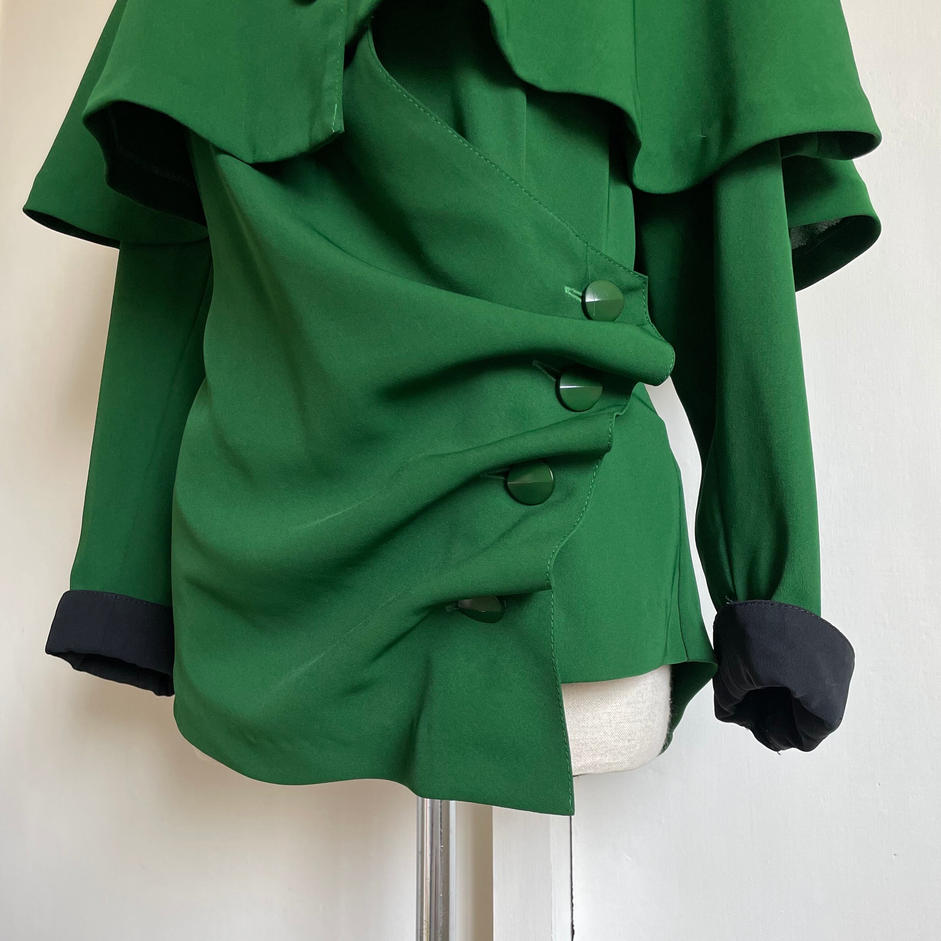2way cape & drape bicolor blouse 〈レトロ古着 2way ケープ&ドレープ バイカラー ブラウス 緑〉