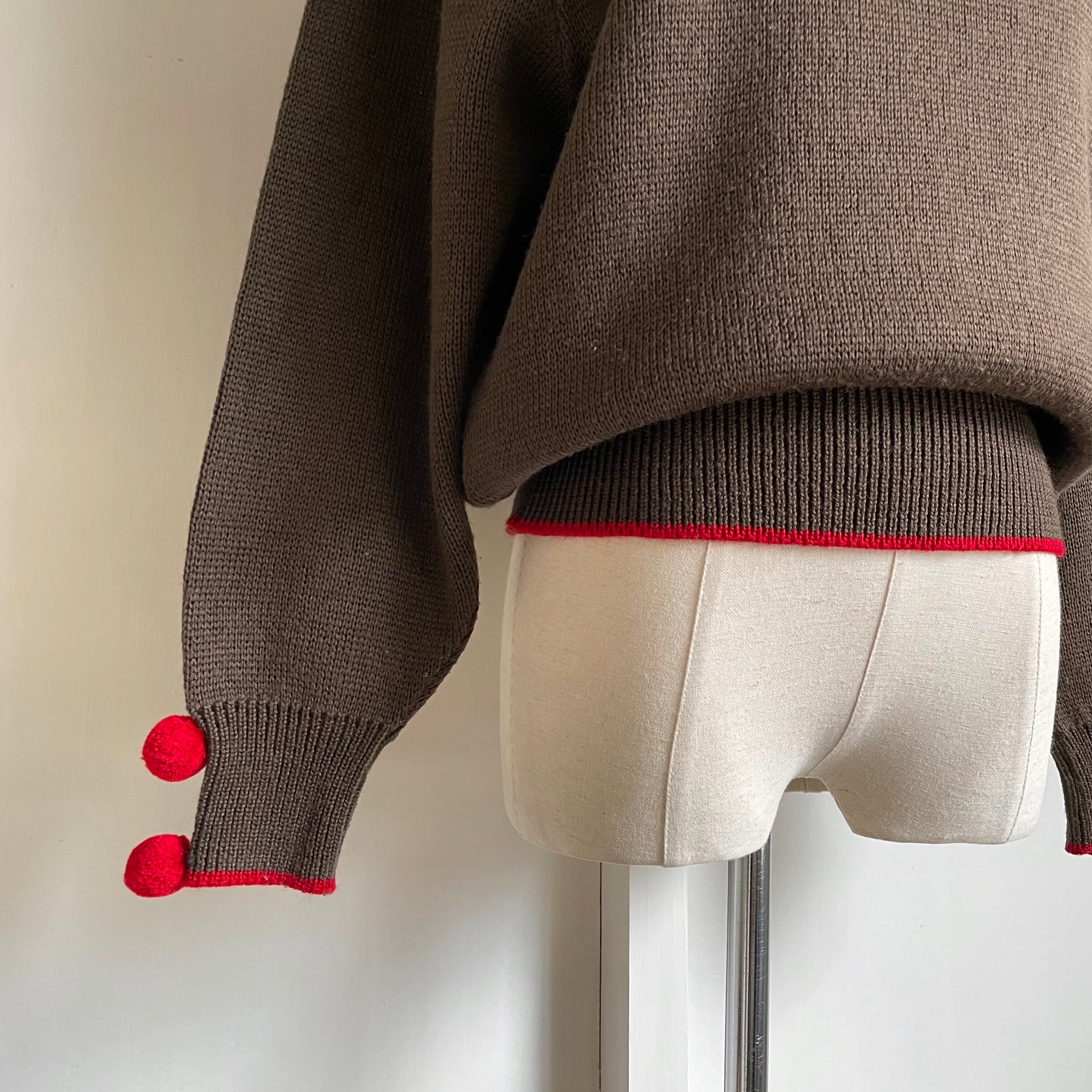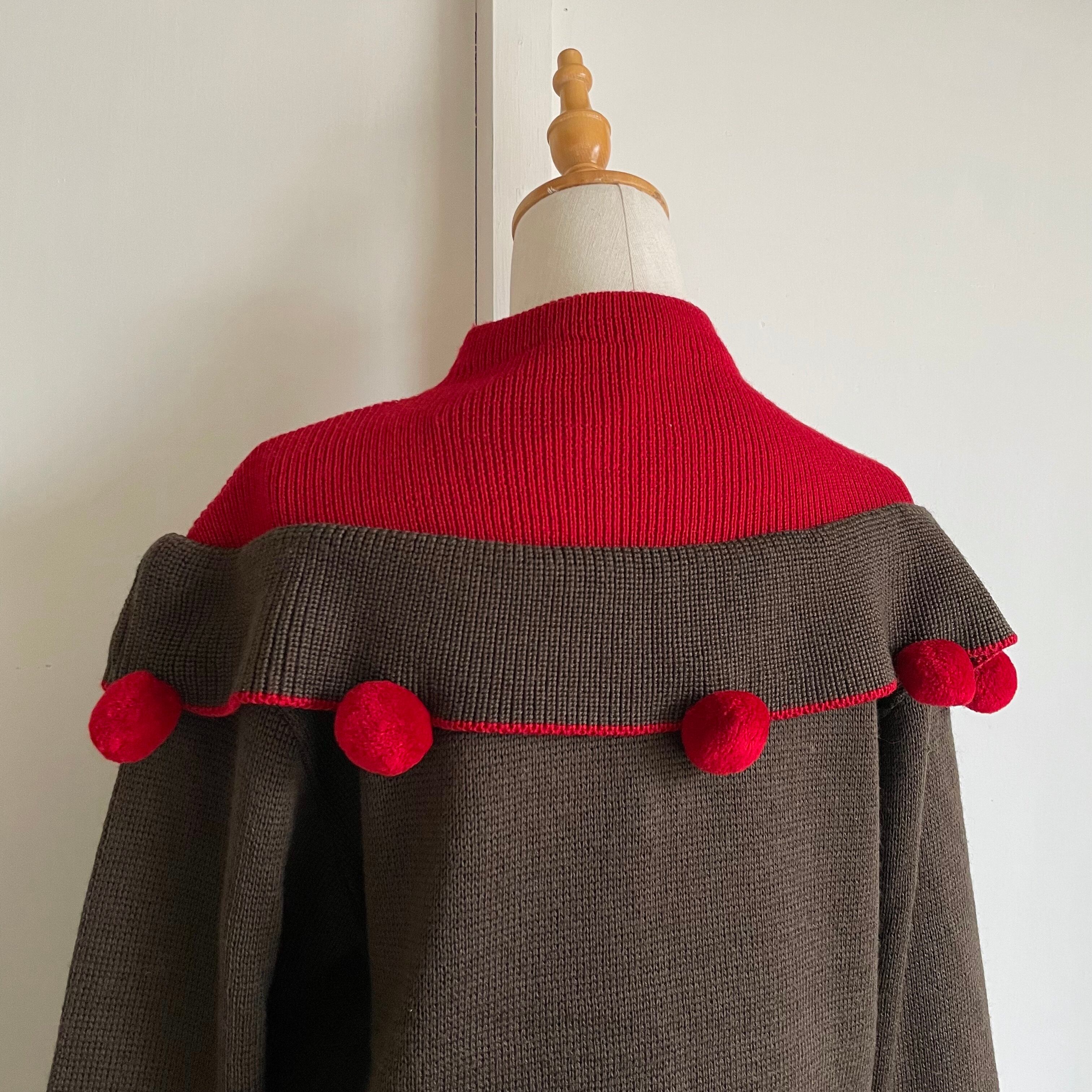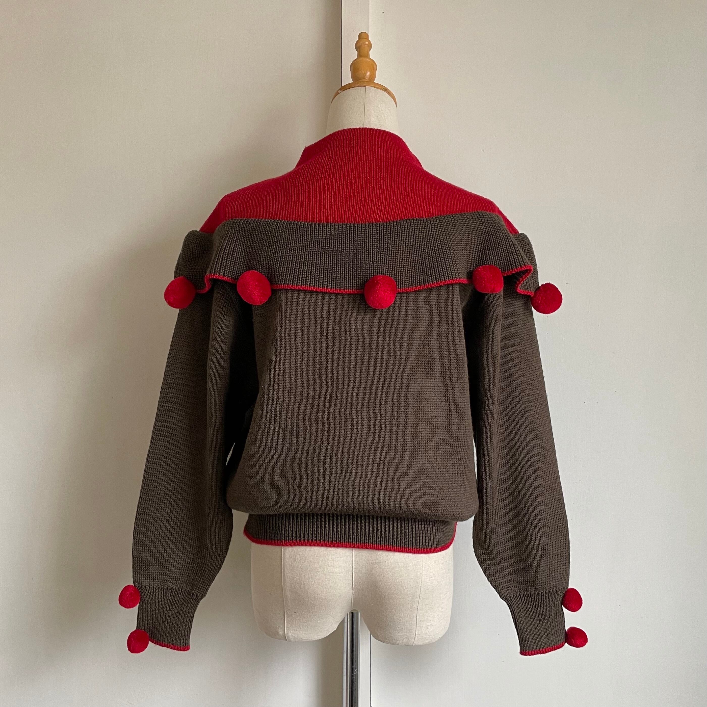 pom pom bicolor sweater 〈レトロ古着 ポンポン バイカラー セーター 赤 茶色 ニット〉