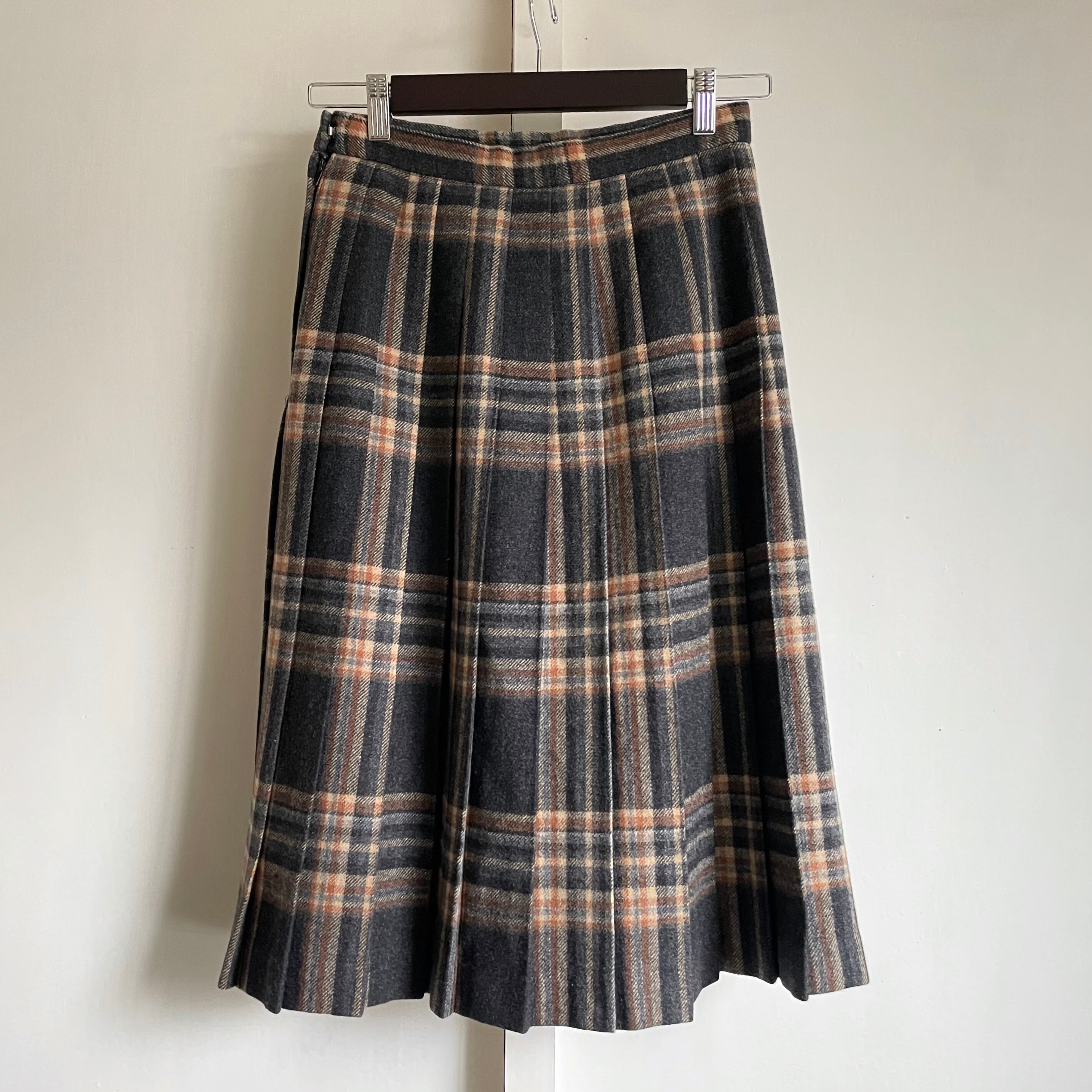 charcoal tartan pleated skirt 〈レトロ古着 チャコール タータンチェック プリーツスカート〉