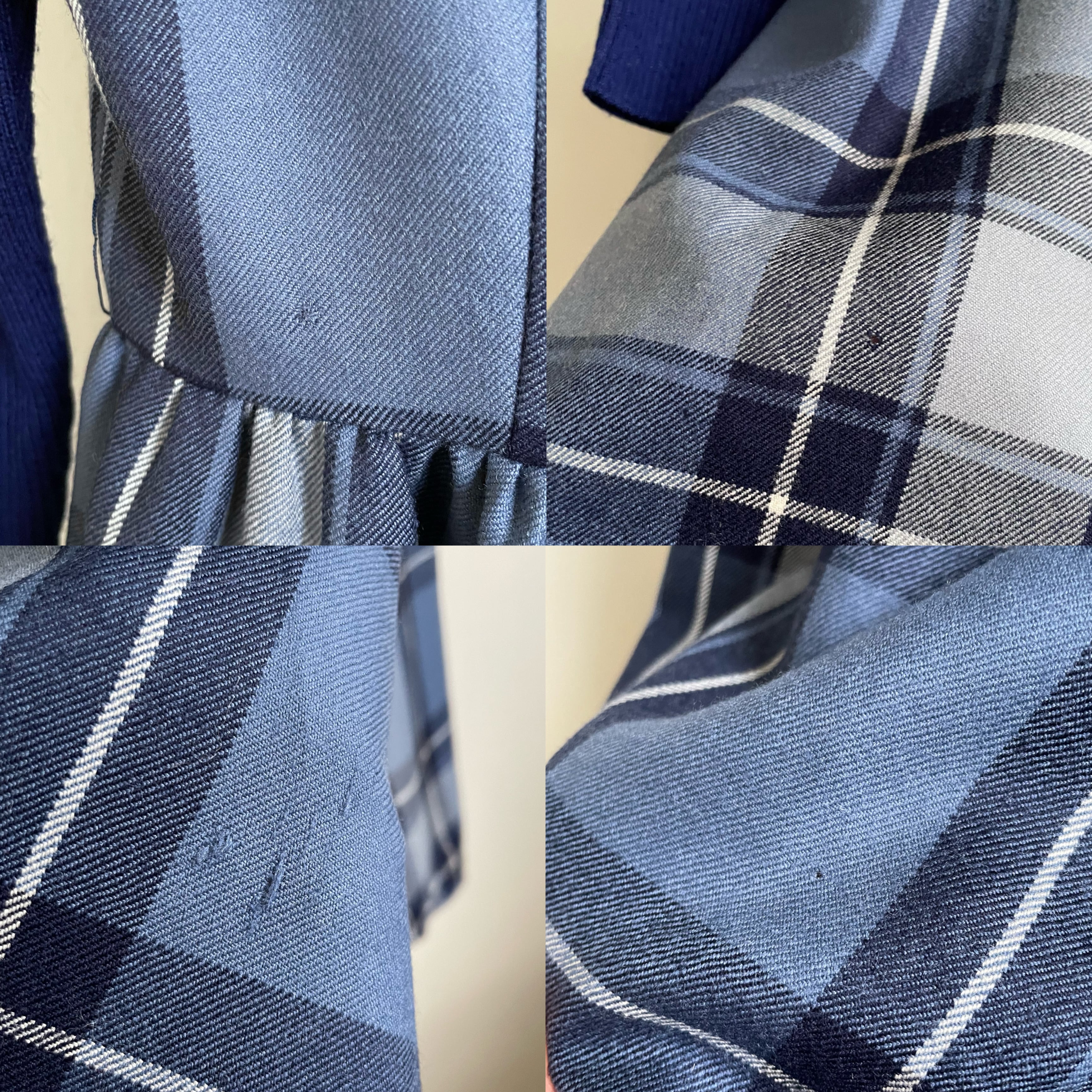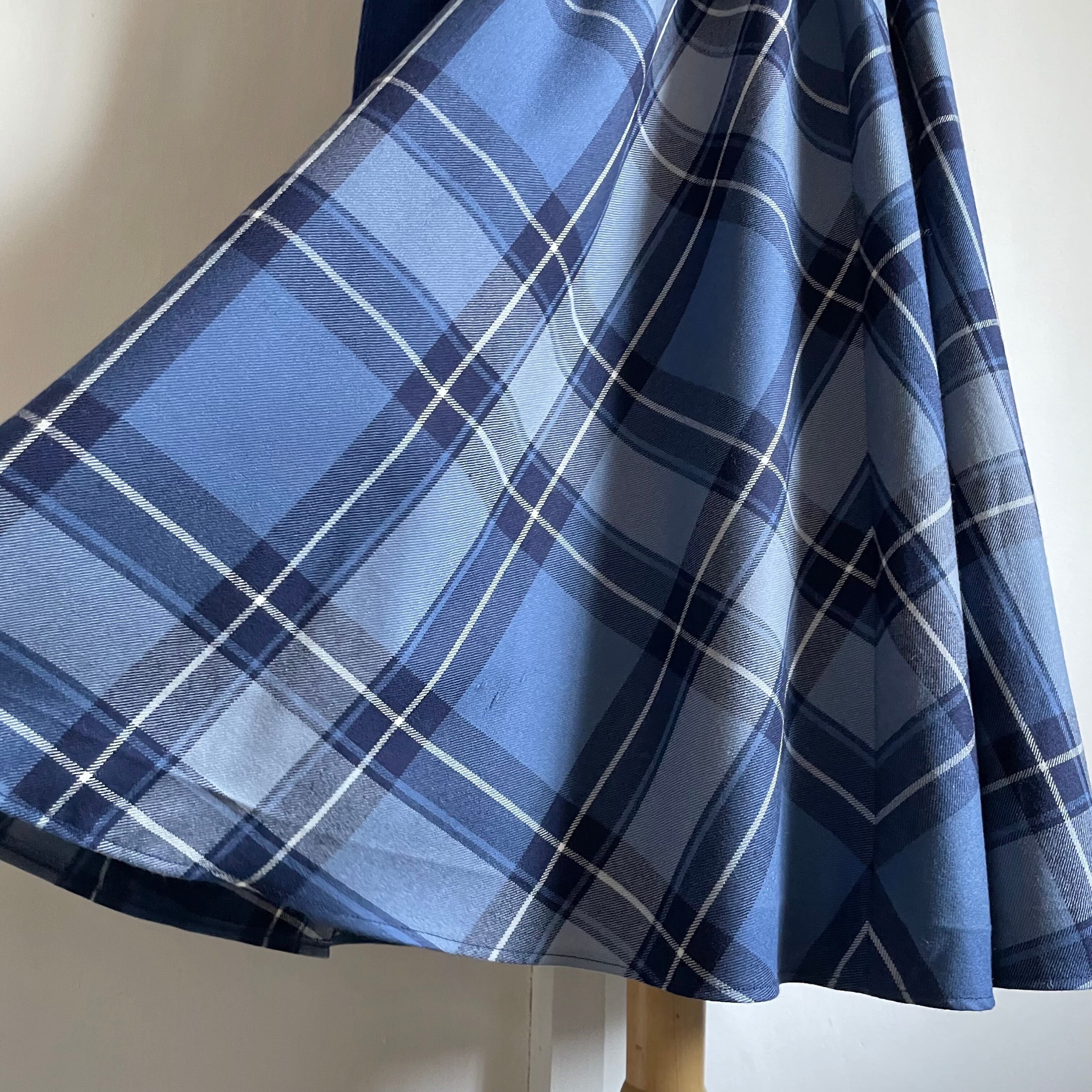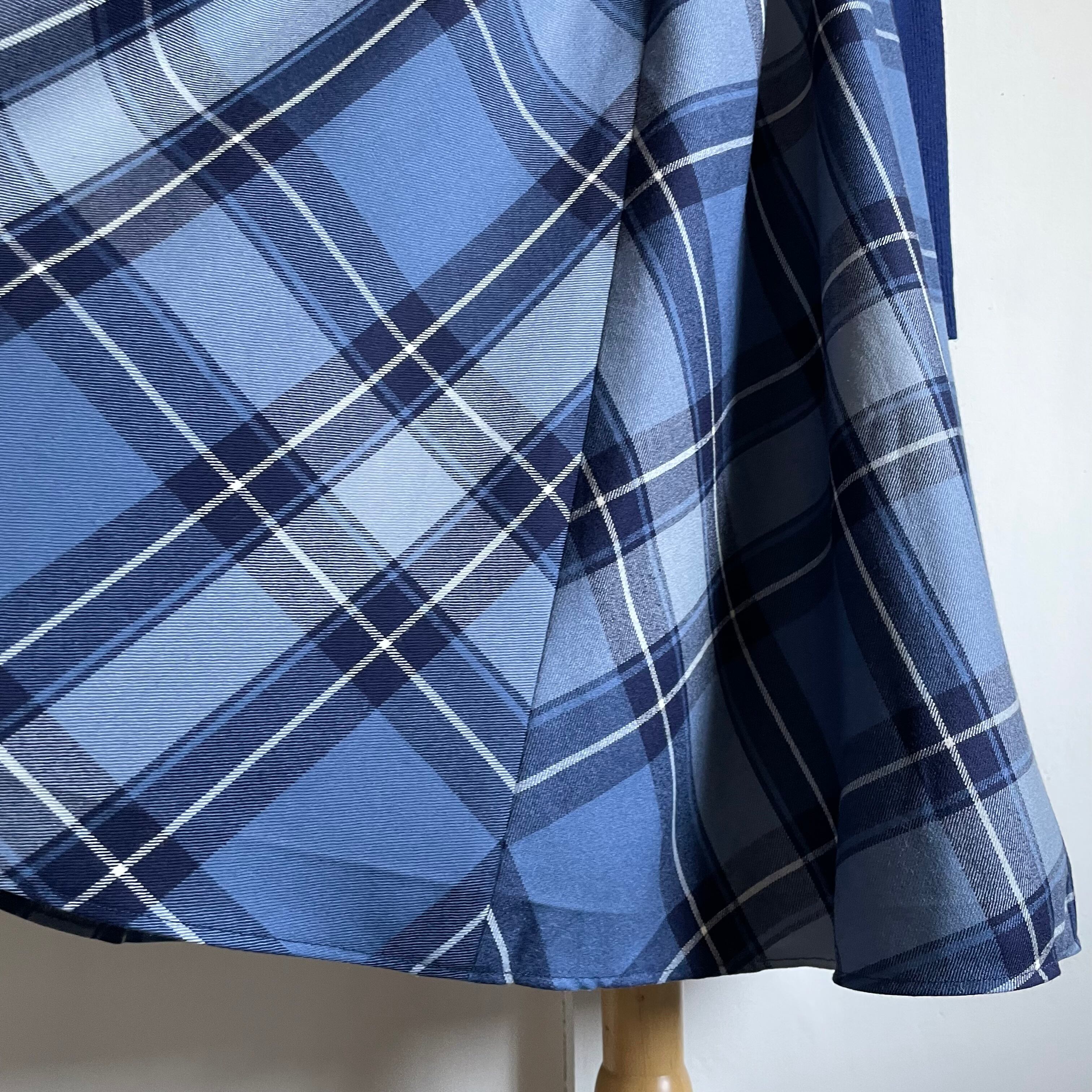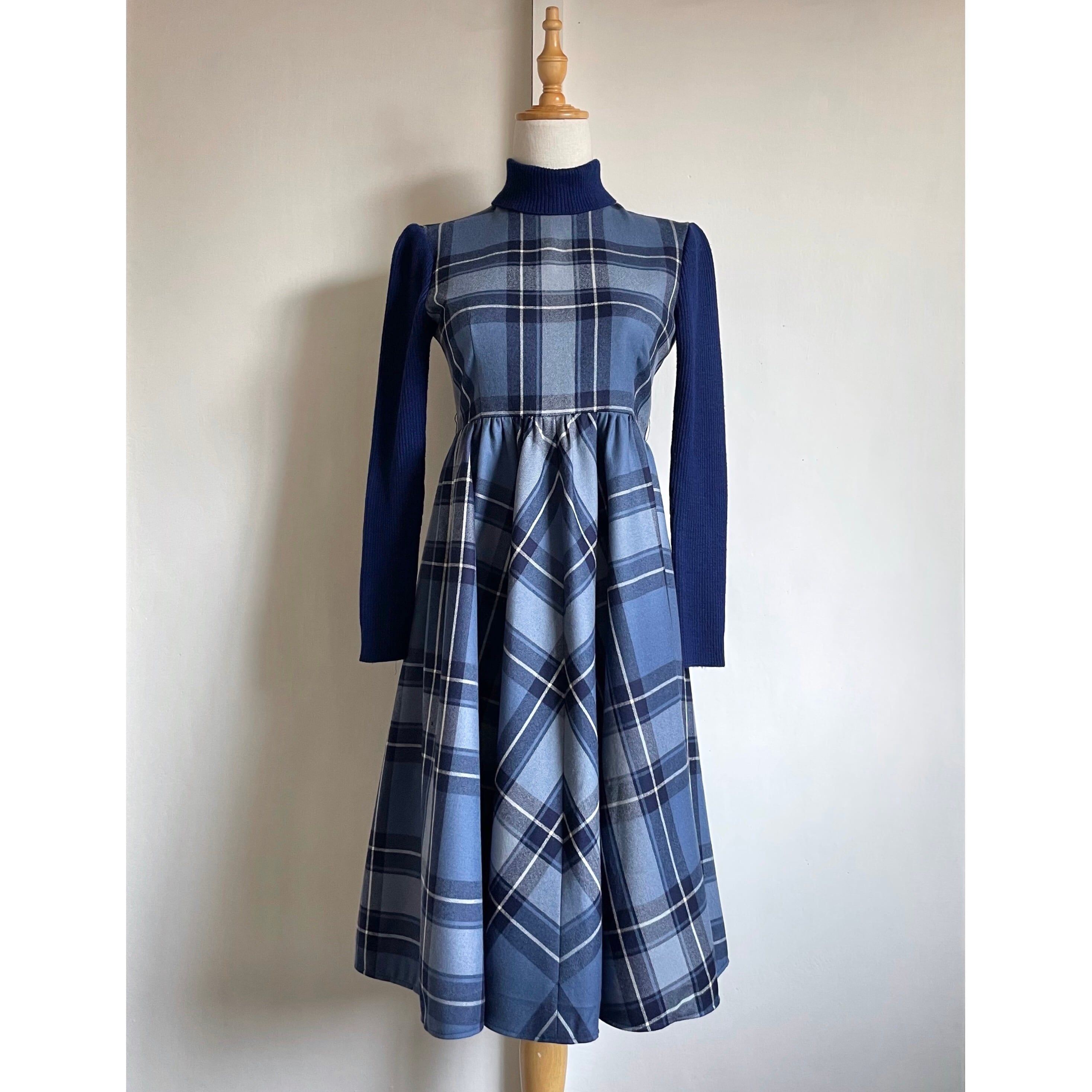 rib switching blue plaid dress〈レトロ古着 リブ切替 ブルー チェック柄 ワンピース 青〉